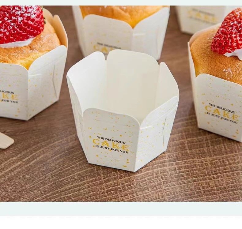 六边形纸杯 【白底CAKE】6角 北海道戚风蛋糕纸杯 一次性蛋糕纸杯