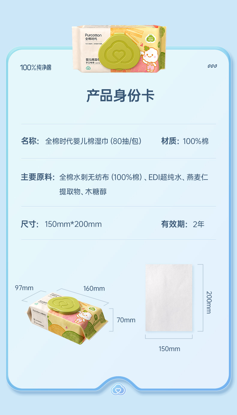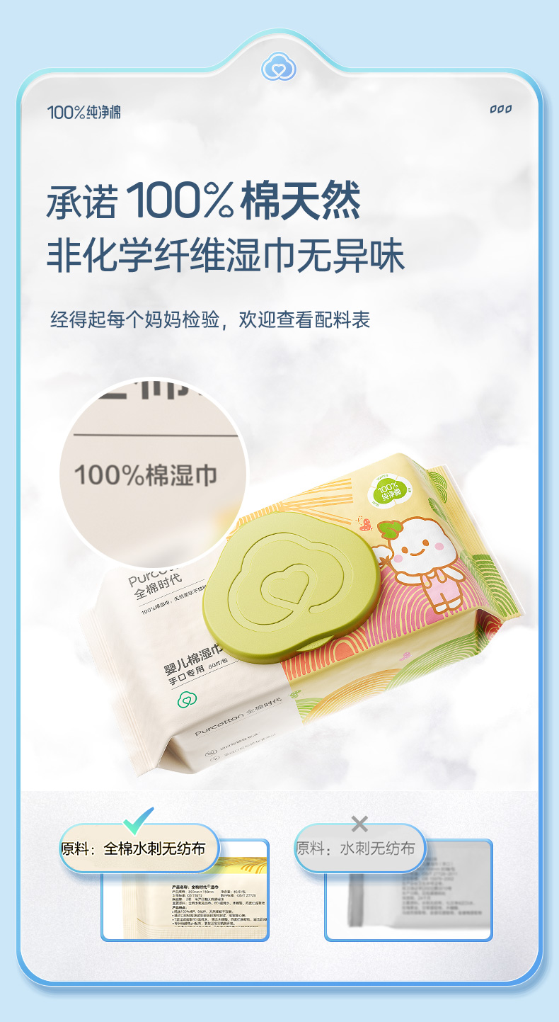 全棉时代 婴儿湿巾手口专用新生儿湿纸巾100%纯棉可入口宝宝屁屁湿巾纸