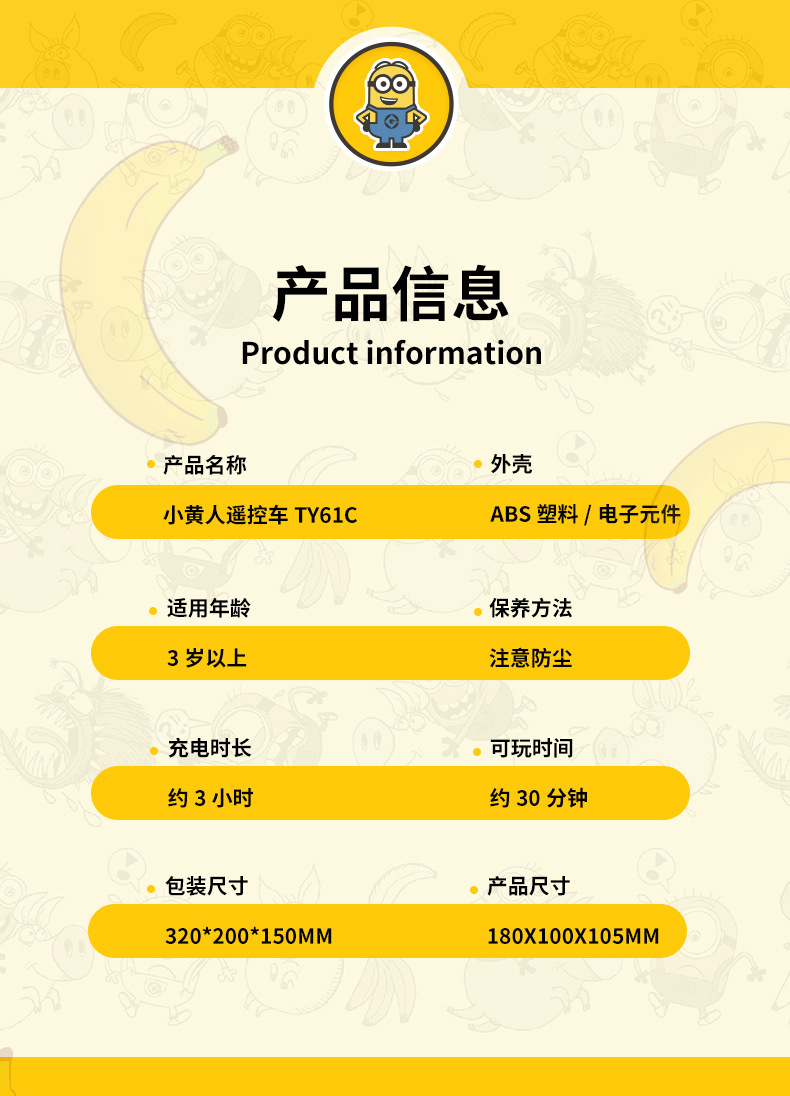 【遥控小黄车 越野车】正版神偷奶爸小黄人无线遥控汽车 儿童玩具高速四驱攀爬充电越野车