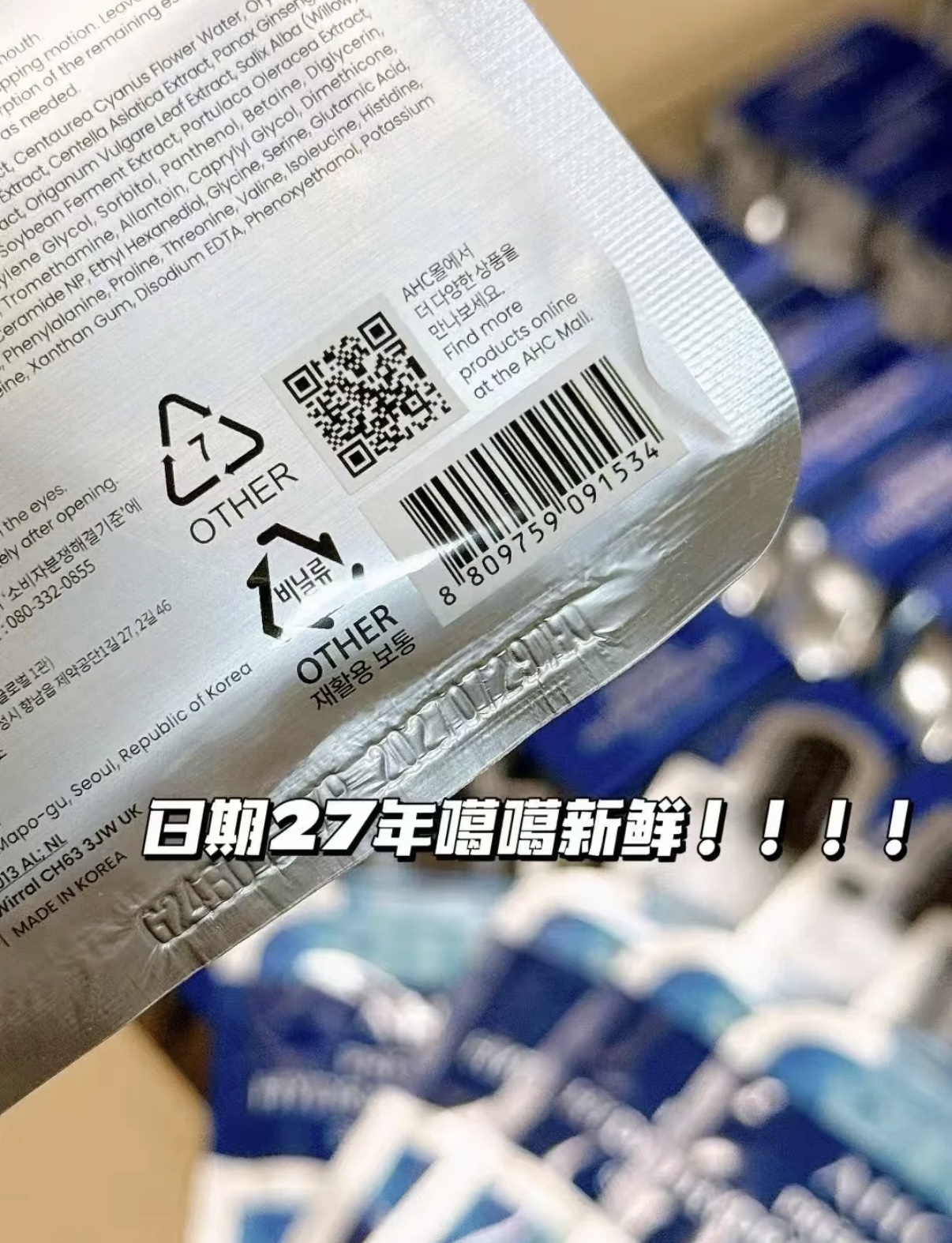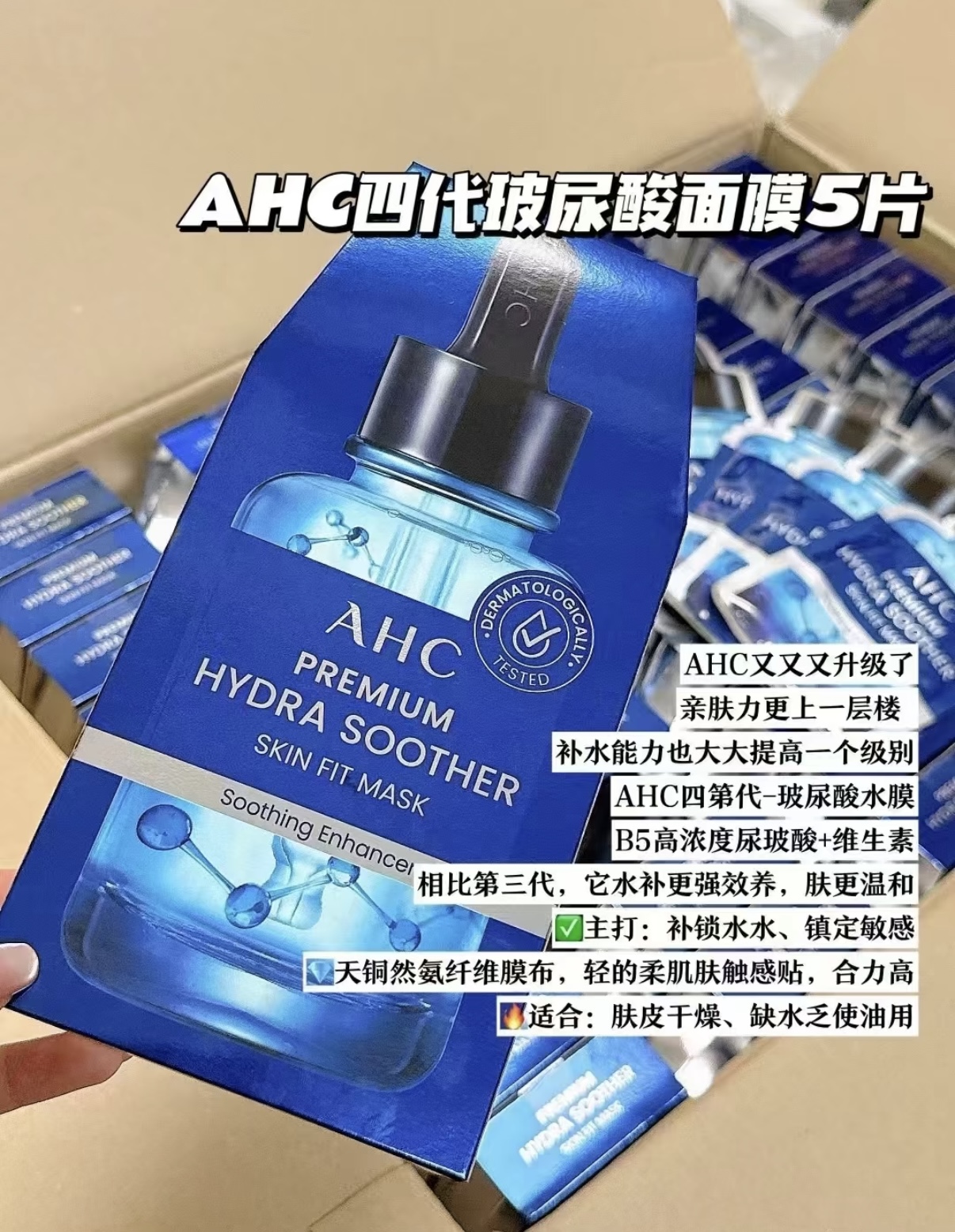 韩国AHC第四代面膜 B5玻尿酸水光面膜一盒5片装 男女补水保湿舒缓
