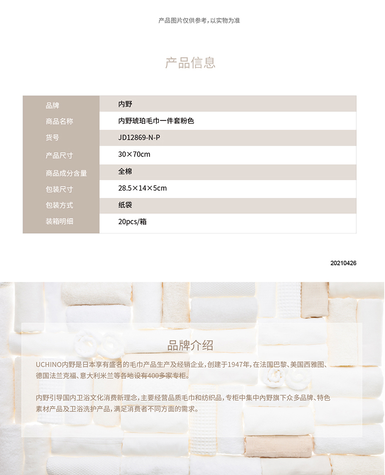 日本内野纯棉毛巾单条装