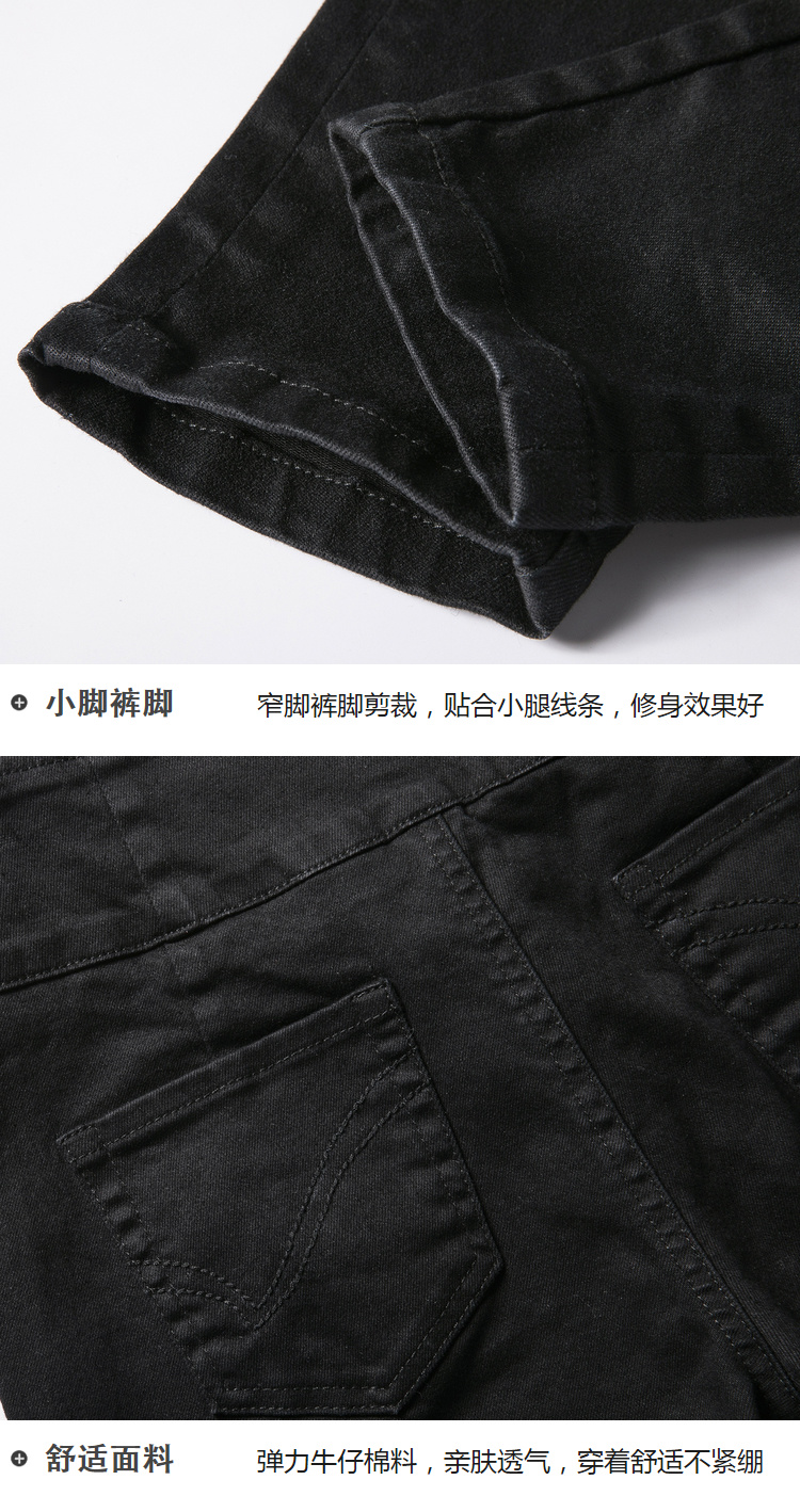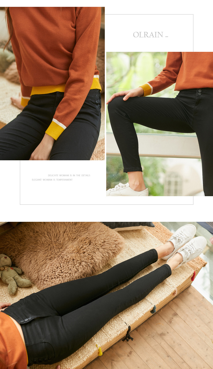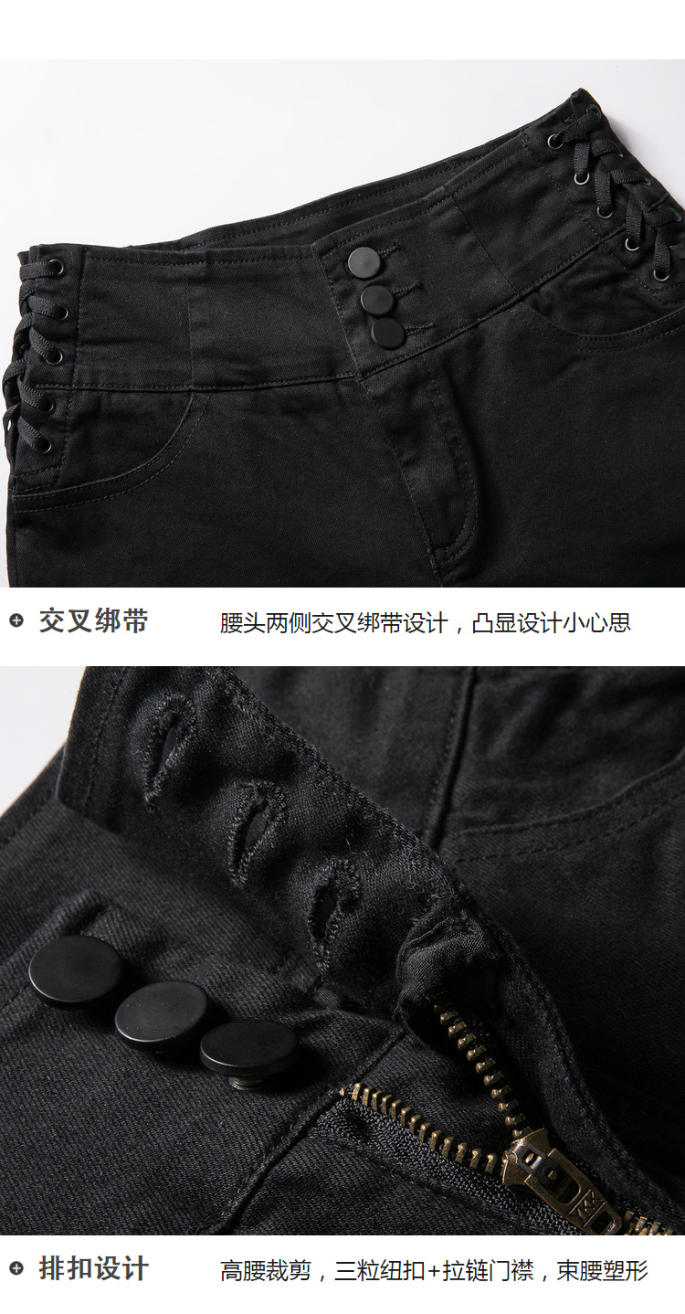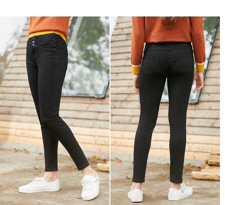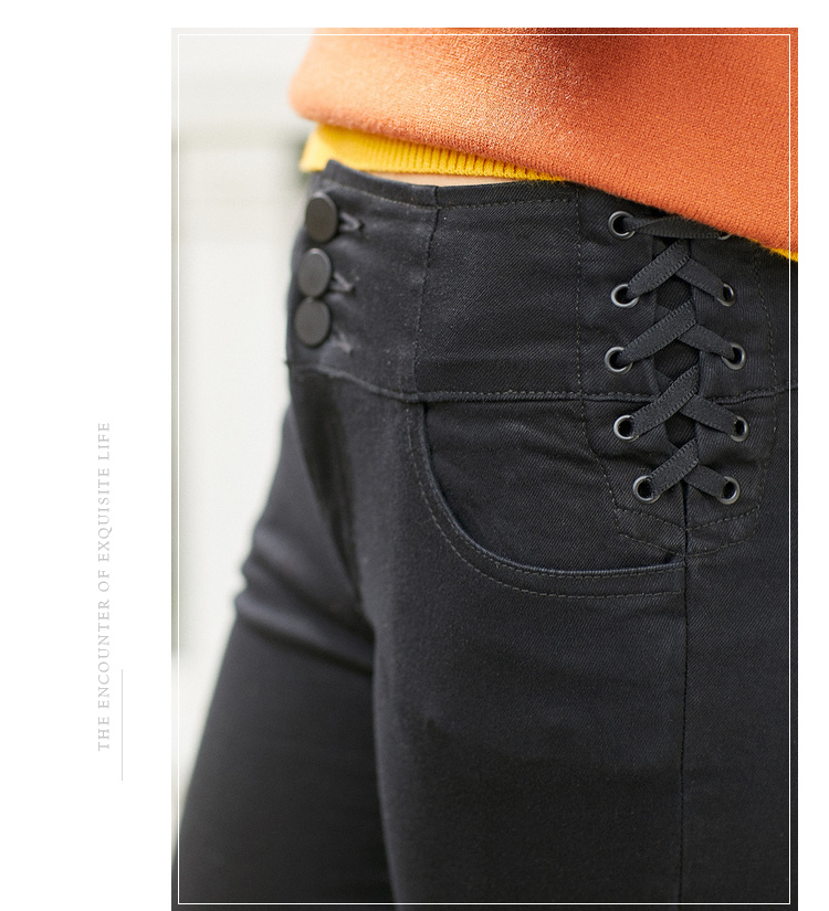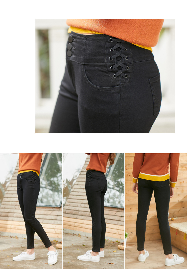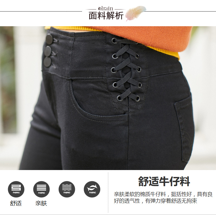 欧芮儿春装2019款女装弹力牛仔裤女收腰显瘦长裤系带九分女裤子