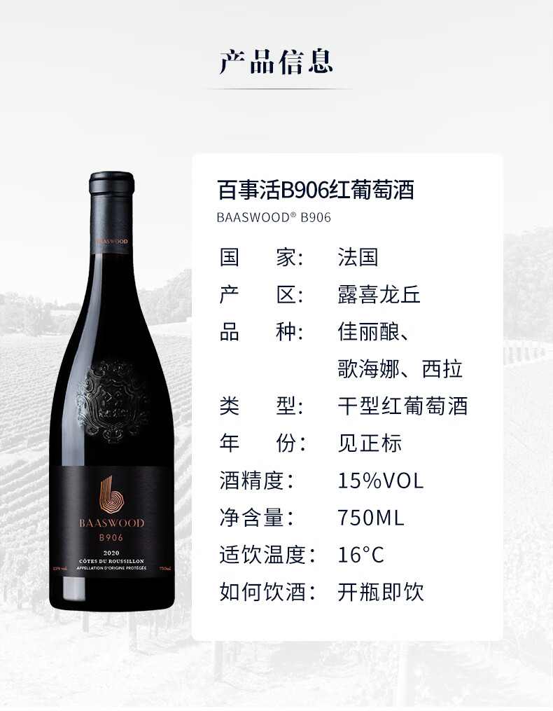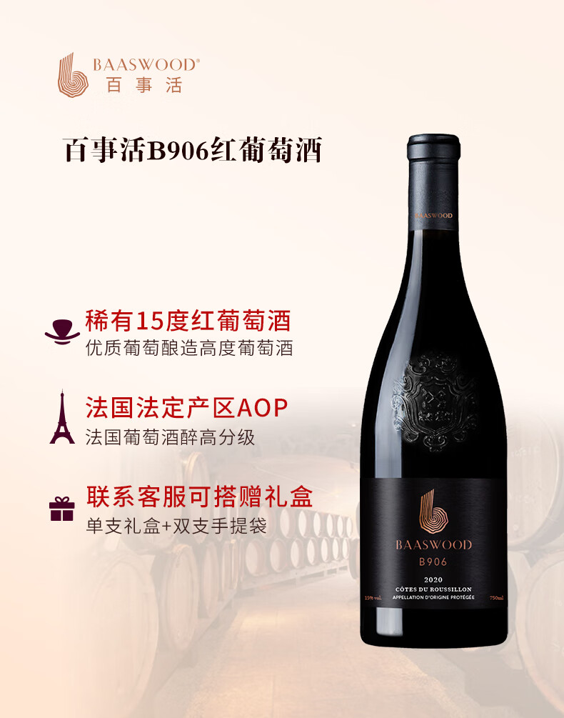 首彩 百事活B906红葡萄酒15度 750ml*6整箱装 法国·AOP原瓶原装进口 自饮宴会伴手礼