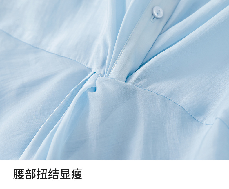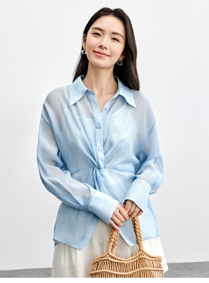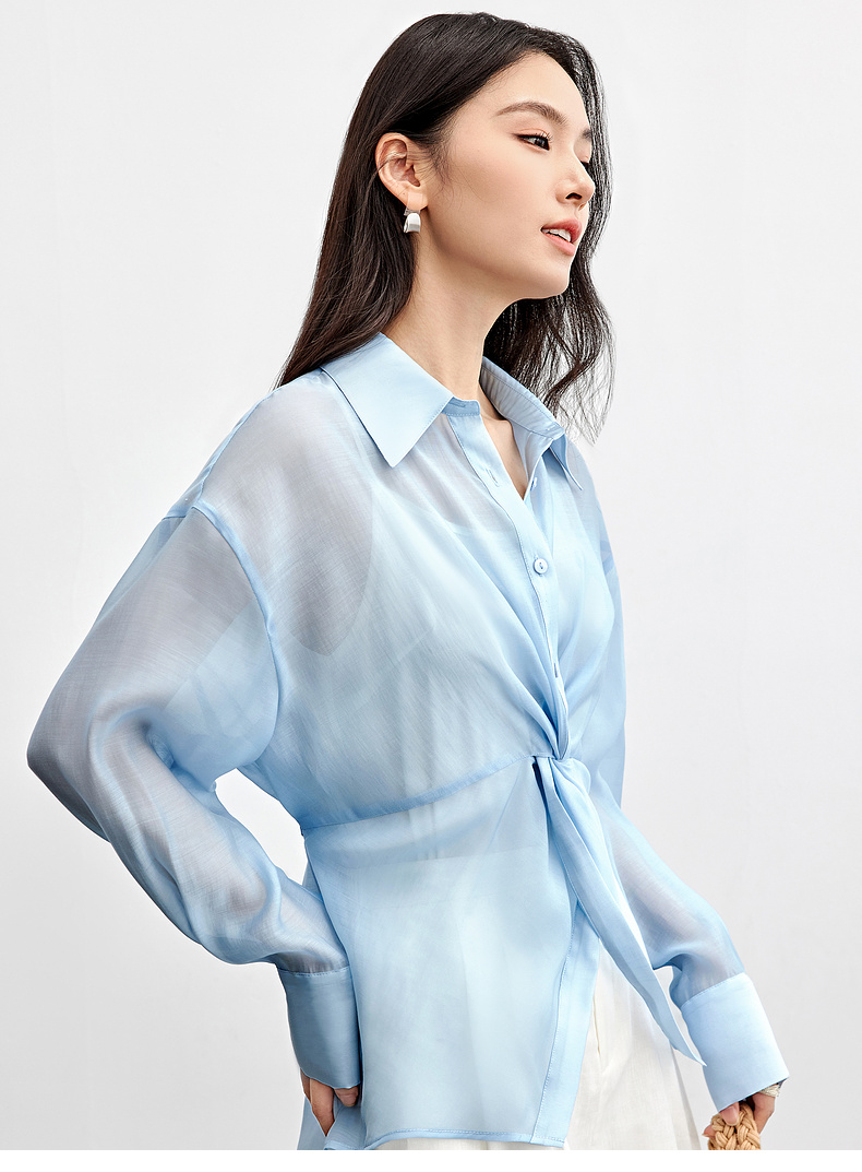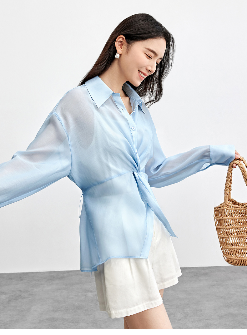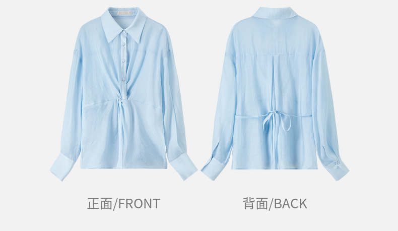 【内购】通勤上班翻领扭结系绑带收腰显瘦轻薄遮阳空调房衬衫-151C58066