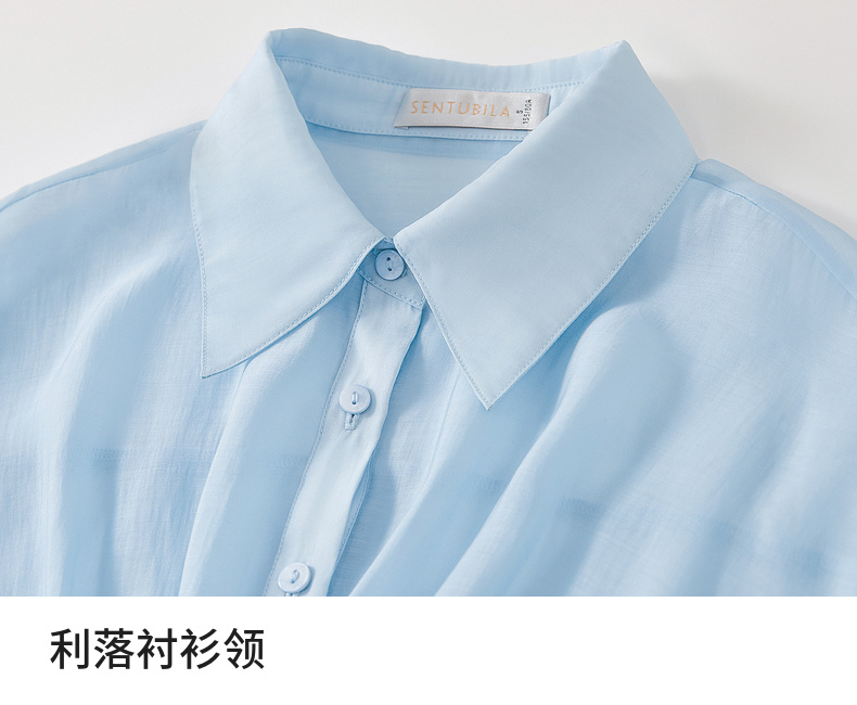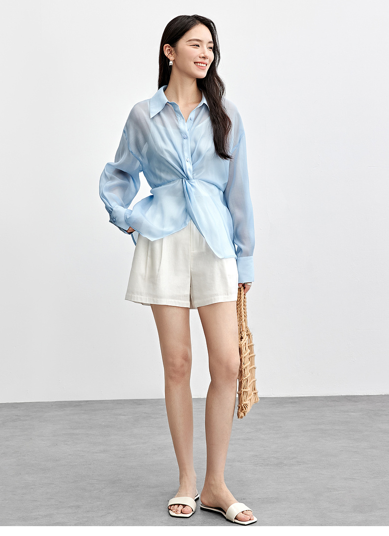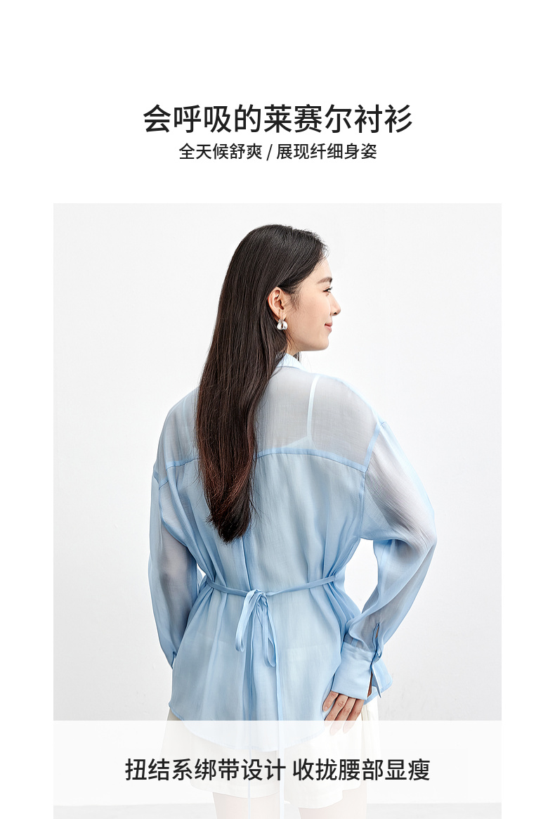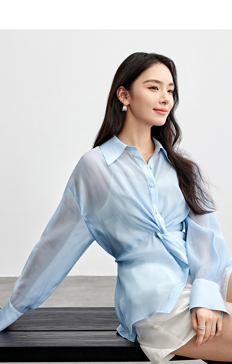 【内购】通勤上班翻领扭结系绑带收腰显瘦轻薄遮阳空调房衬衫-151C58066