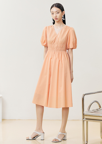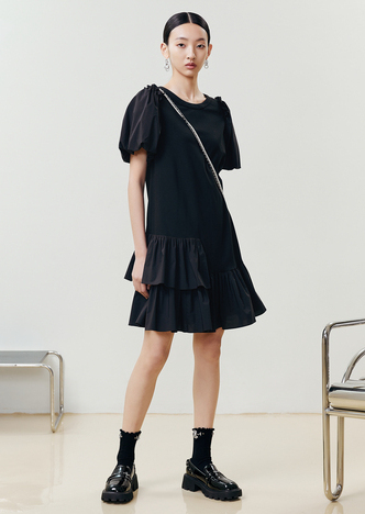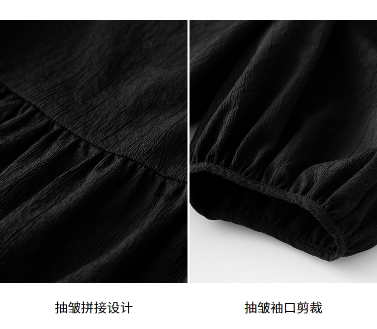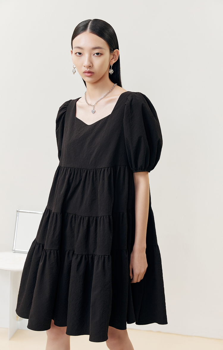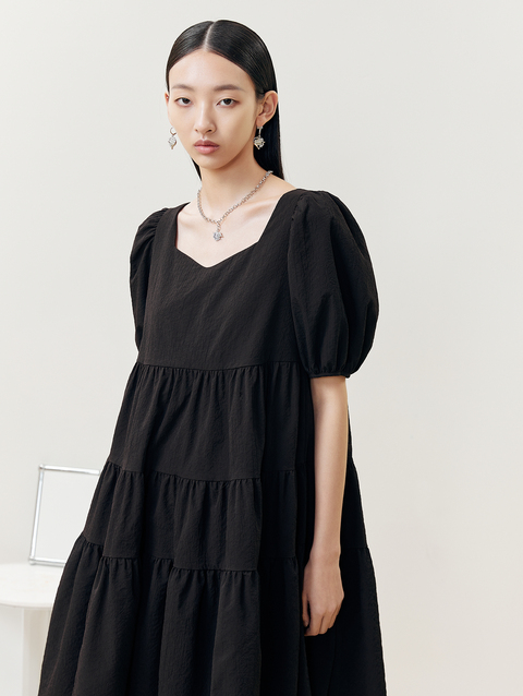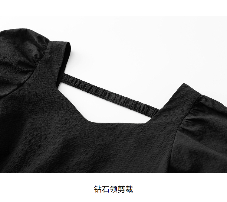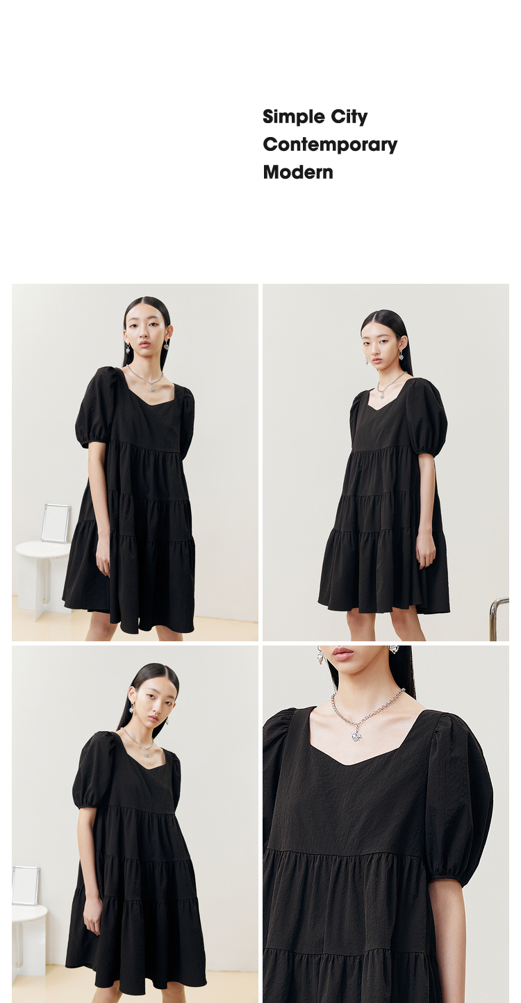 NEELLY纳俪商场同款桃心领短袖黑色连衣裙女夏季泡泡袖娃娃裙显瘦N22042Y01048