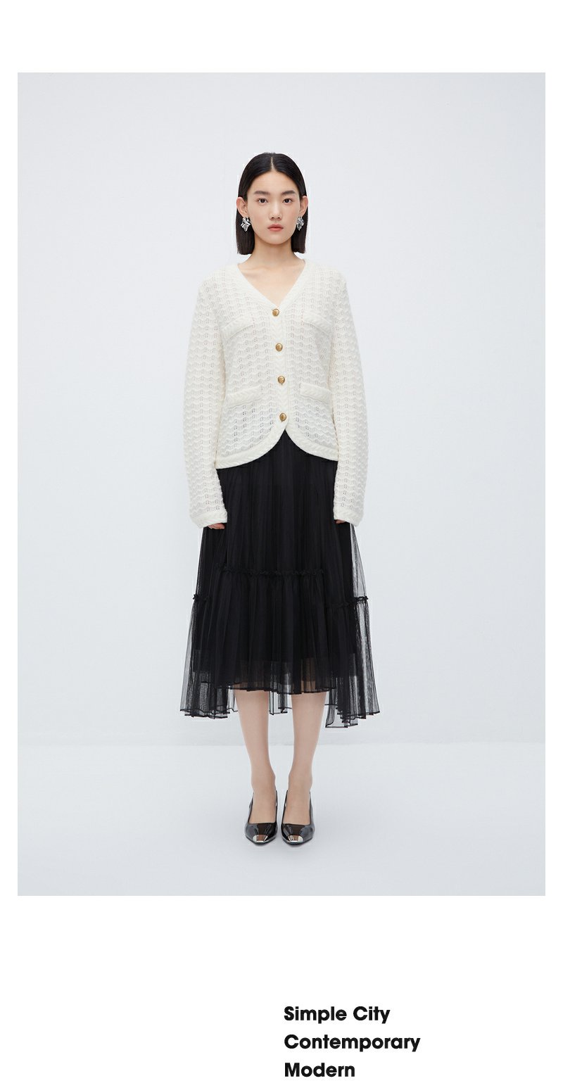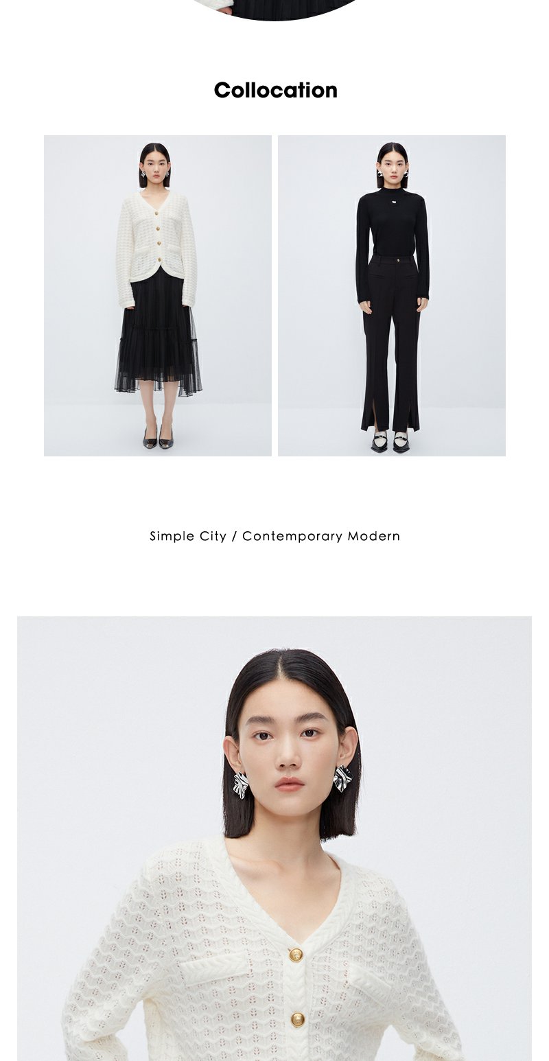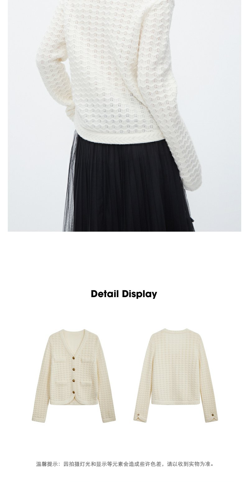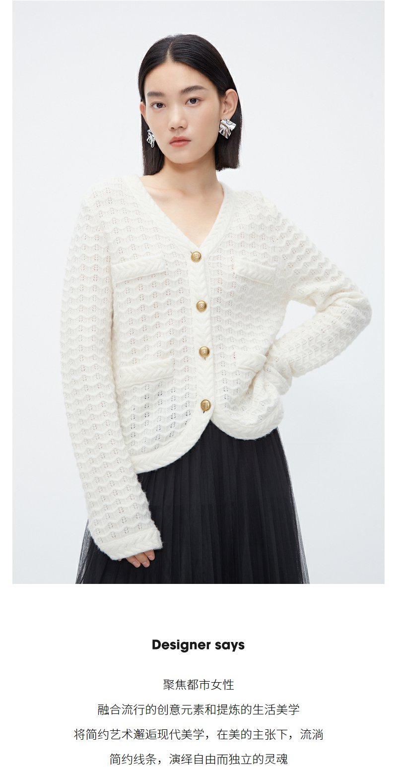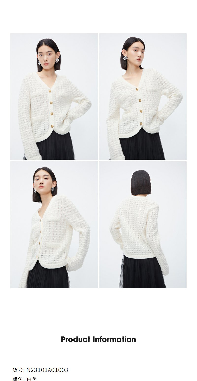 NEELLY纳俪商场同款白色奶fufu慵懒毛衣秋冬温柔别致绵羊毛针织衫N23101A01003