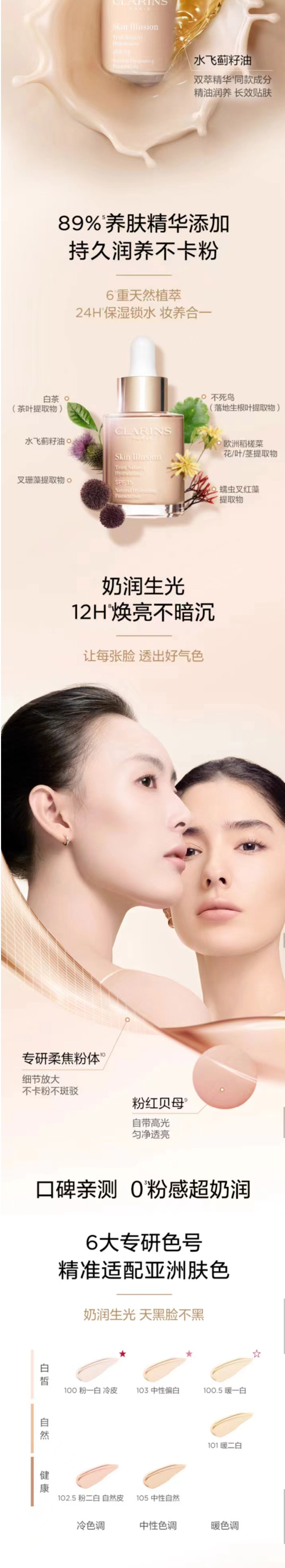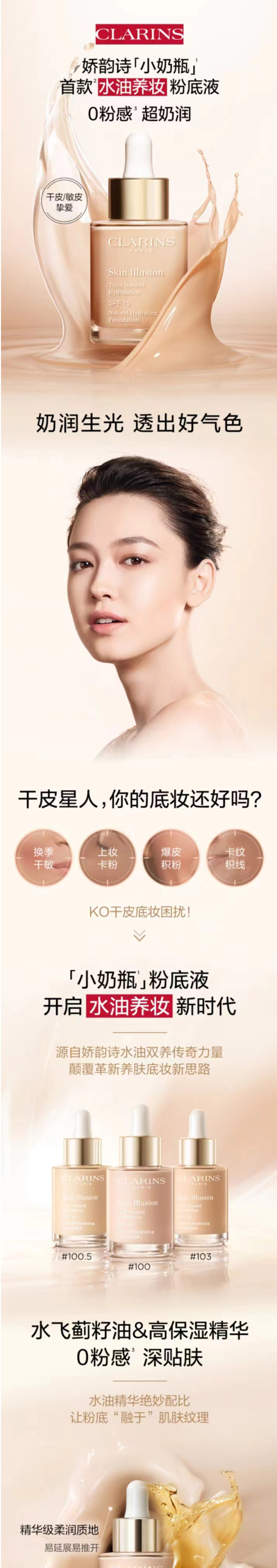 娇韵诗【小奶瓶粉底液】缎光水漾精华粉底液30ml