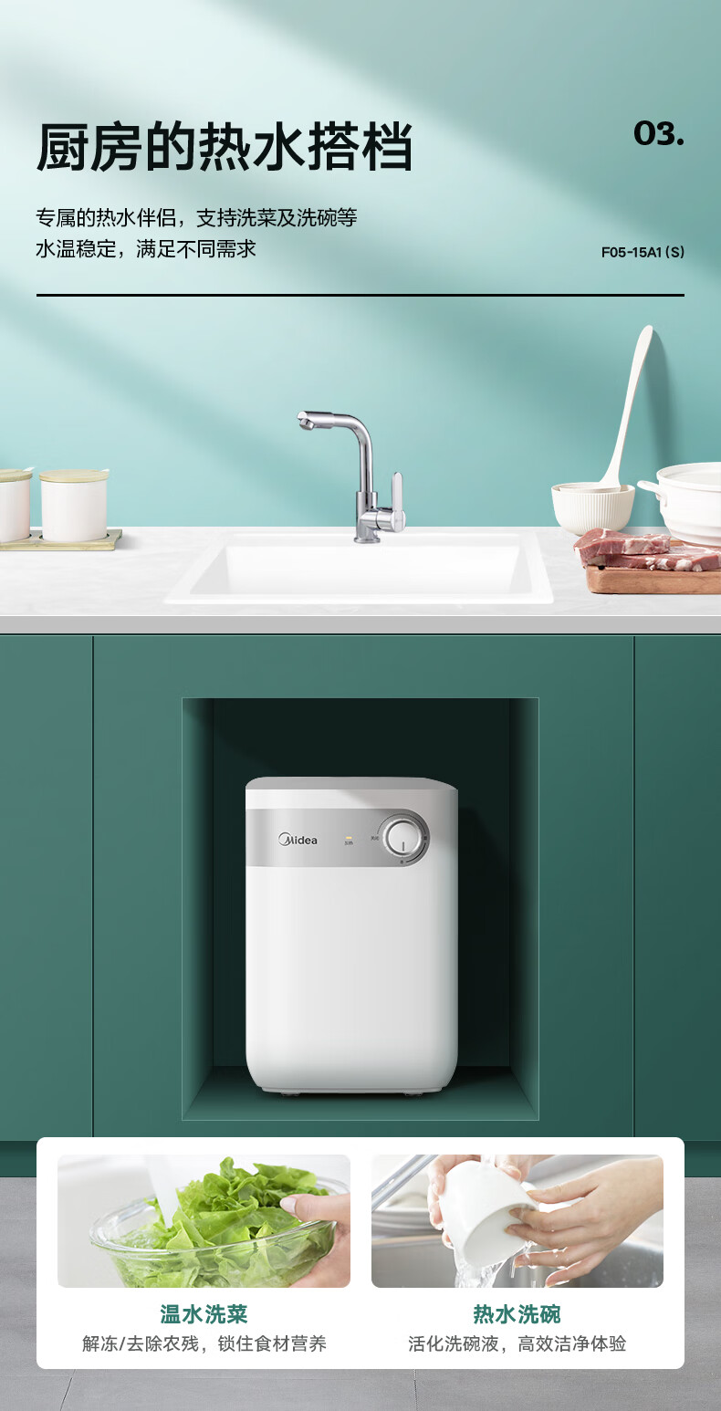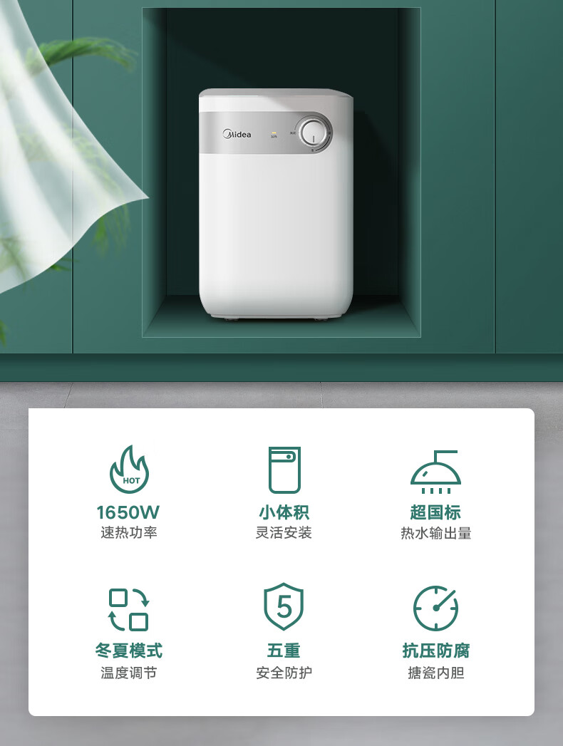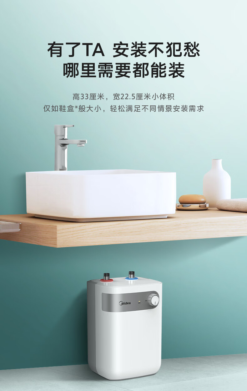 美的(Midea)F05-15A1(S) 5升迷你上出水电热水器小厨宝家用蓝钻内胆安全防护小体积不占地小户型1650W速热
