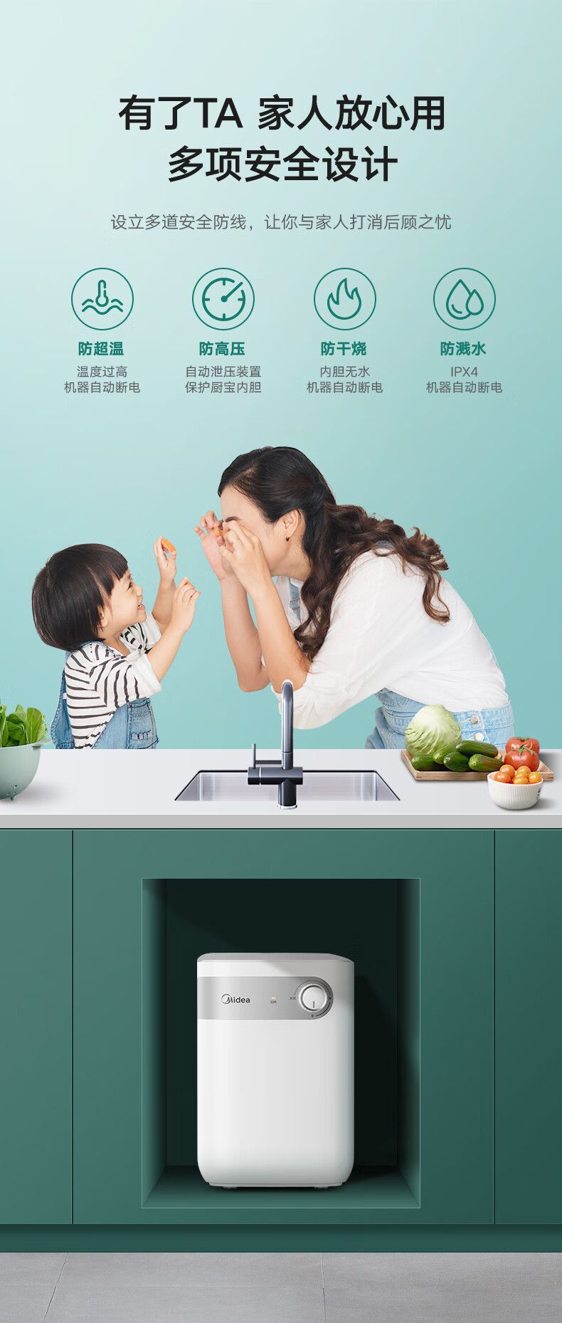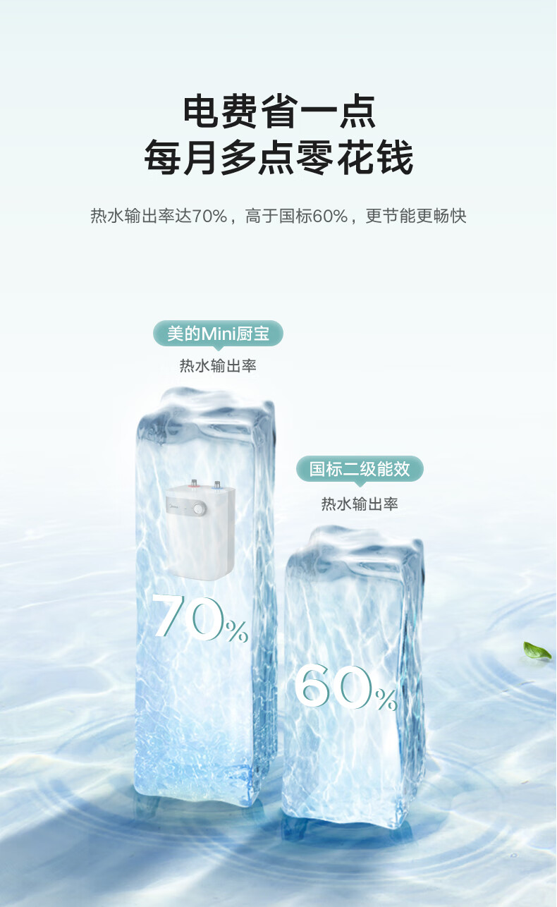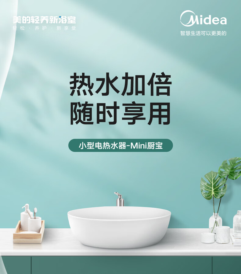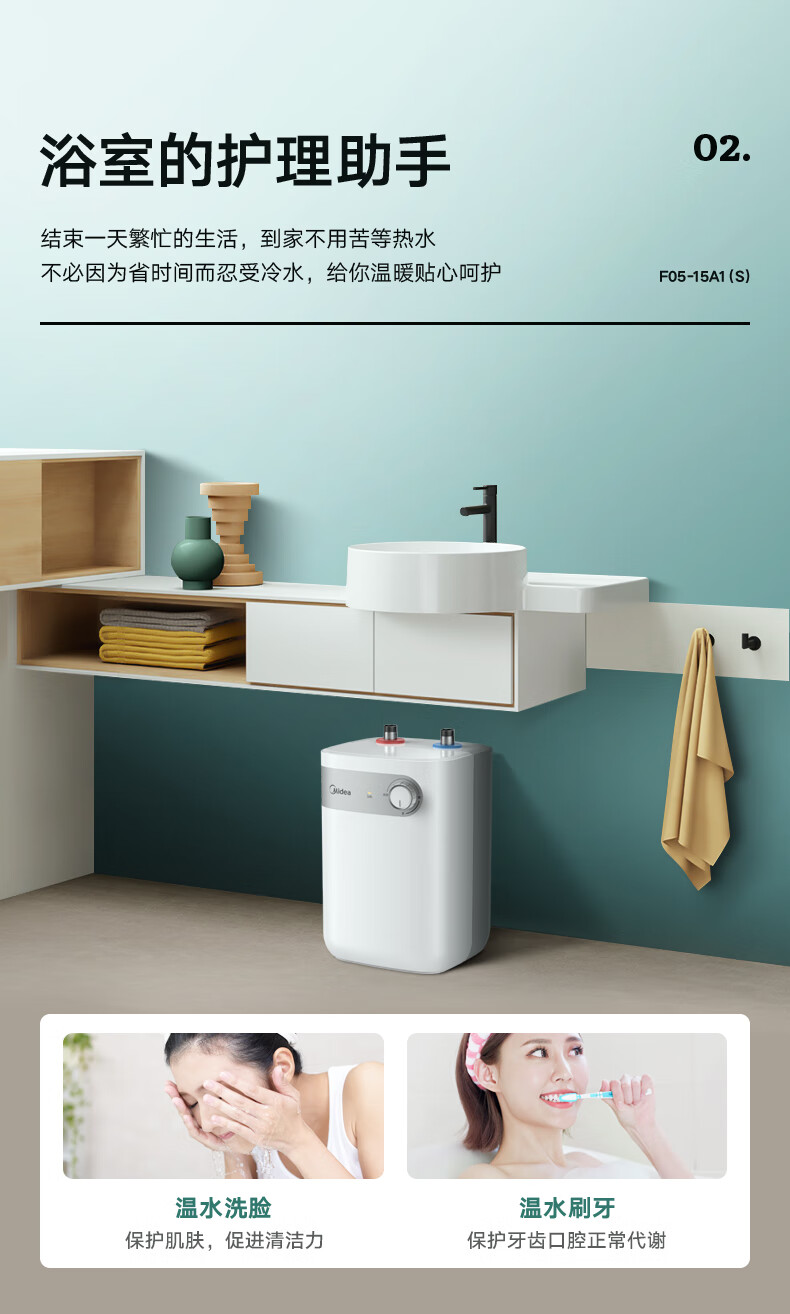 美的(Midea)F05-15A1(S) 5升迷你上出水电热水器小厨宝家用蓝钻内胆安全防护小体积不占地小户型1650W速热
