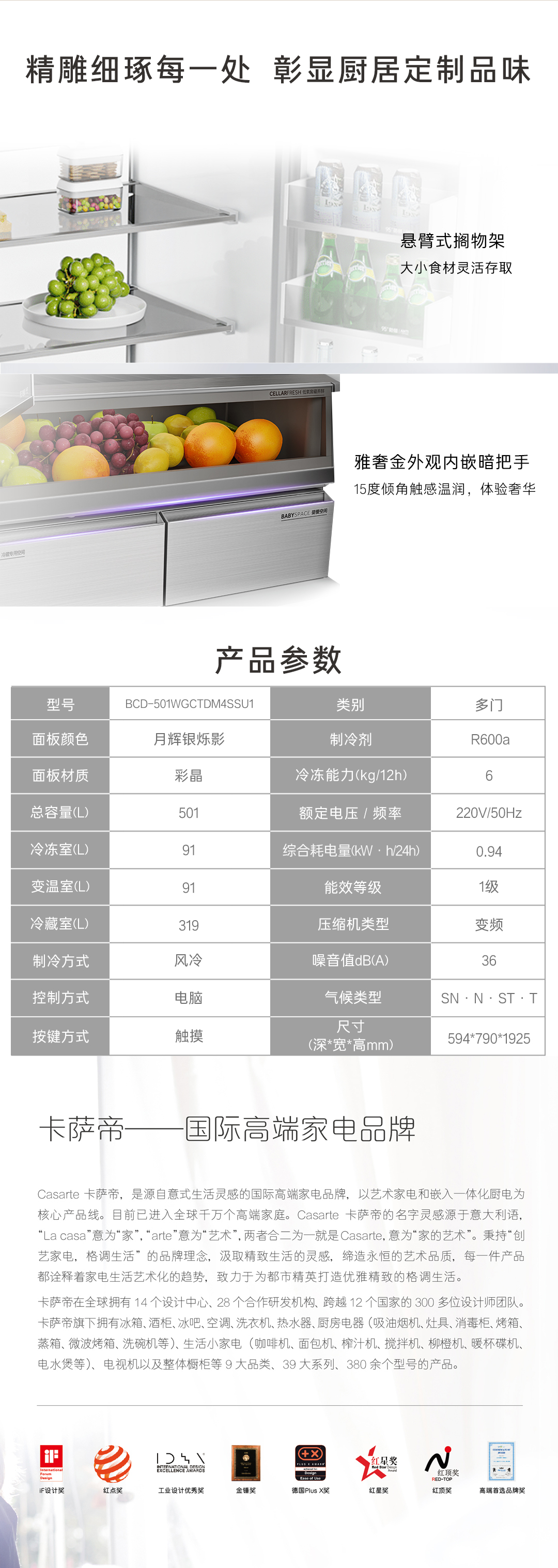 卡萨帝十字门冰箱BCD-501WGCTDM4SSU1