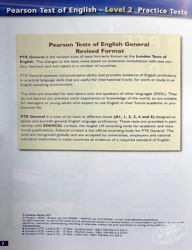 【中商原版】PTE General Level 4 5 Practice Tests Self Study 培生英语考试备考宝典 通用级别4 C1等级5套模拟题自学套装