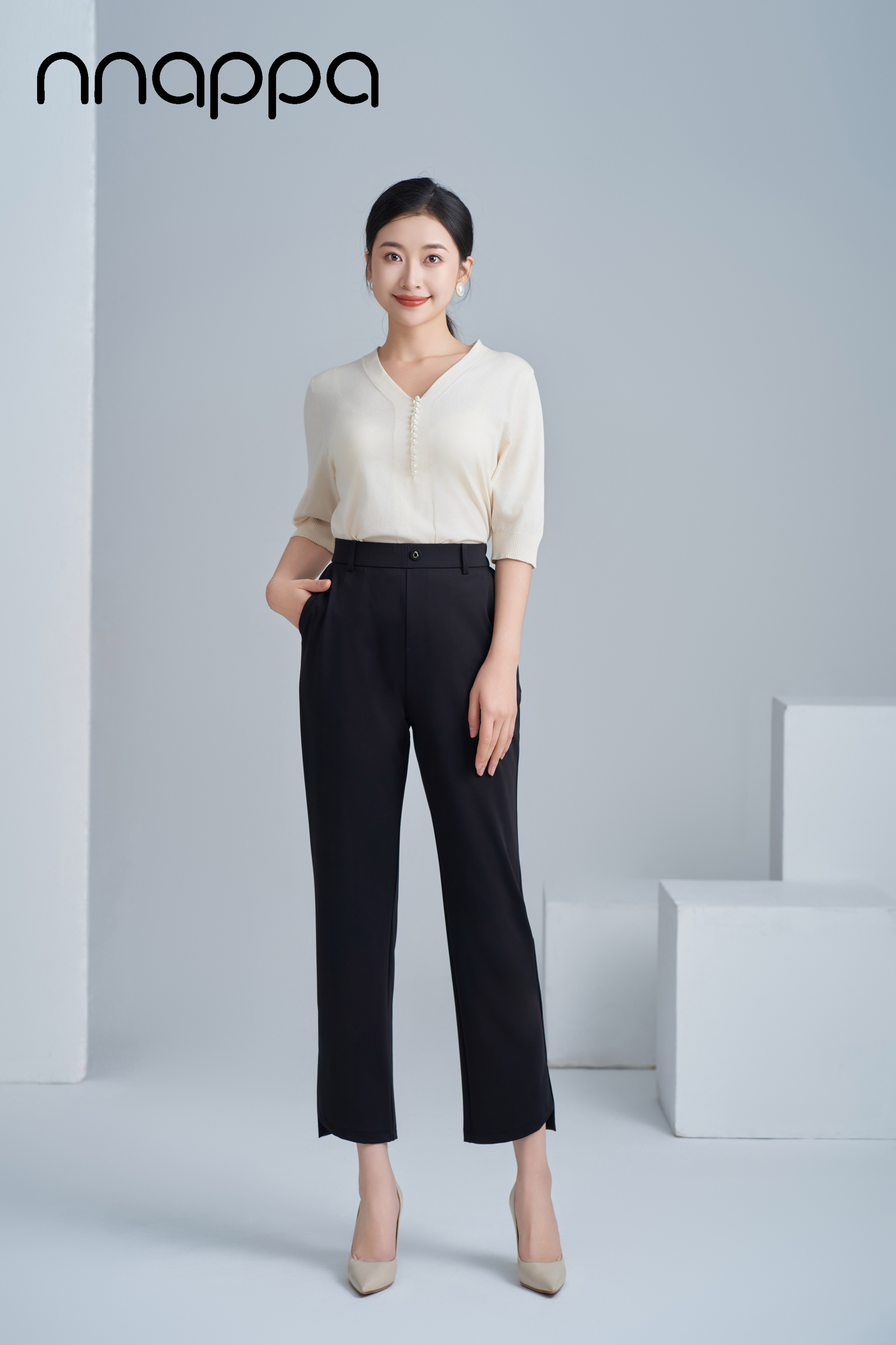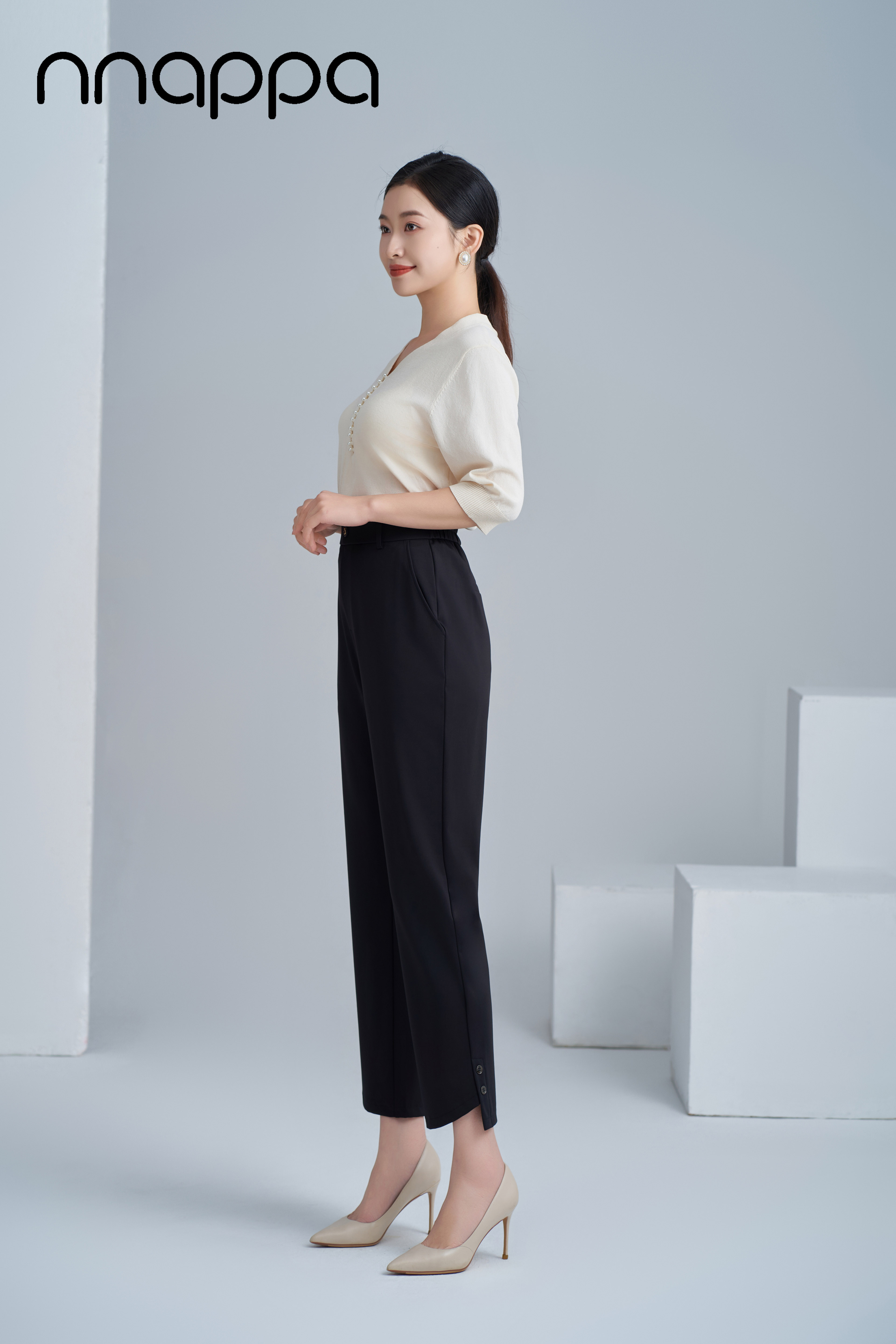 锦纶冰凉斜纹8分落差直筒裤PA29277