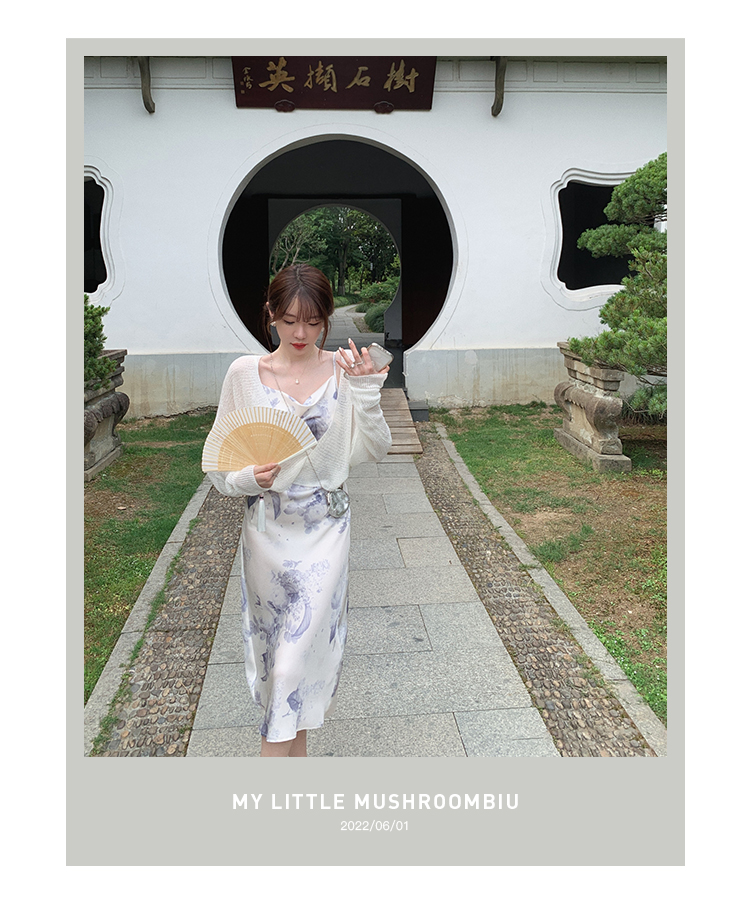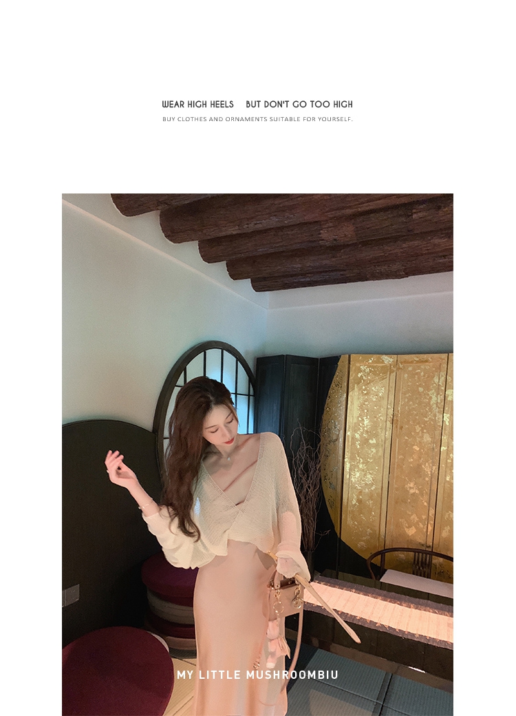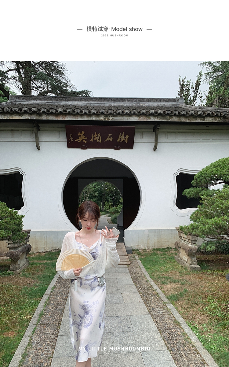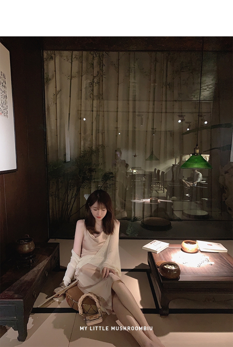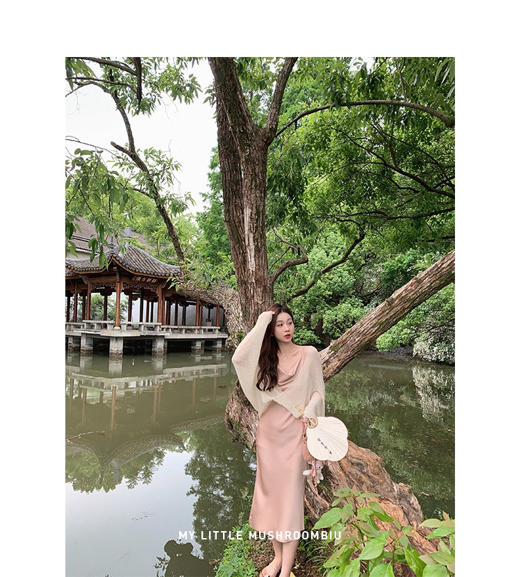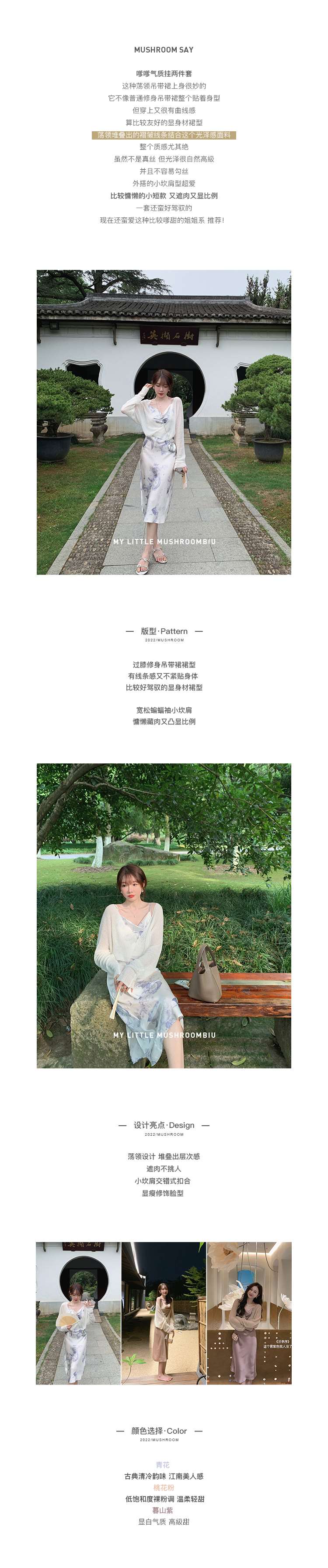金蘑菇菇【《兰亭序》】小性感纯欲风过膝修身吊带裙+小坎肩防晒