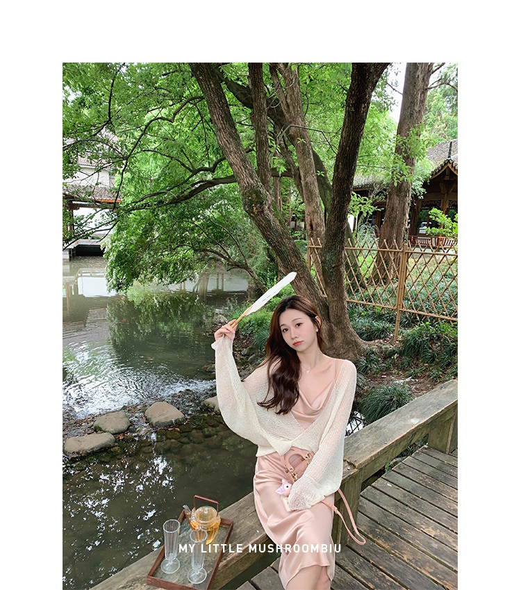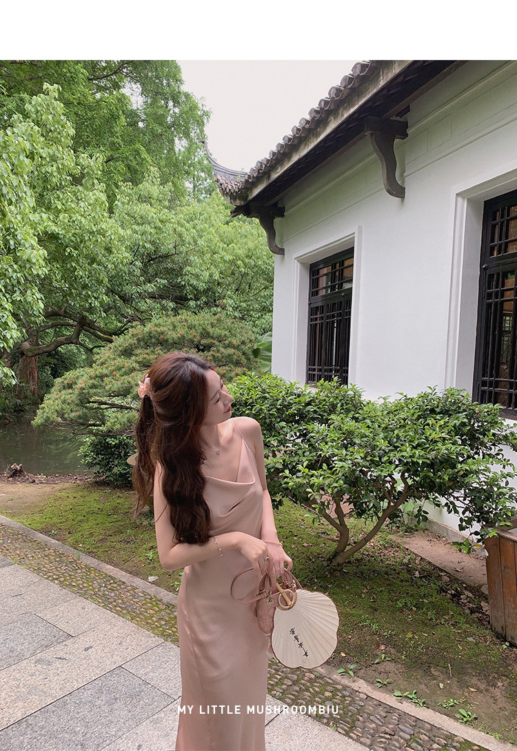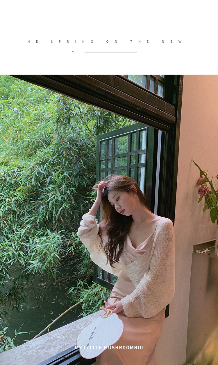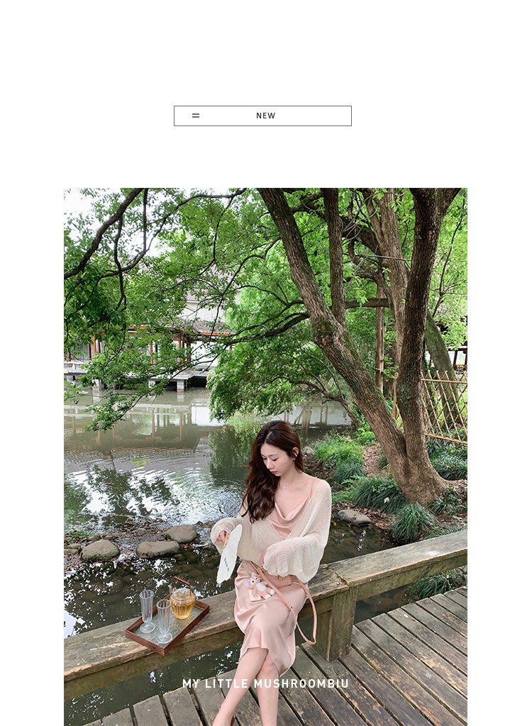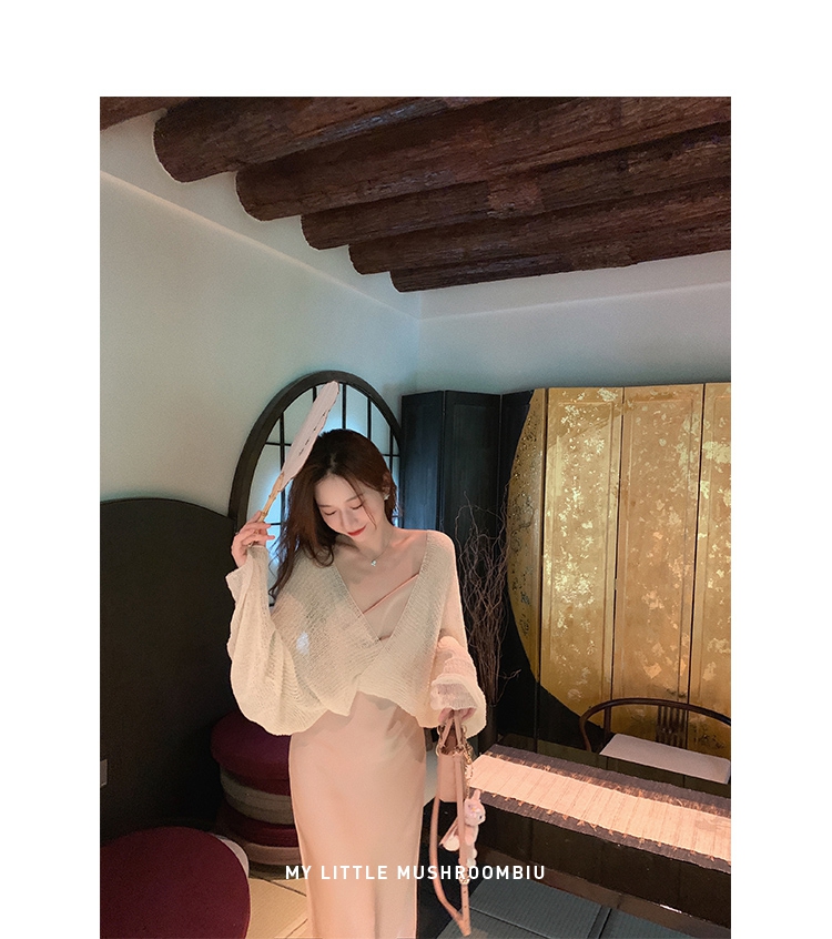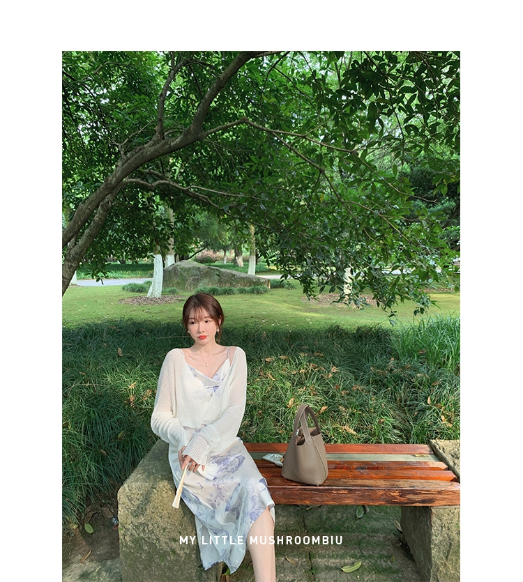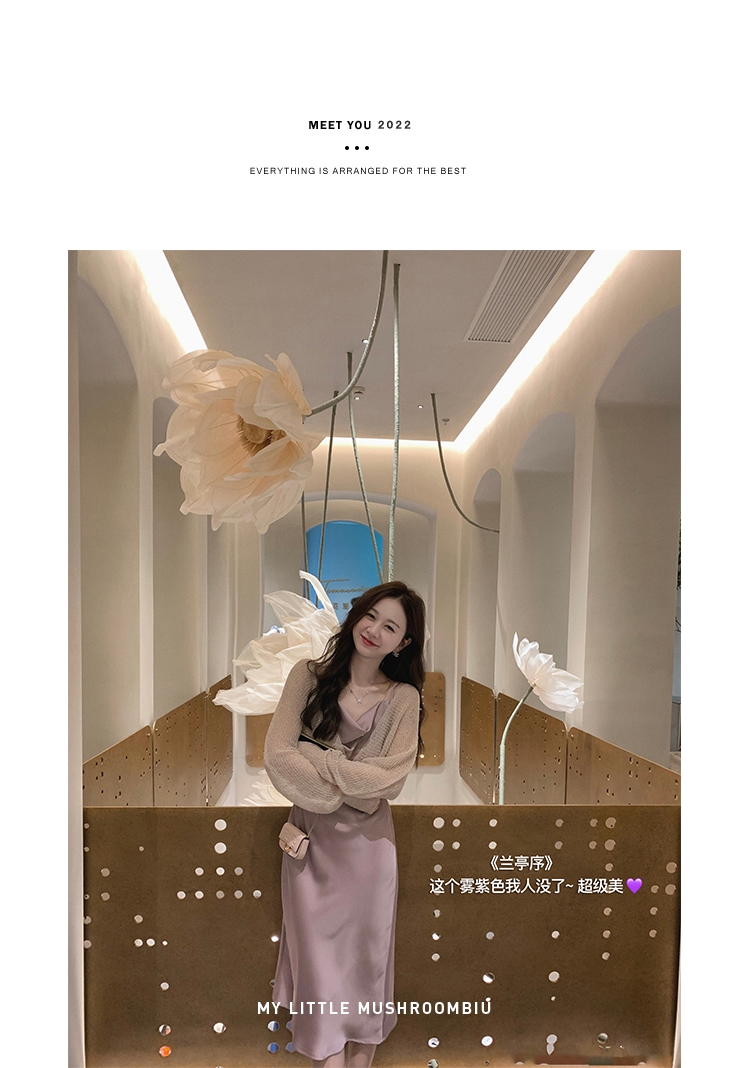 金蘑菇菇【《兰亭序》】小性感纯欲风过膝修身吊带裙+小坎肩防晒