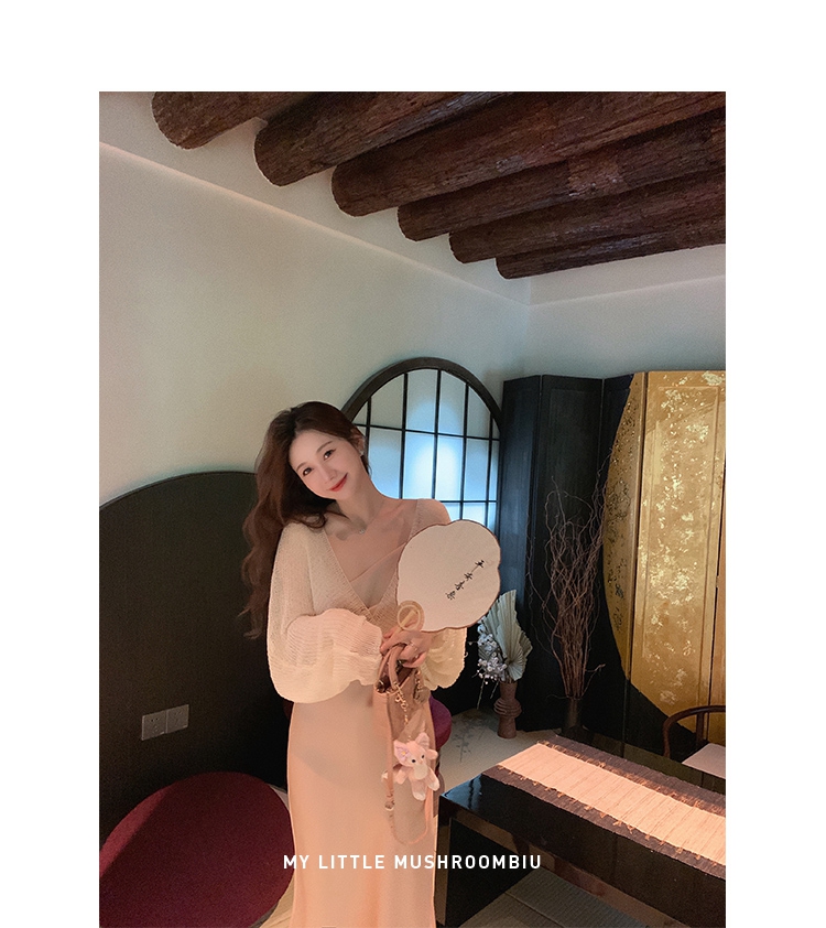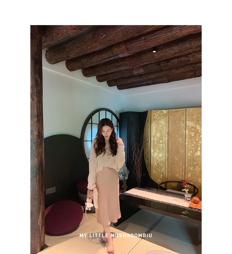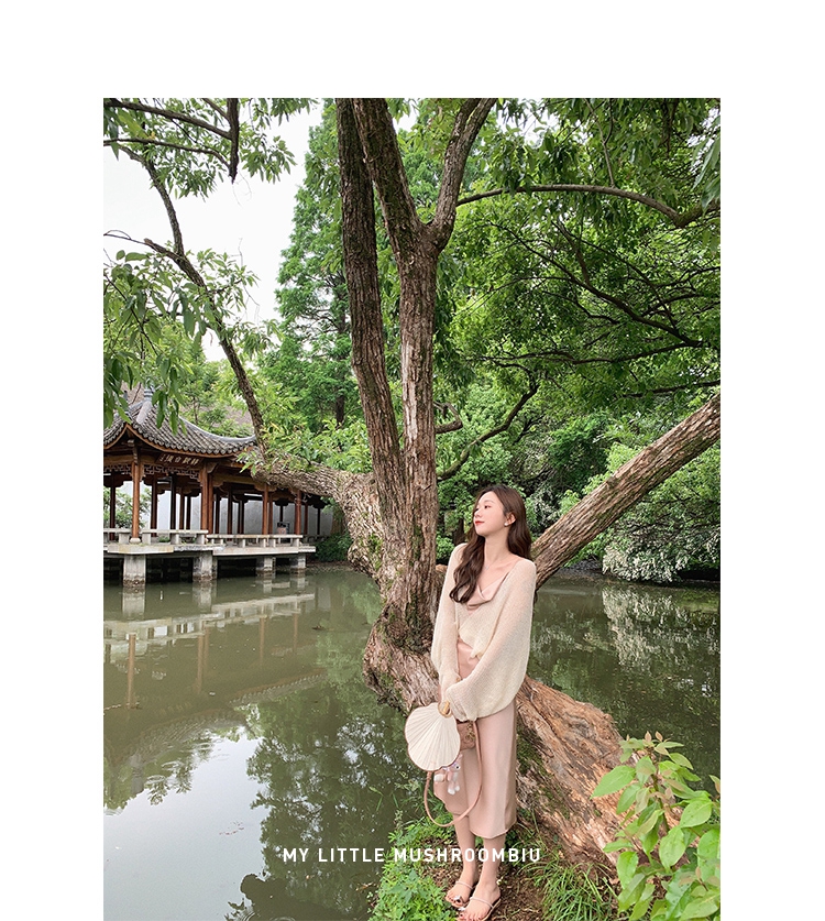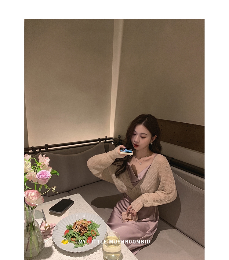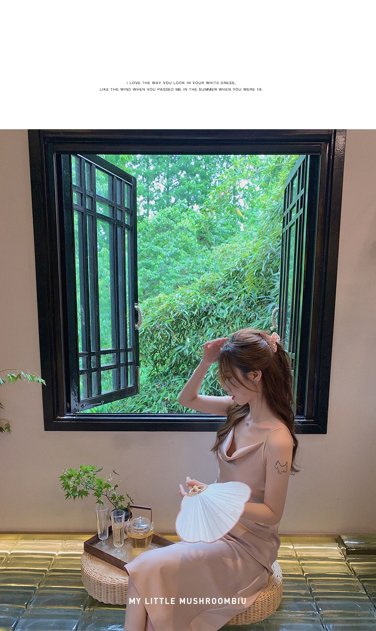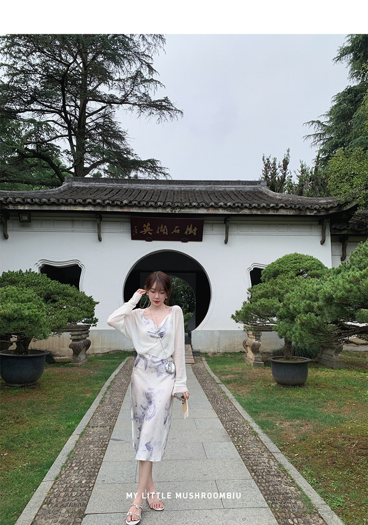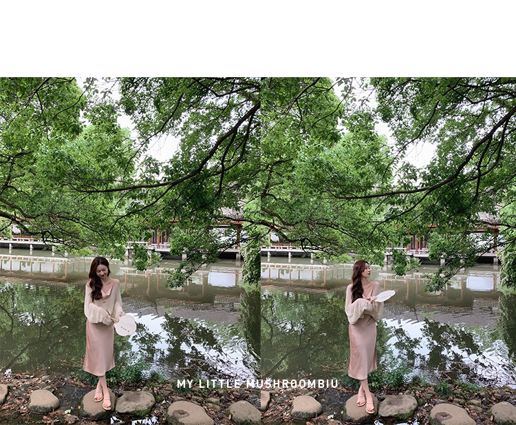 金蘑菇菇【《兰亭序》】小性感纯欲风过膝修身吊带裙+小坎肩防晒