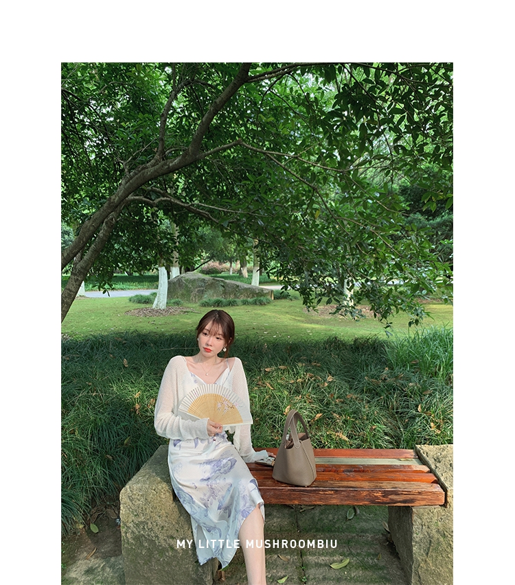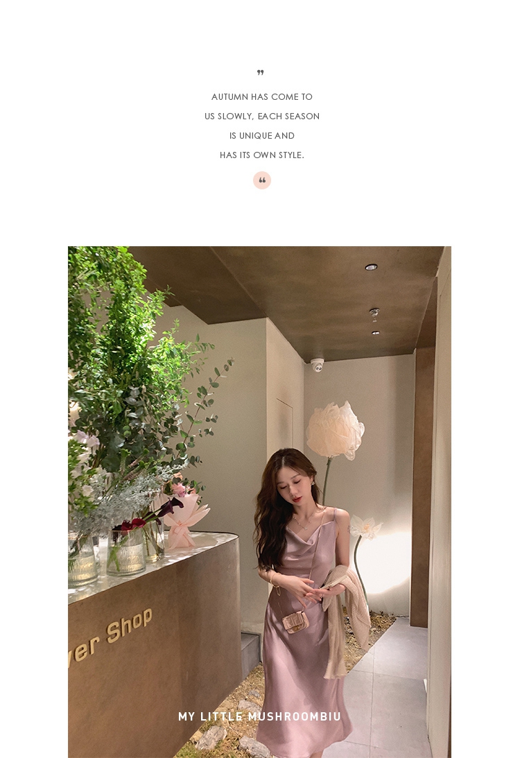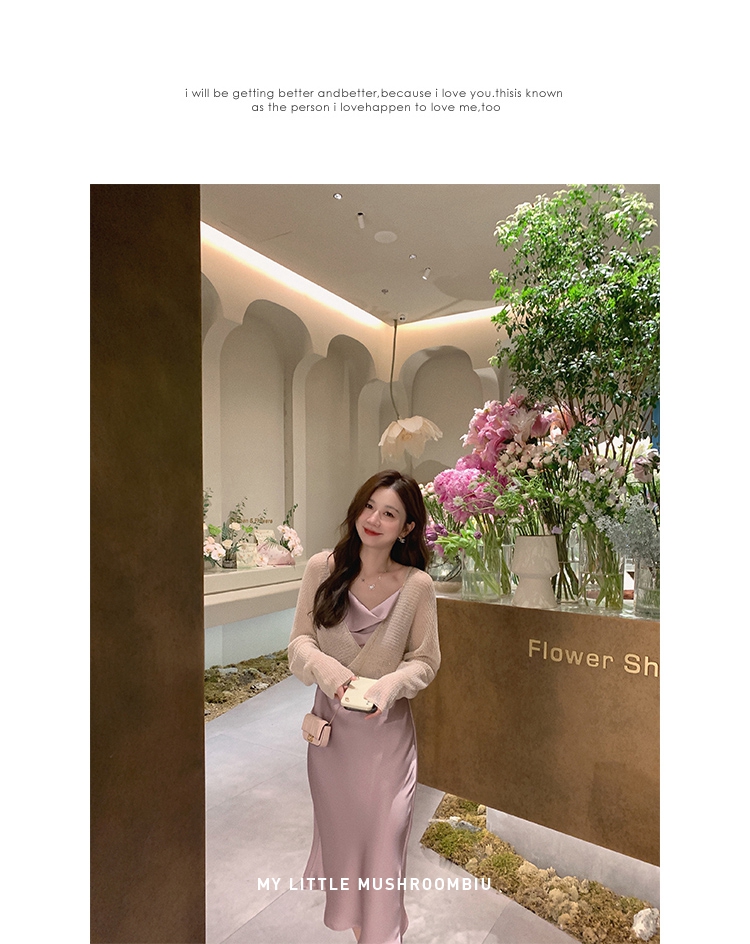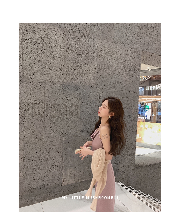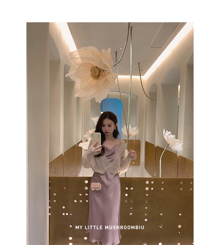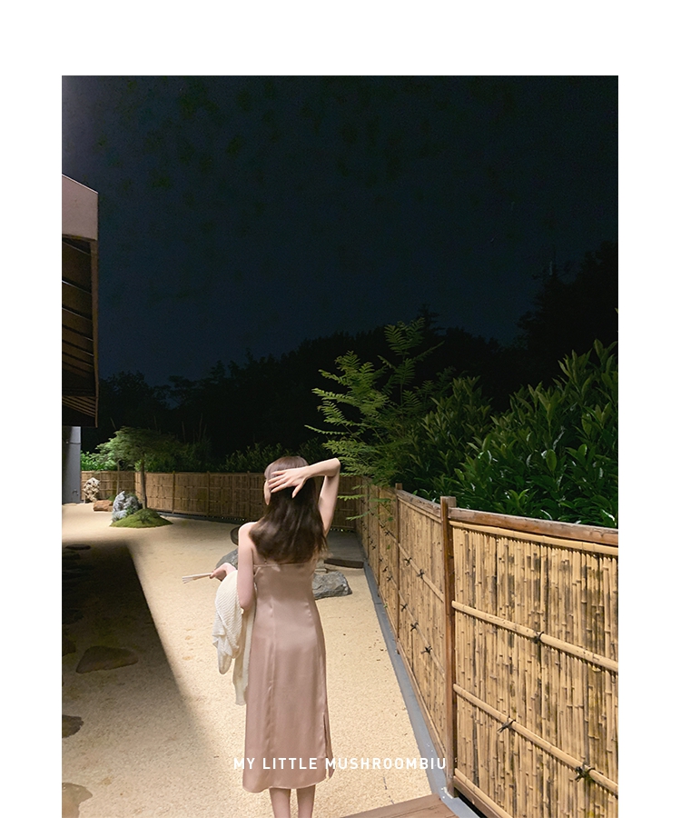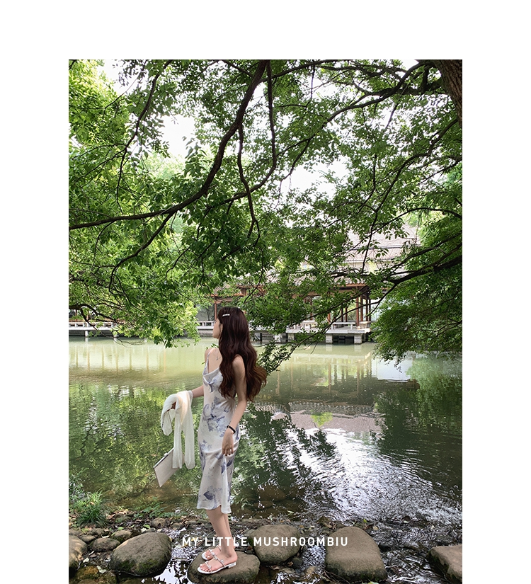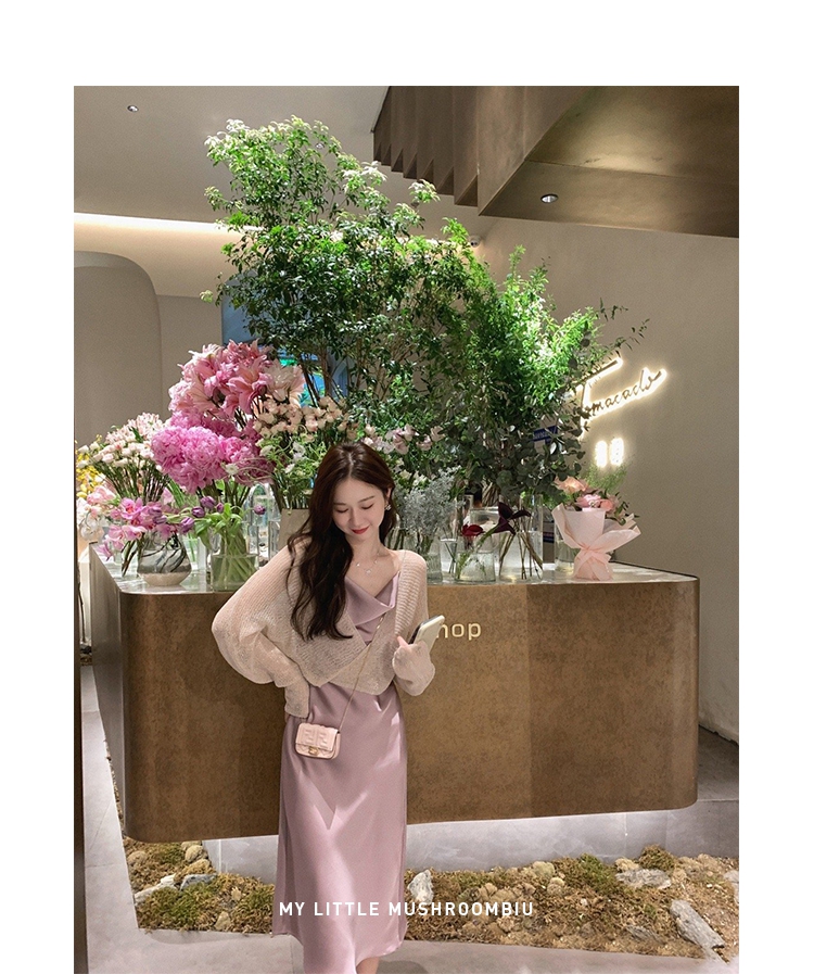 金蘑菇菇【《兰亭序》】小性感纯欲风过膝修身吊带裙+小坎肩防晒