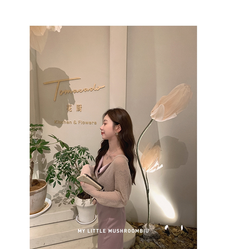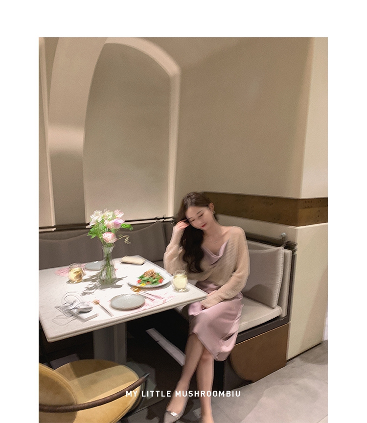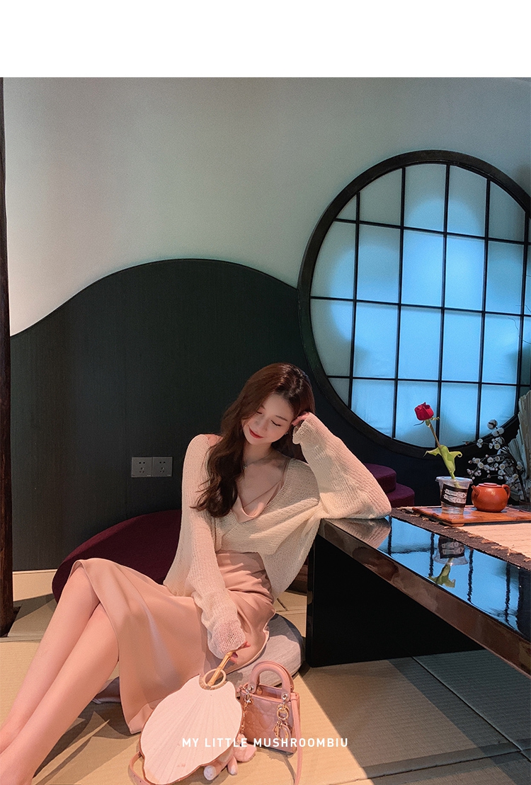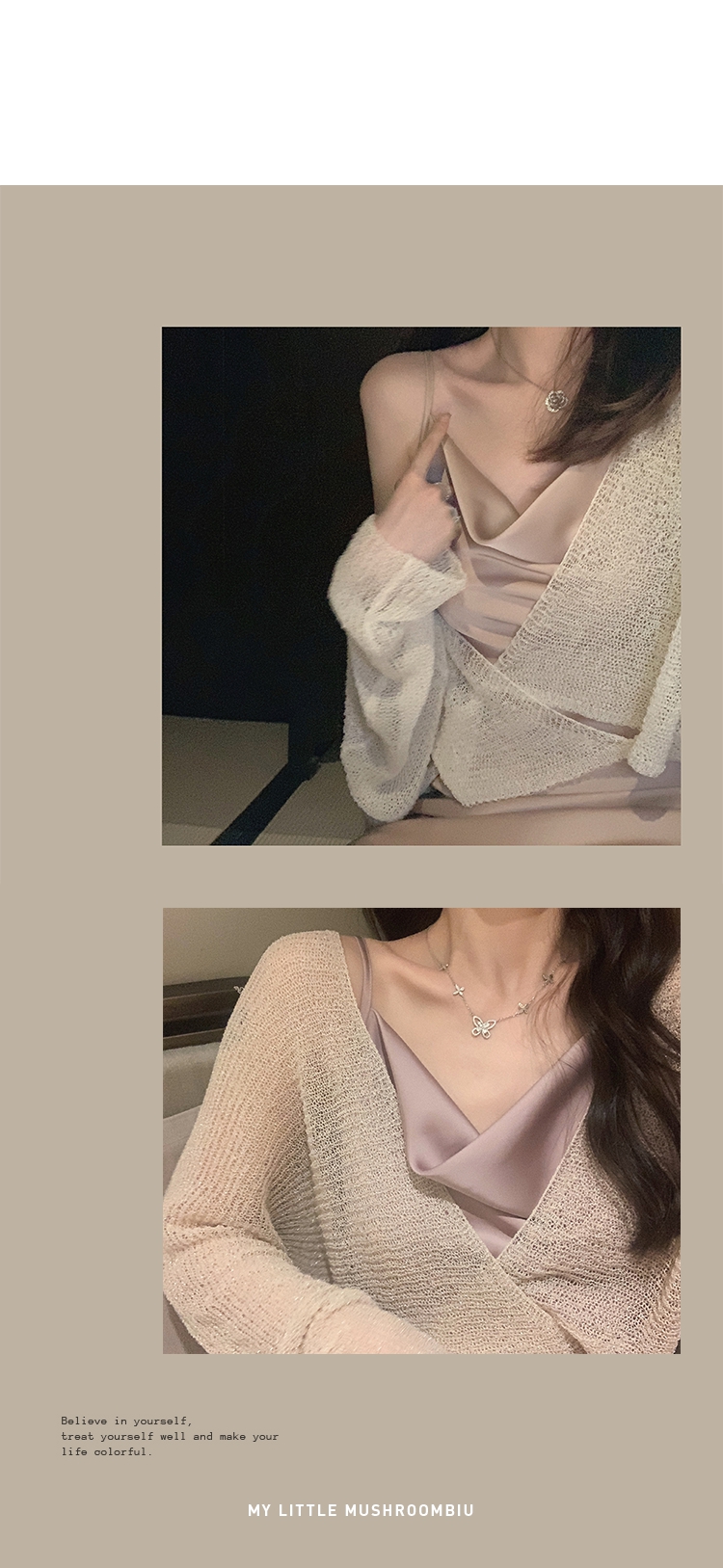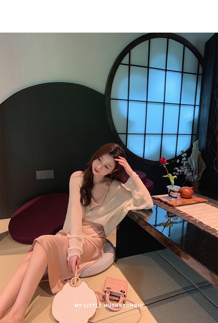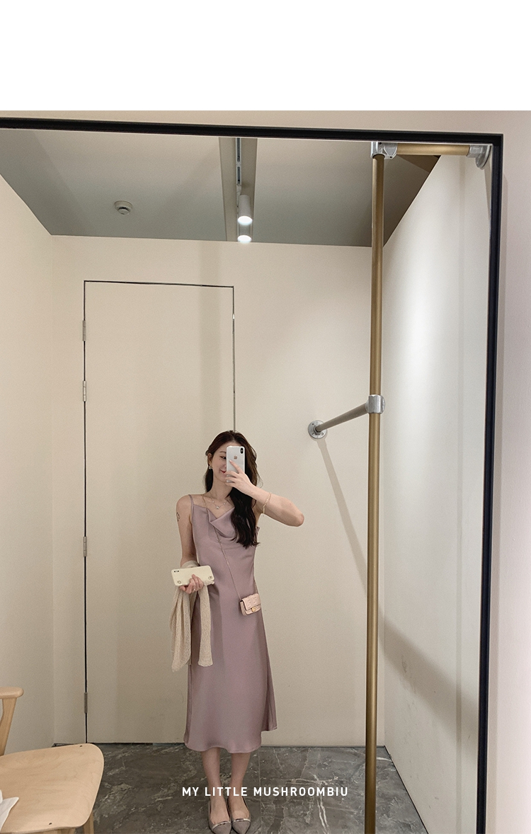 金蘑菇菇【《兰亭序》】小性感纯欲风过膝修身吊带裙+小坎肩防晒