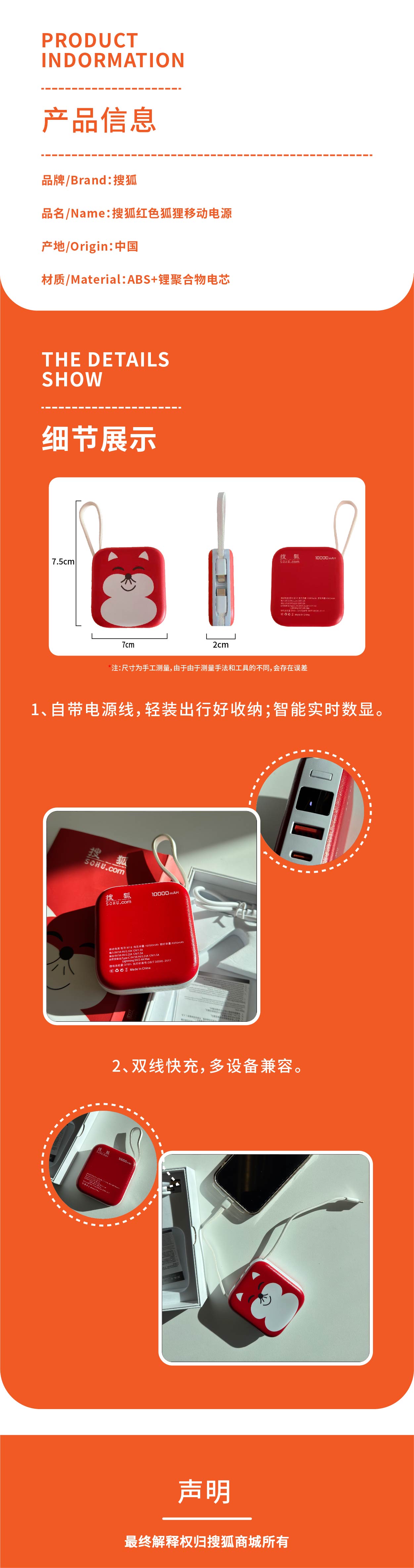10000mah经典狐狸移动电源㆐搜狐商城