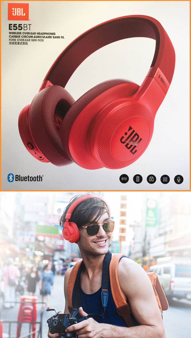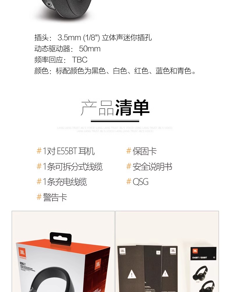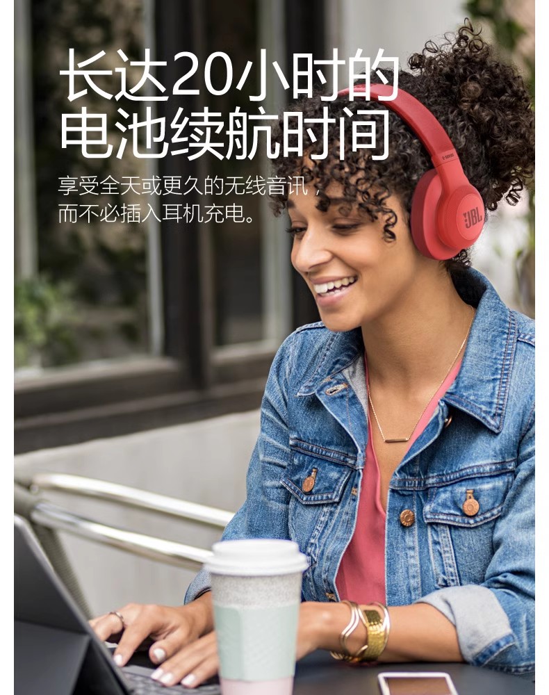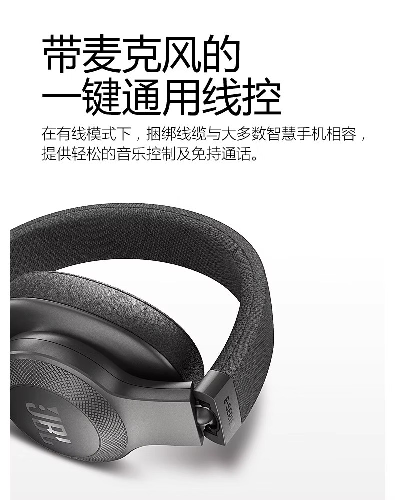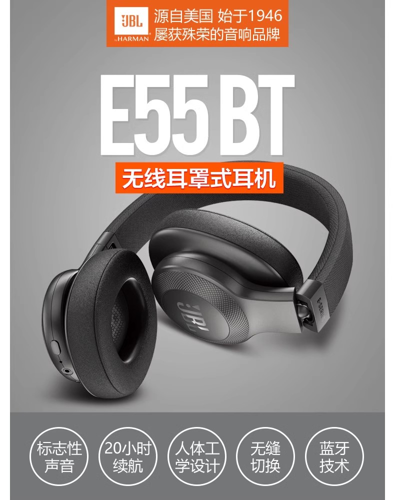 JBL E55BT头戴式无线蓝牙/线耳机音乐手机耳机便携HIFI重低音通话 蓝色