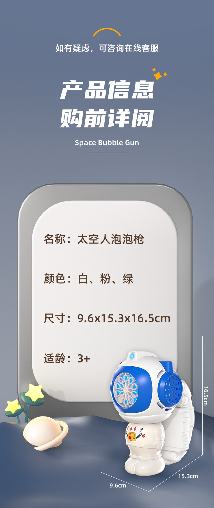 【360° 翻转不漏水】儿童泡泡机太空宇航员全自动手持吹泡泡枪玩具泡泡棒生日礼物礼品.xb