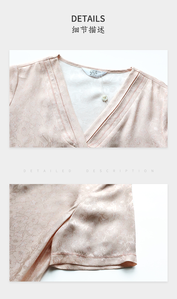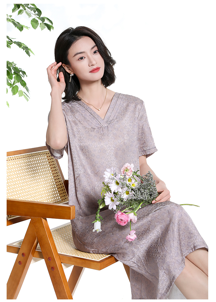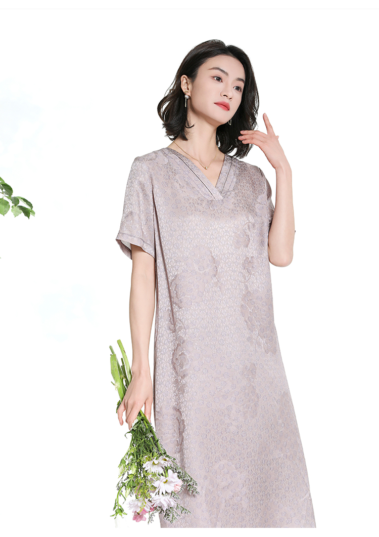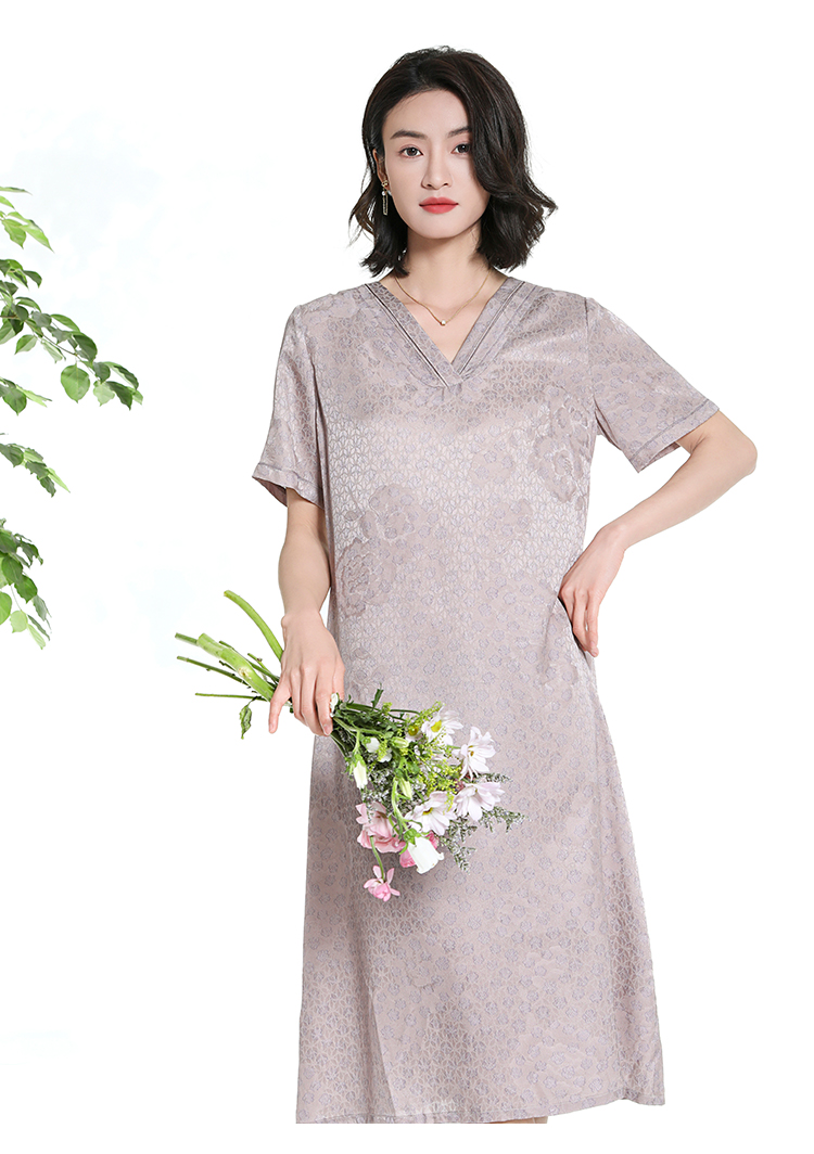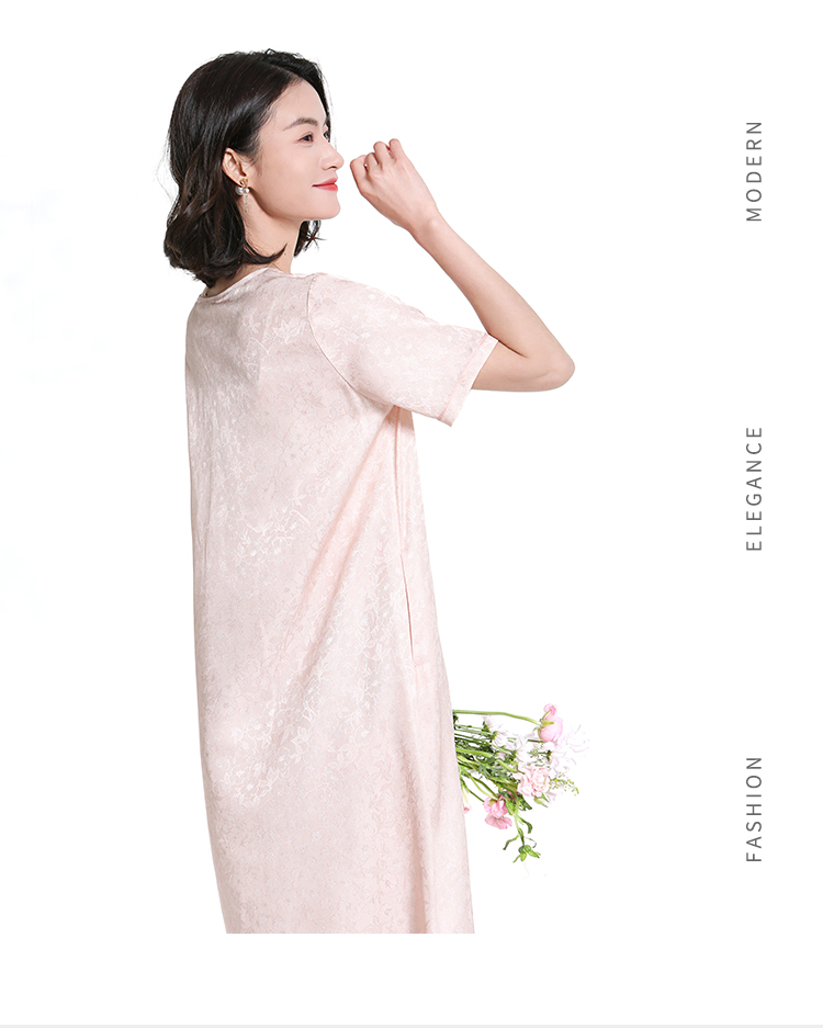 佐尔美夏季新款新中式气质印花桑蚕丝短袖连衣裙女M42LS58