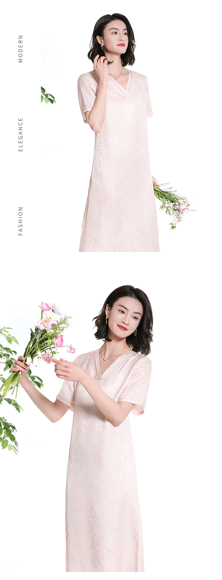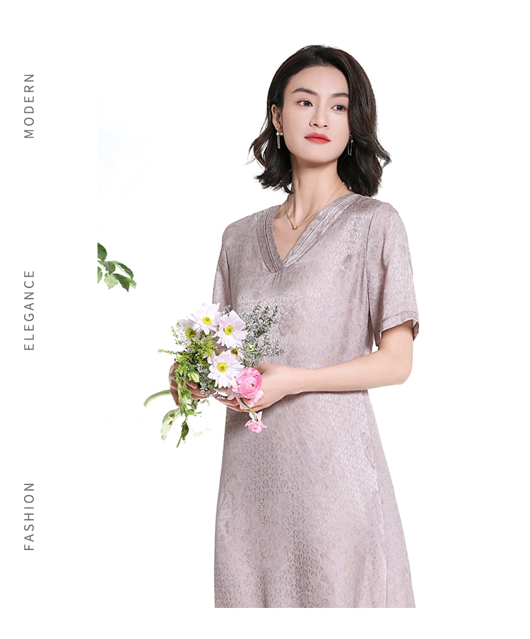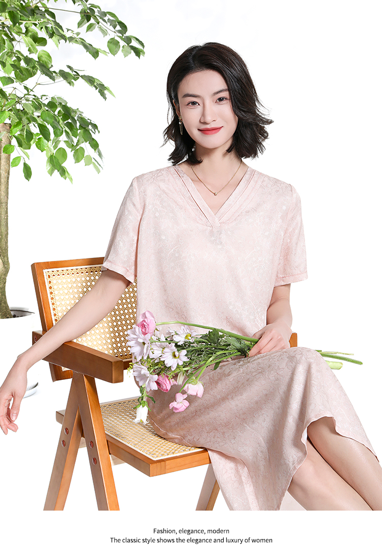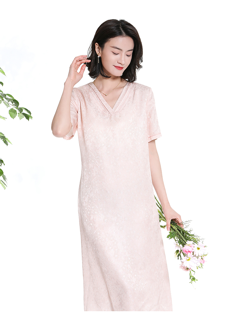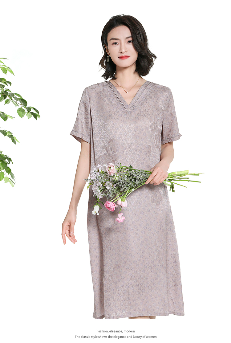佐尔美夏季新款新中式气质印花桑蚕丝短袖连衣裙女M42LS58