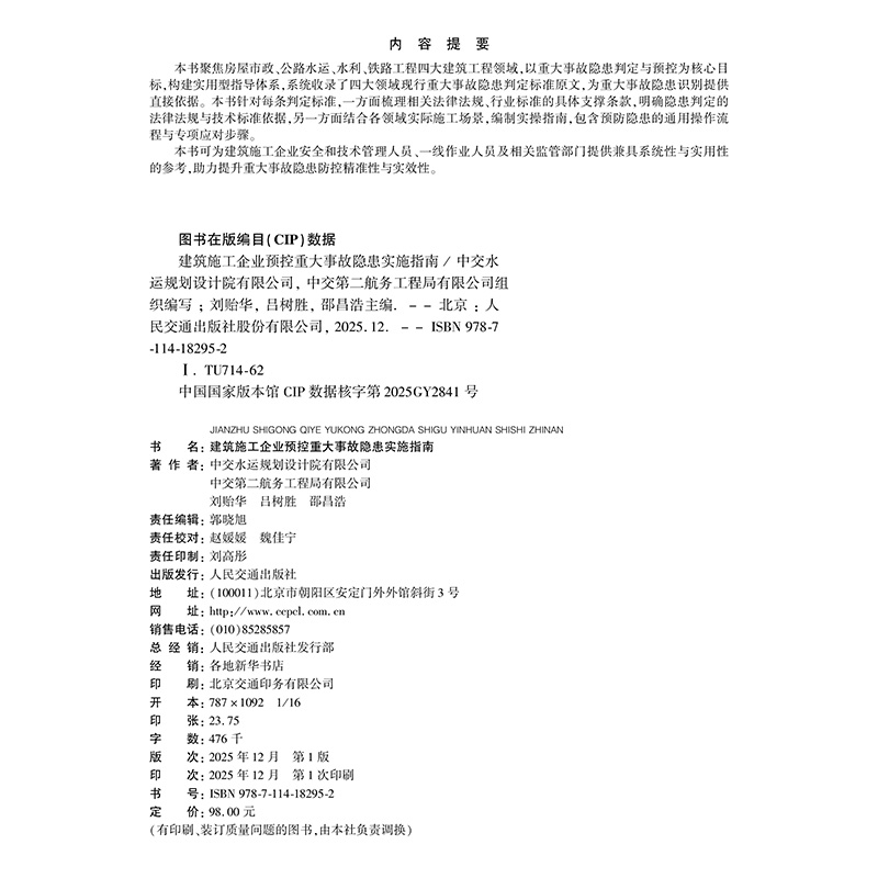 书名:建筑施工企业预控重大事故隐患实施指南