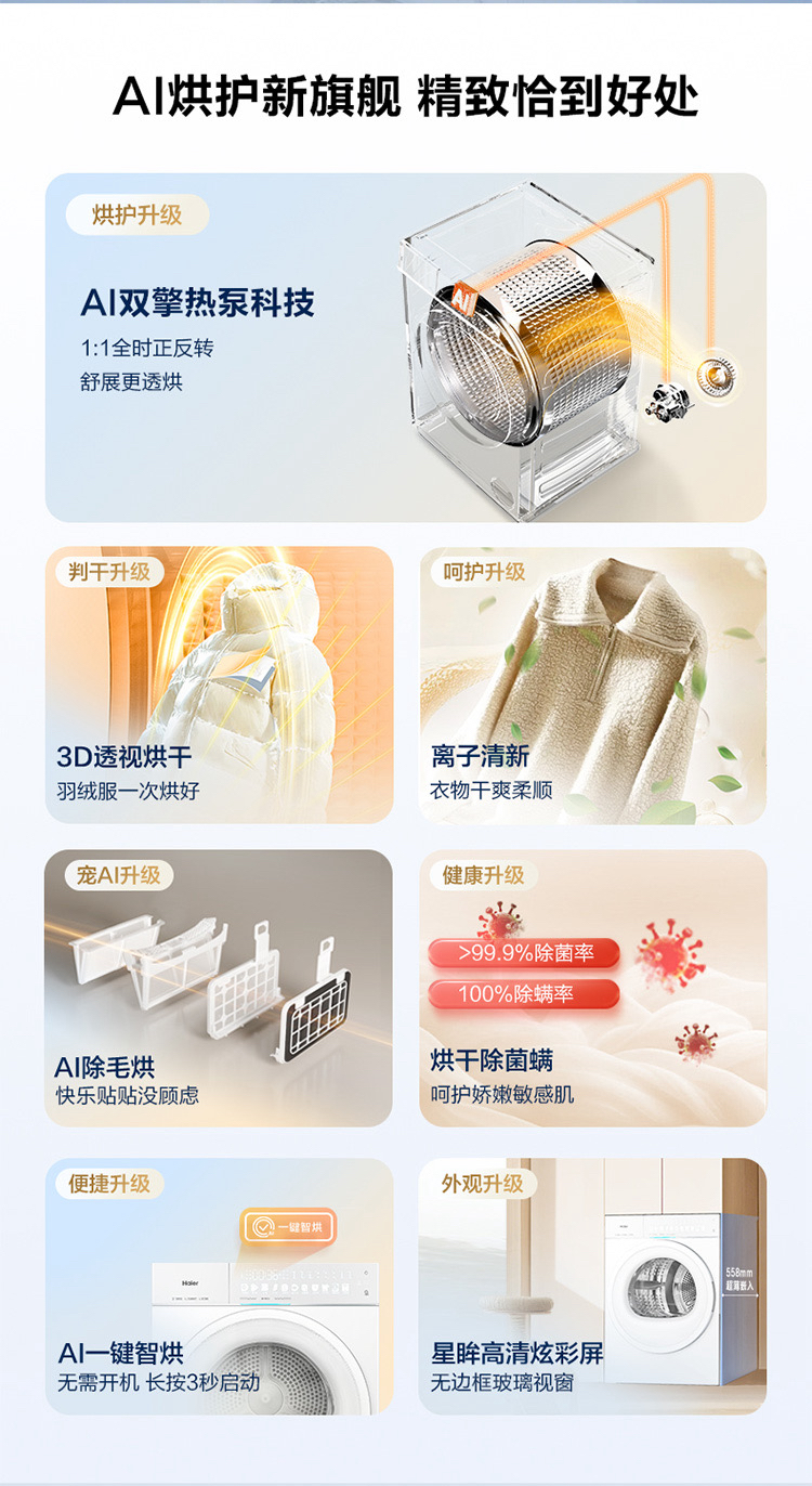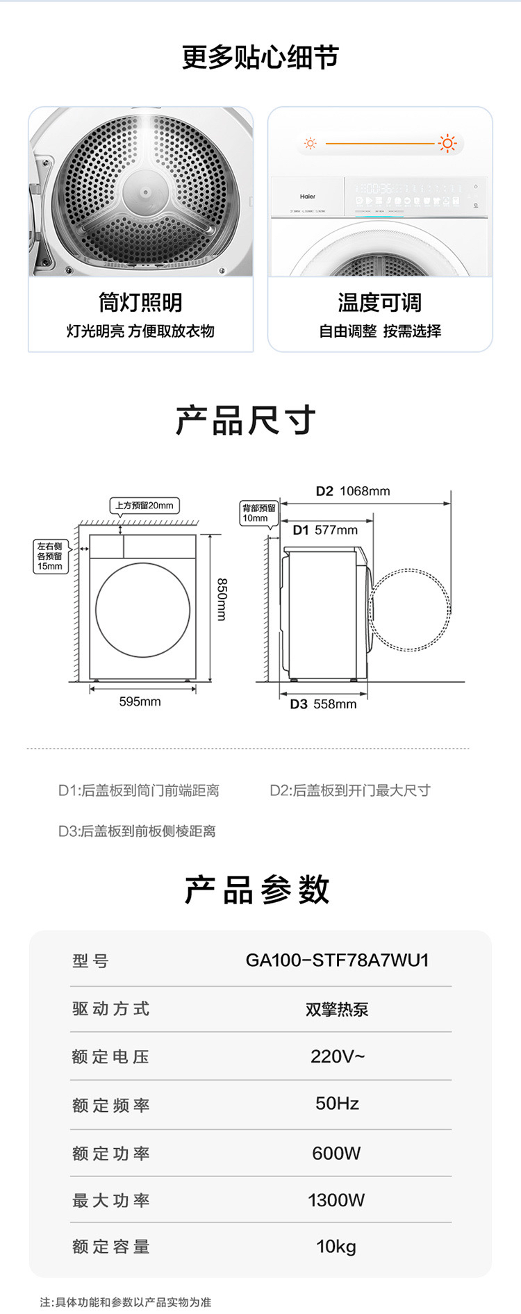 海尔(Haier)洗烘套装 XQG100-BLEU78A7WU1+GA100-STF78A7WU1