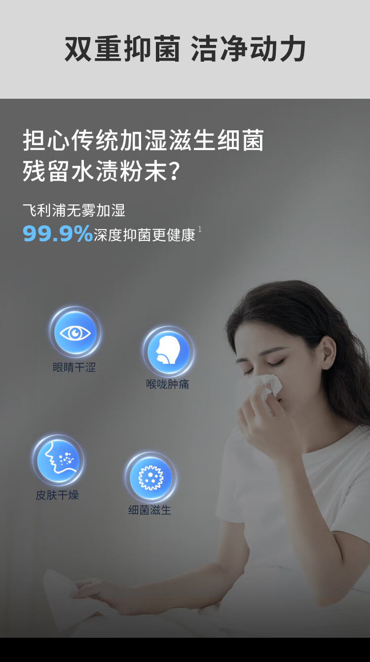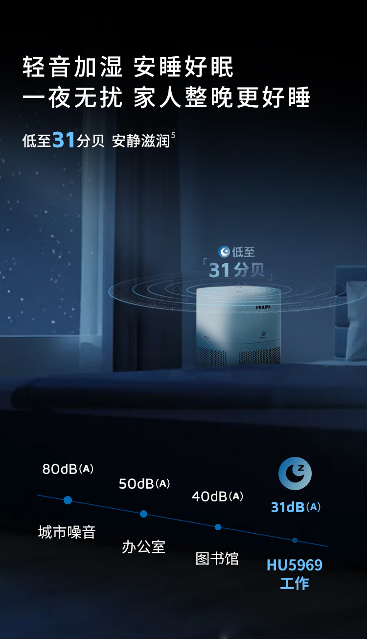 飞利浦 (PHILIPS)无雾加湿器 卧室家用低噪加湿器 大容量母婴无菌加湿 智能调节 大加湿量HU5969/00
