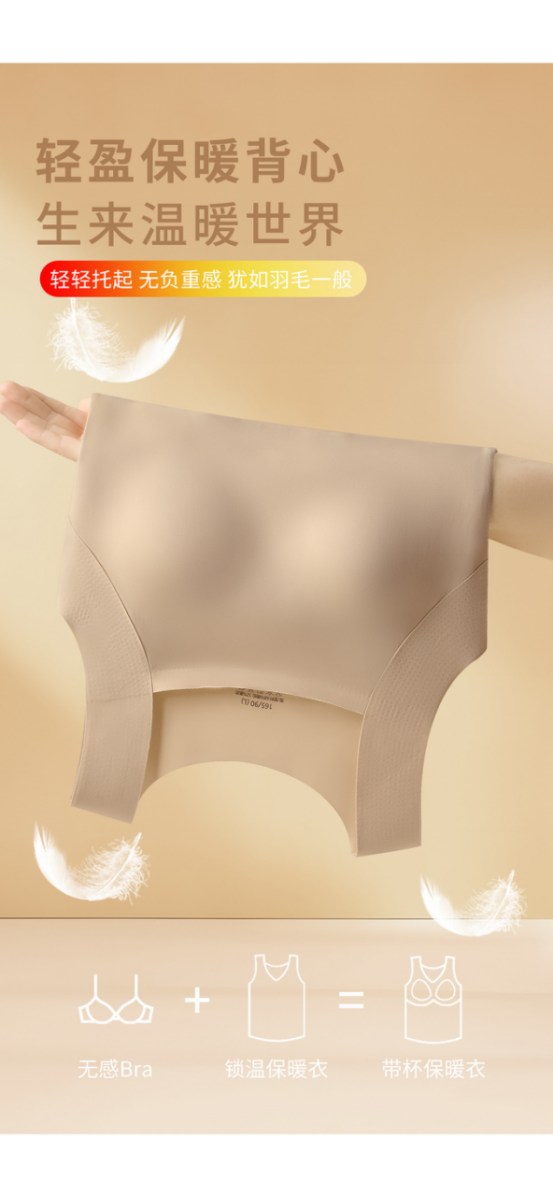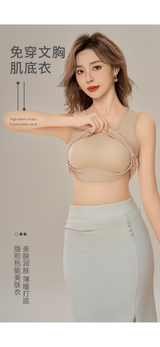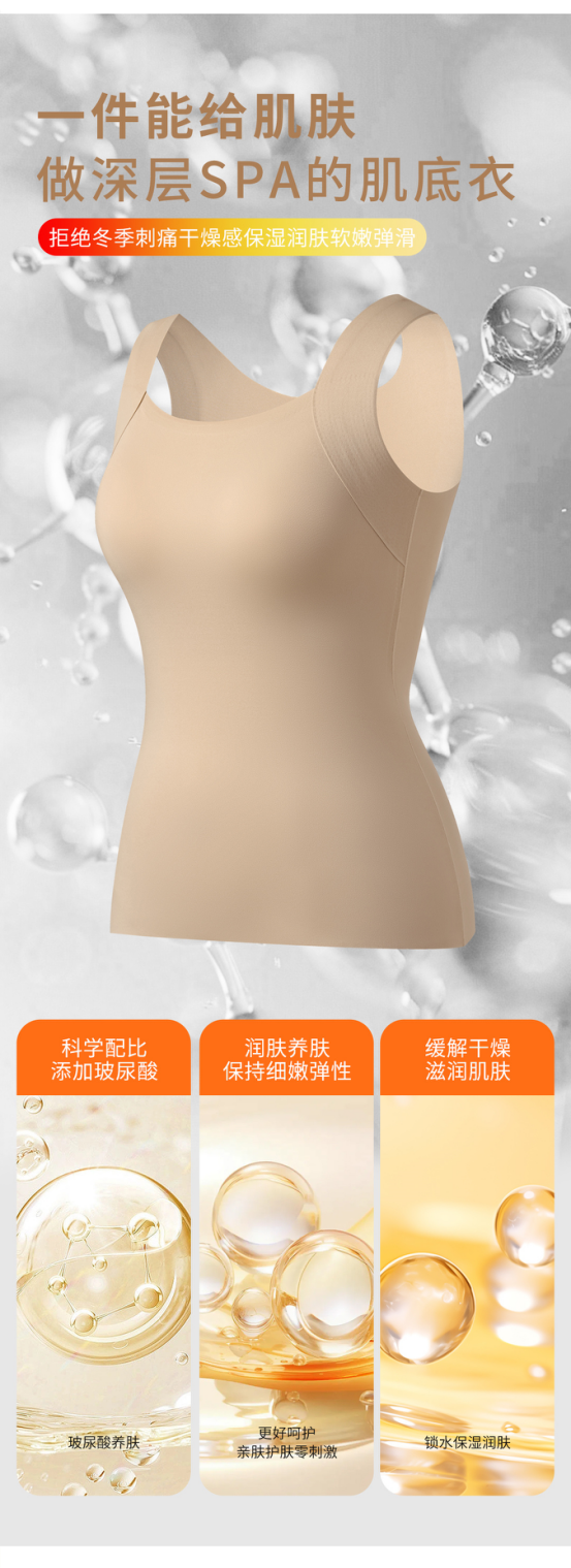 无痕亲肤 锁温美肤衣 👙文胸+保暖+背心三合一 玻尿酸の肌底衣背心 有了我,能少穿一件✨ 免穿文胸自由,适合A/B/C各种胸型 轻型保暖 给你心暖的穿着感 🌾玻尿酸肌底衣 黑科技隐形热能 能养肤润肤的玻尿酸美肤衣