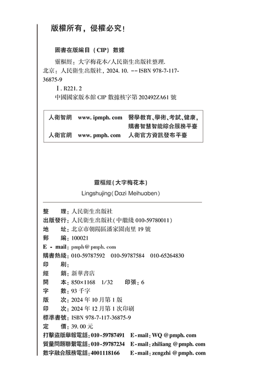 书名:靈樞經(大字梅花本)