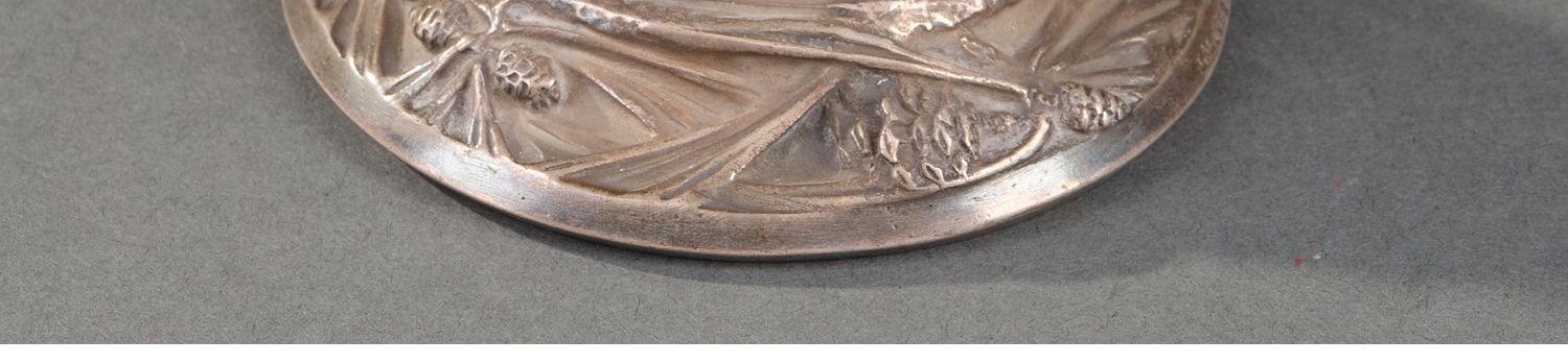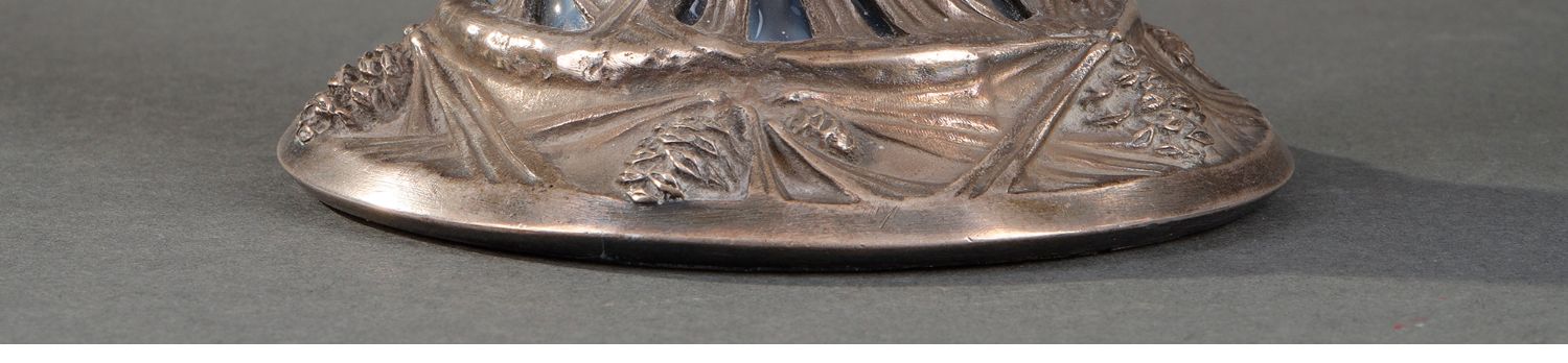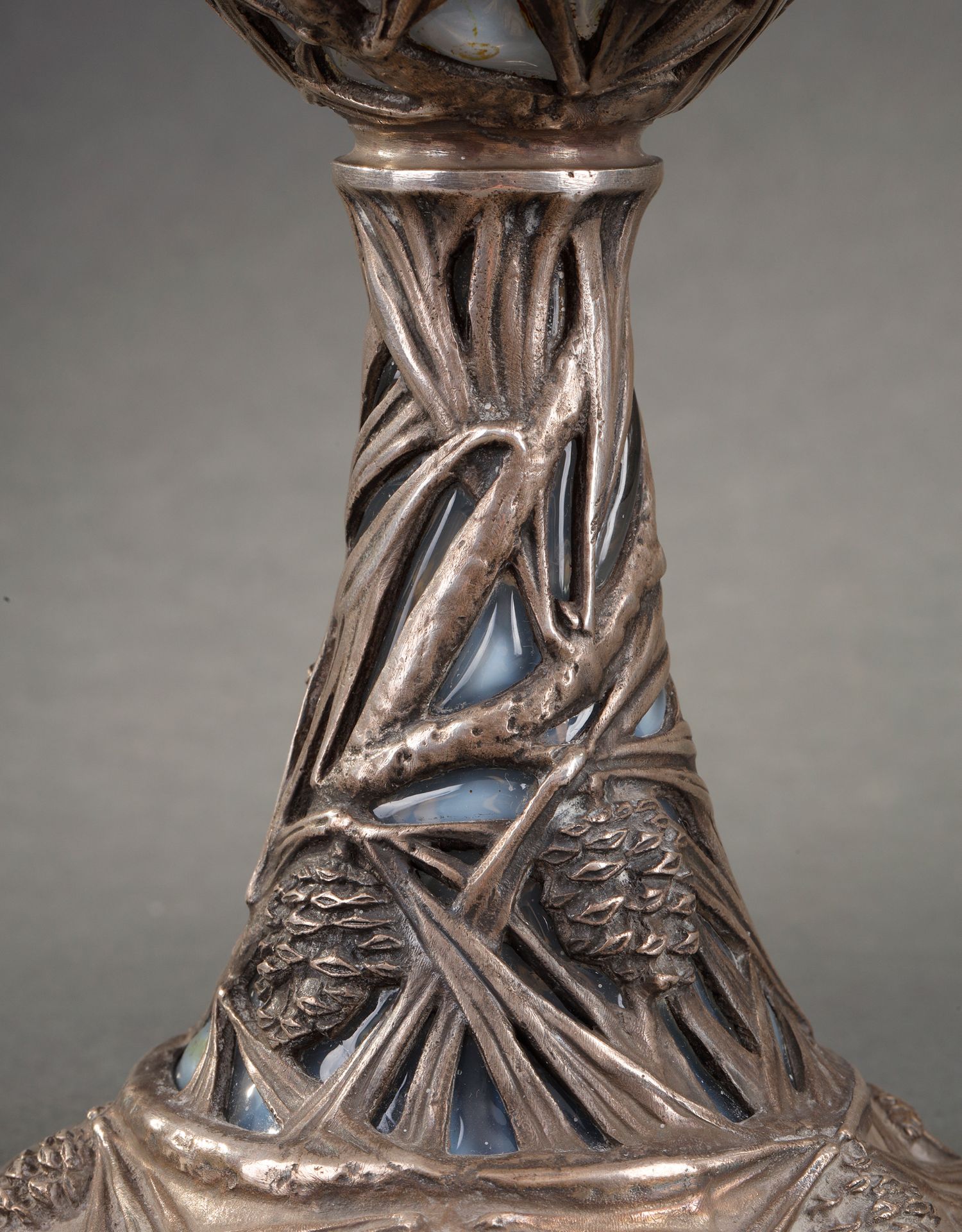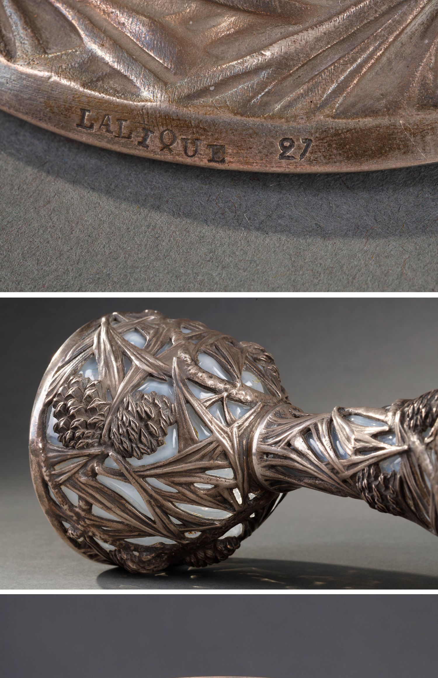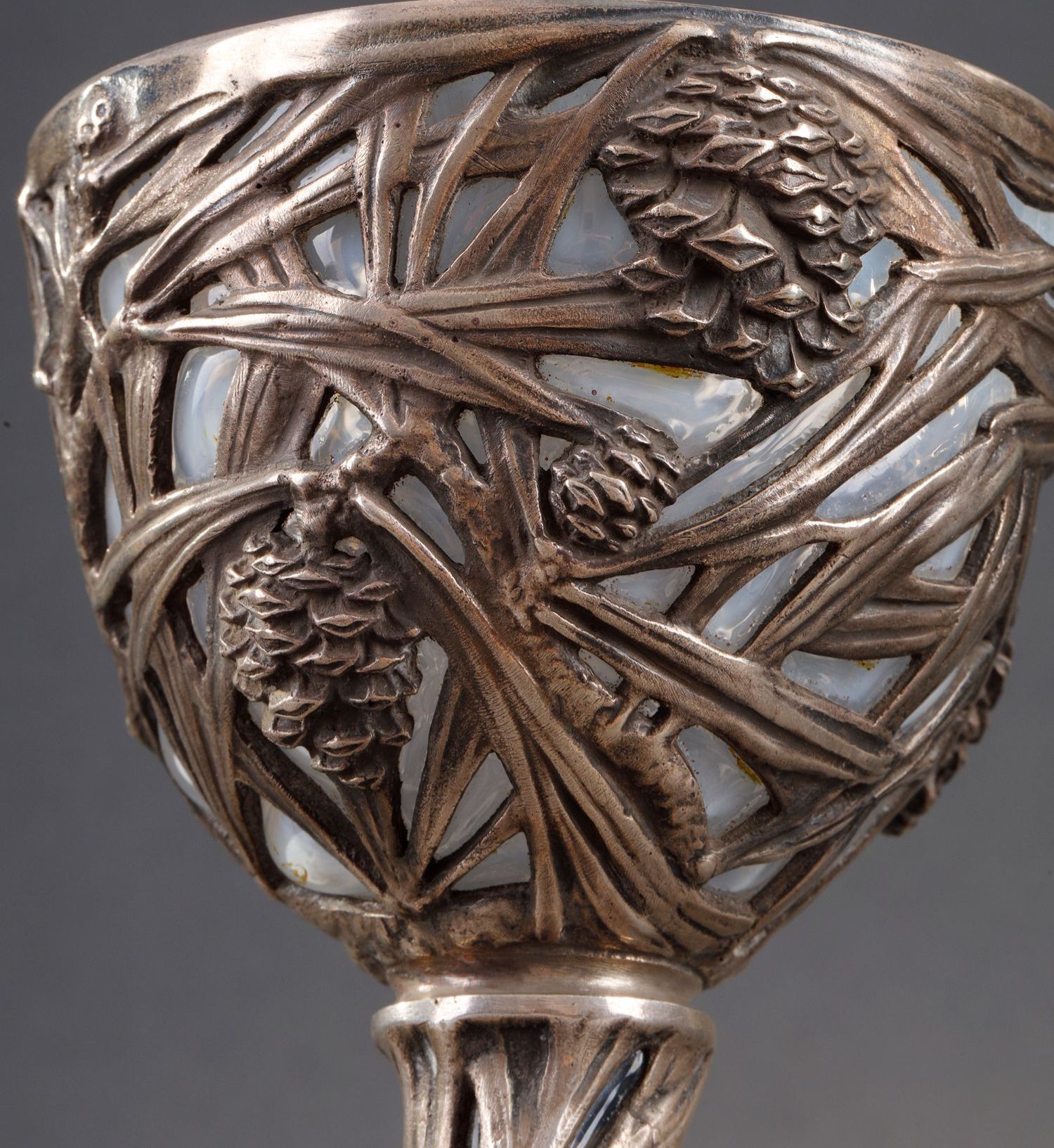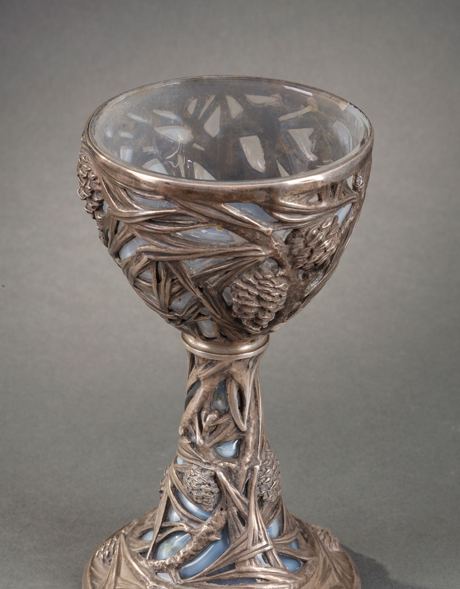 独角鹿西洋古董法国工坊莱俪LALIQUE松果款银质镂雕欧泊水晶圣杯