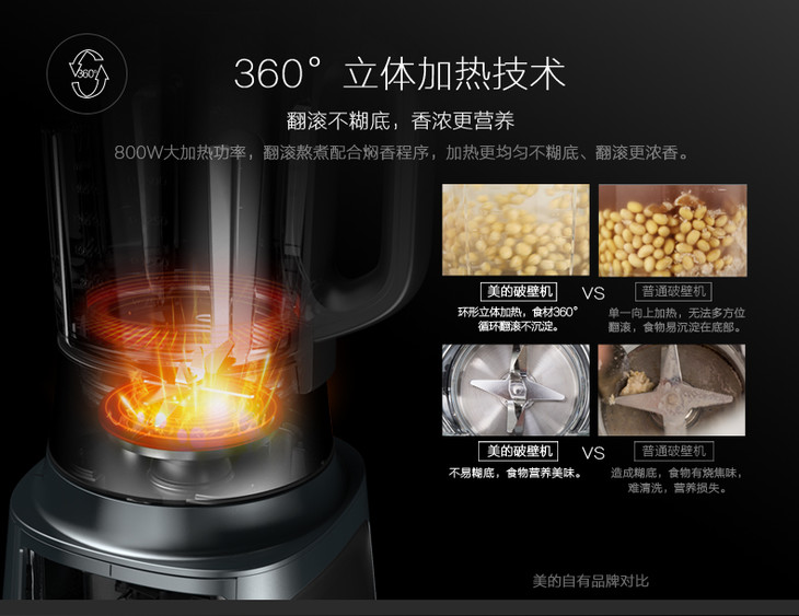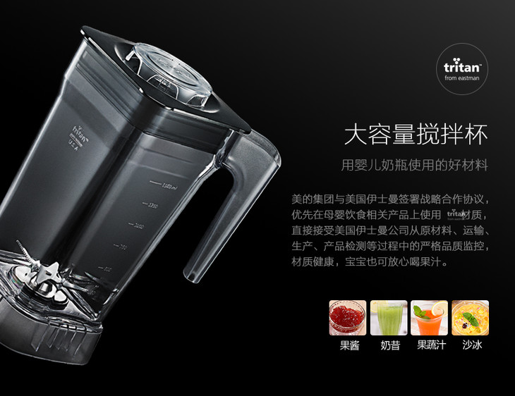 美的(507614)BL1206A 辅食破壁机 主杯容量1.75 料理功能搅拌榨汁绞肉干磨奶昔自动清洗;定时功能 3-5人
