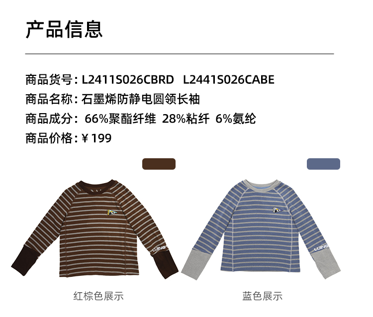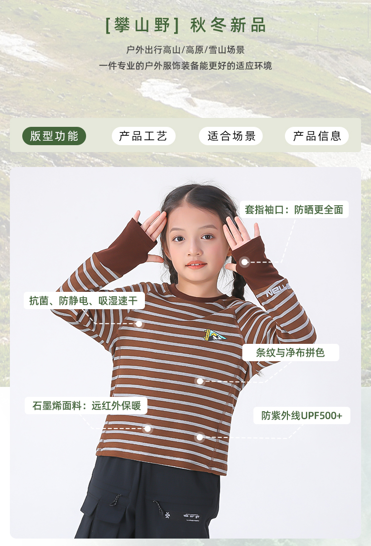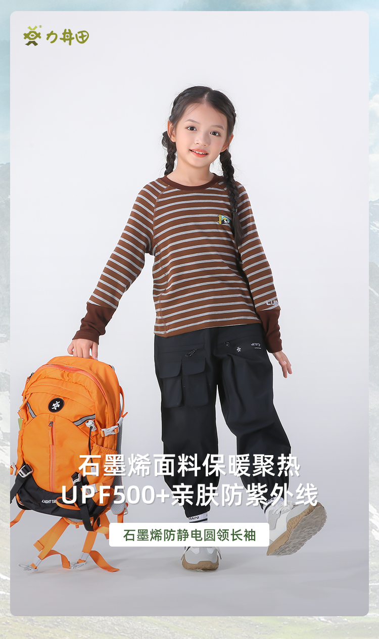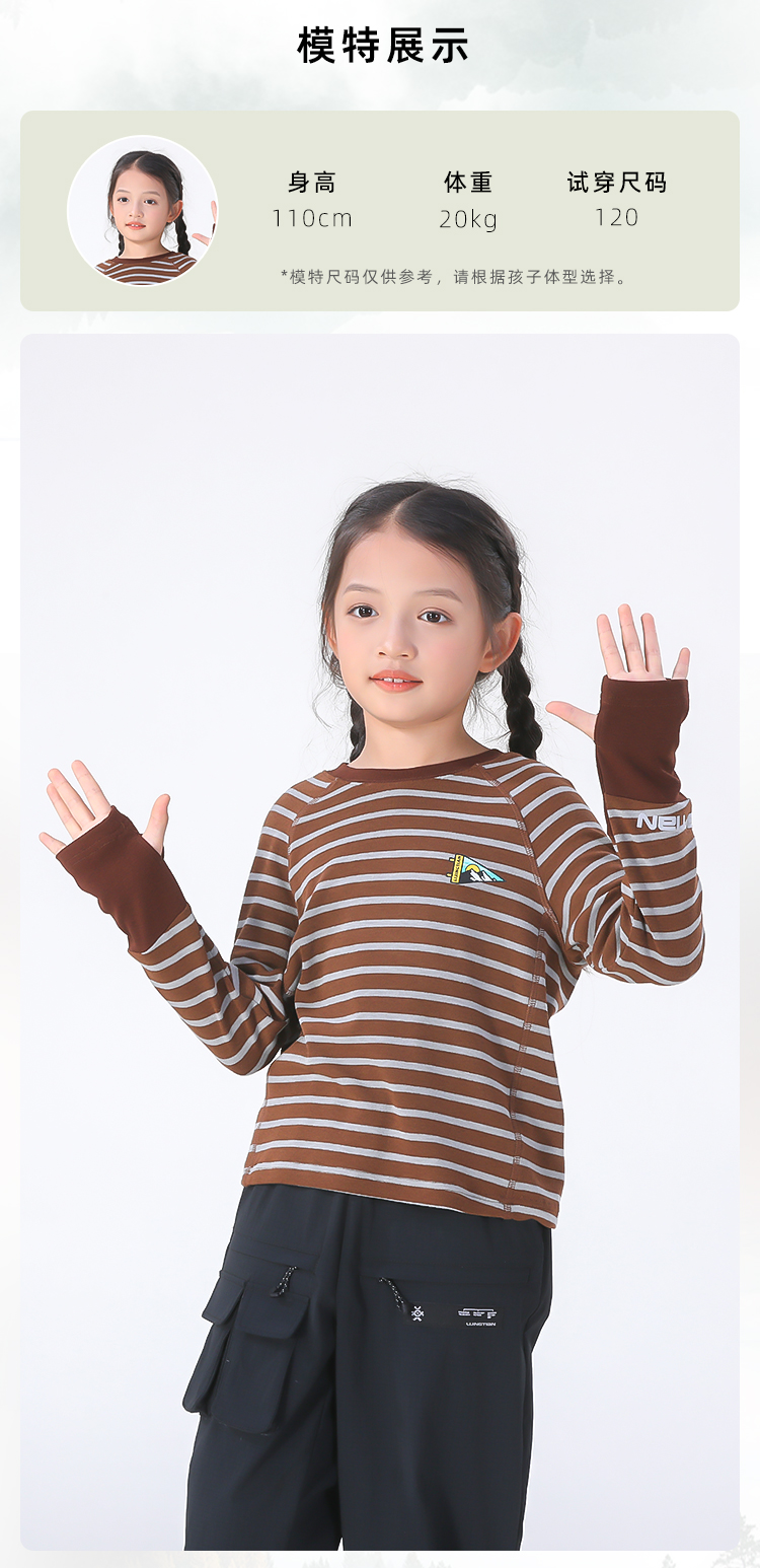 力丼田儿童户外秋冬款 长袖圆领T恤 保暖防紫外线防静电 L2441S026CABE