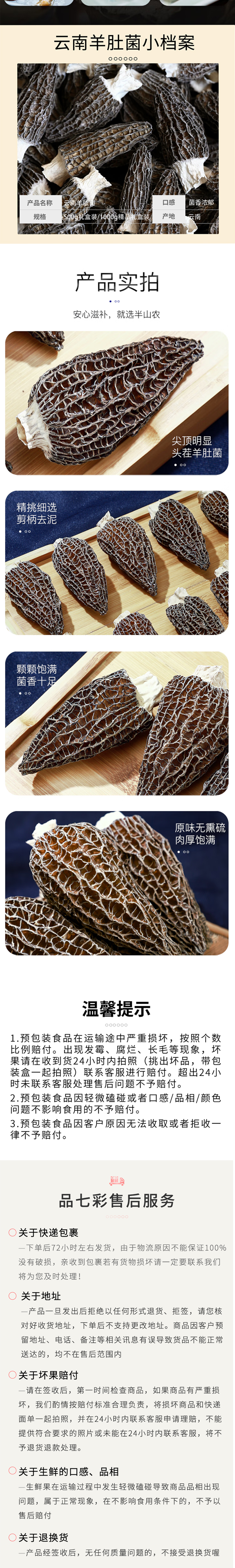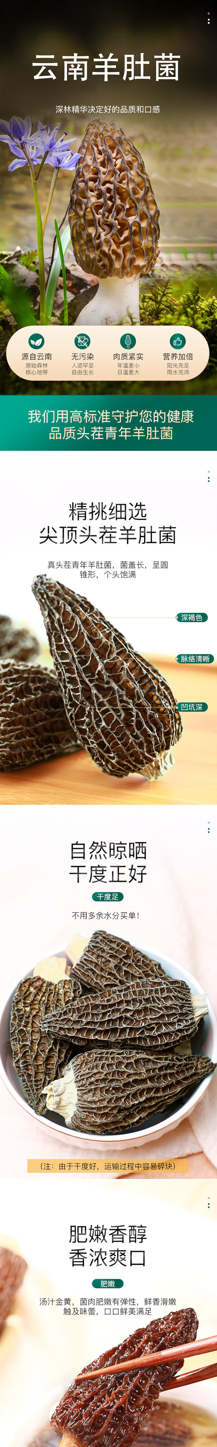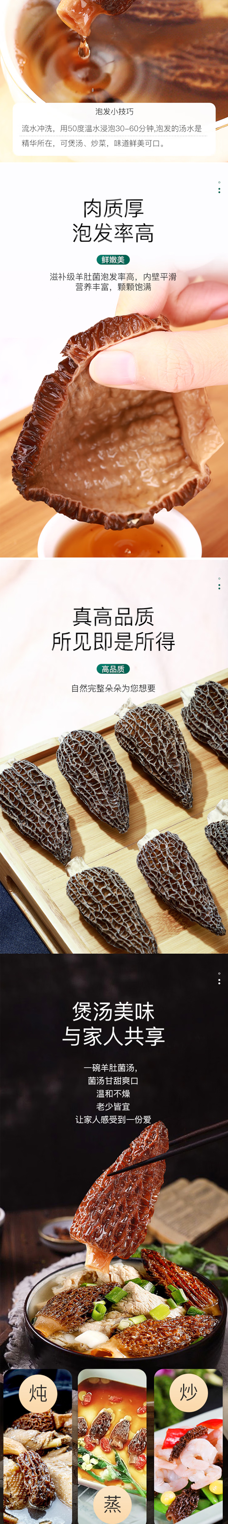 云南高原干货羊肚菌 个头大 菌帽黑 自然晾晒 人工精选 煲汤汤色纯正 菌味鲜美 老少皆宜