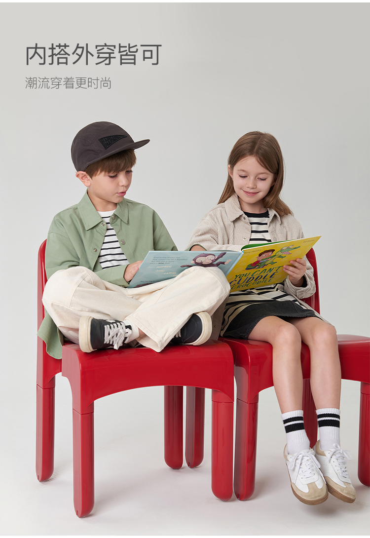 马克珍妮秋装新款 男女童趣味恐龙涂鸦纯棉休闲衬衫 231760