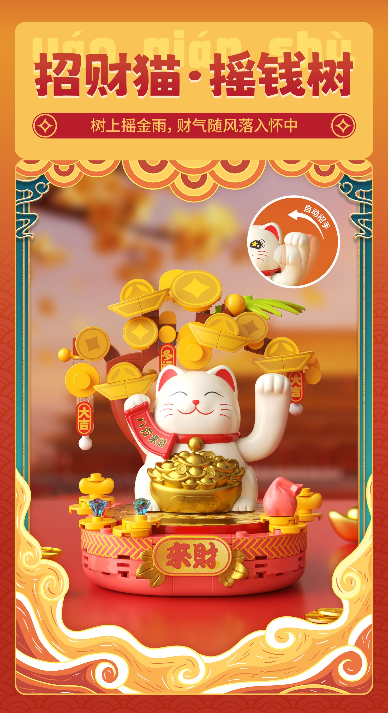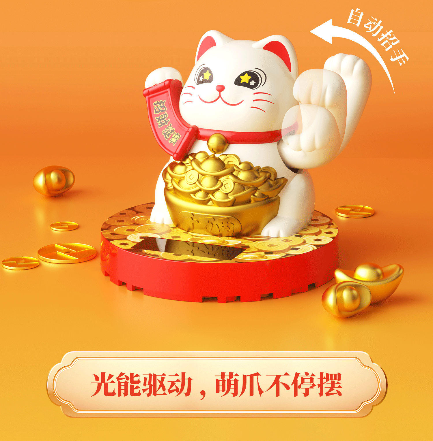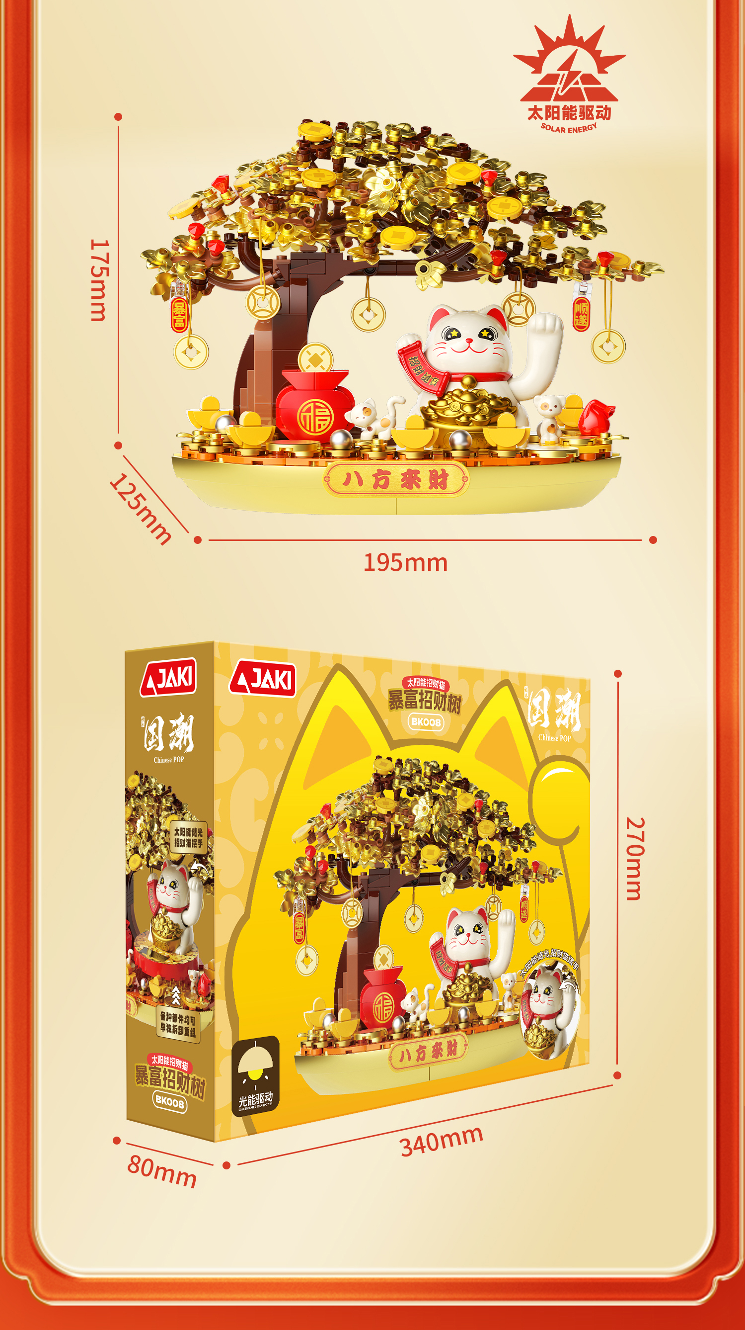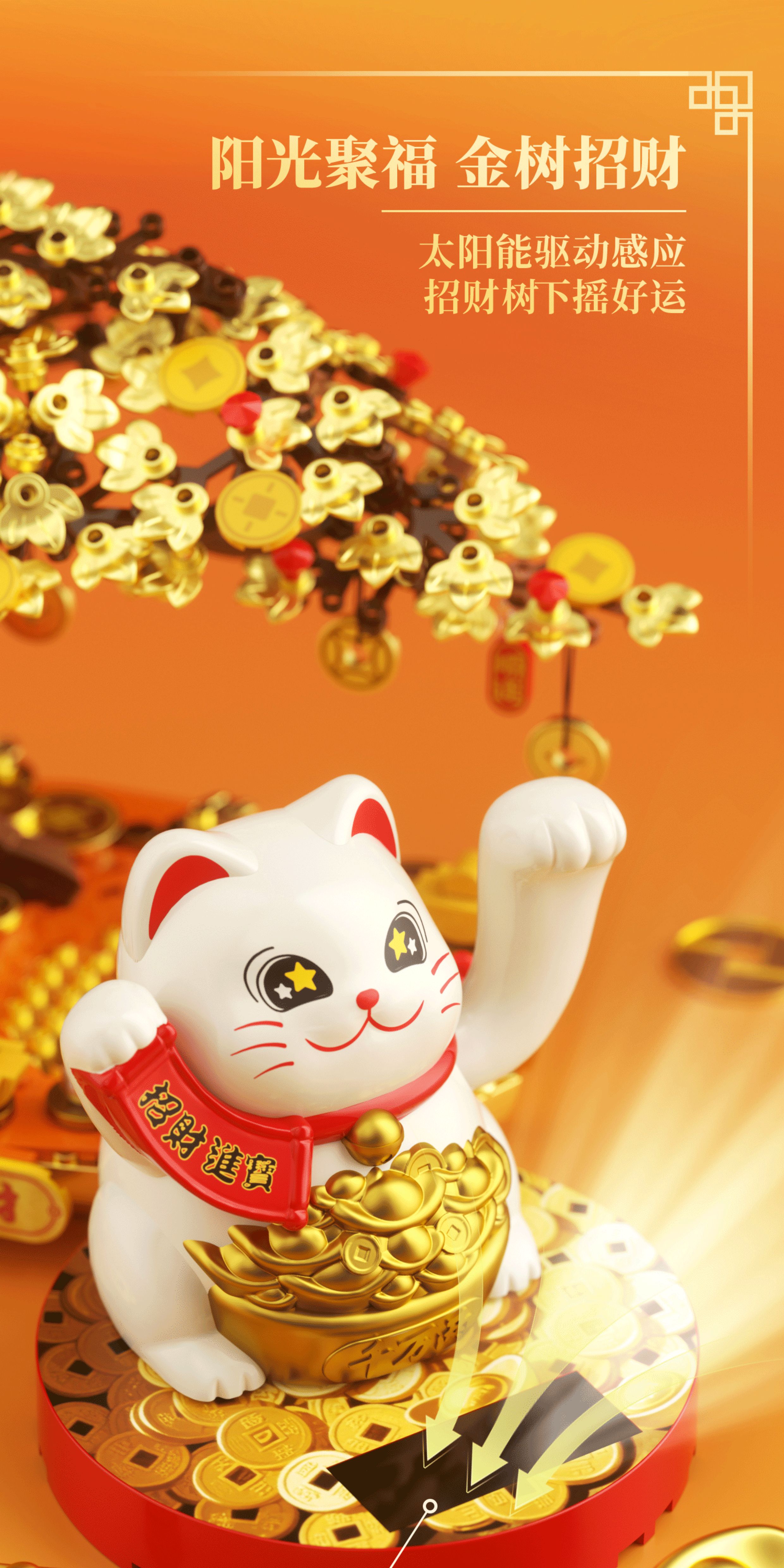 【光能驱动 金树招财】太阳能招财猫 暴富招财树 阳光聚福 八方来财 万事皆如意玩具拼搭积木 新年礼物