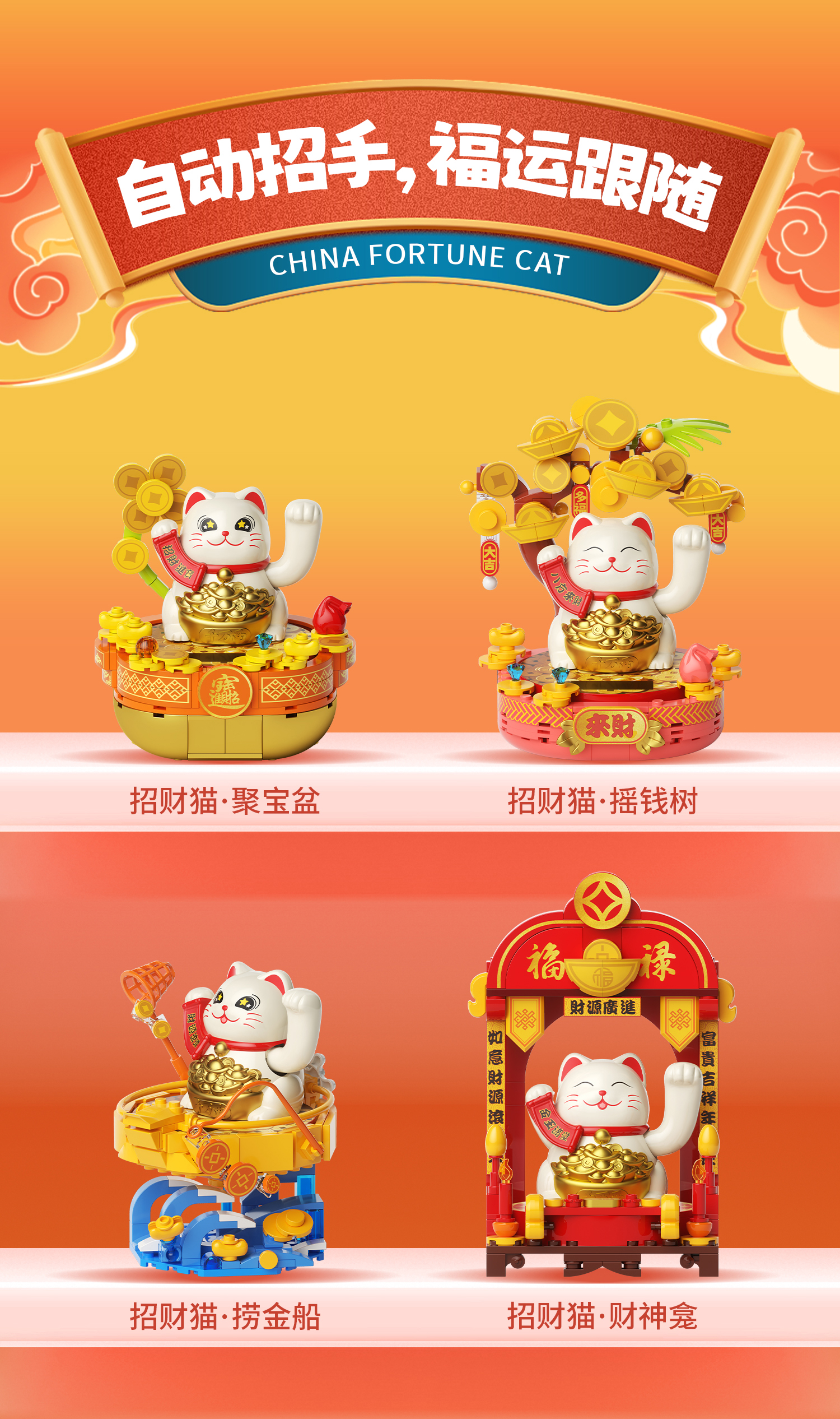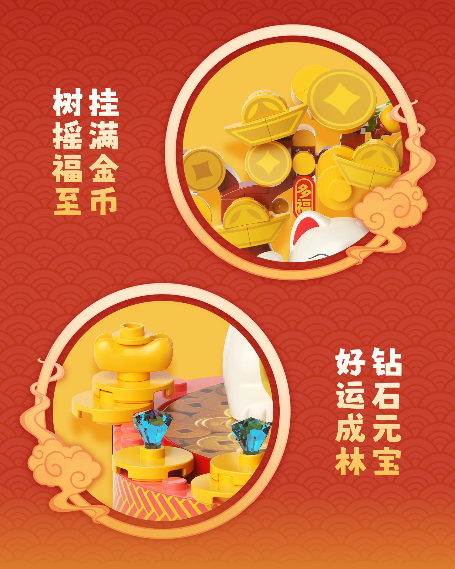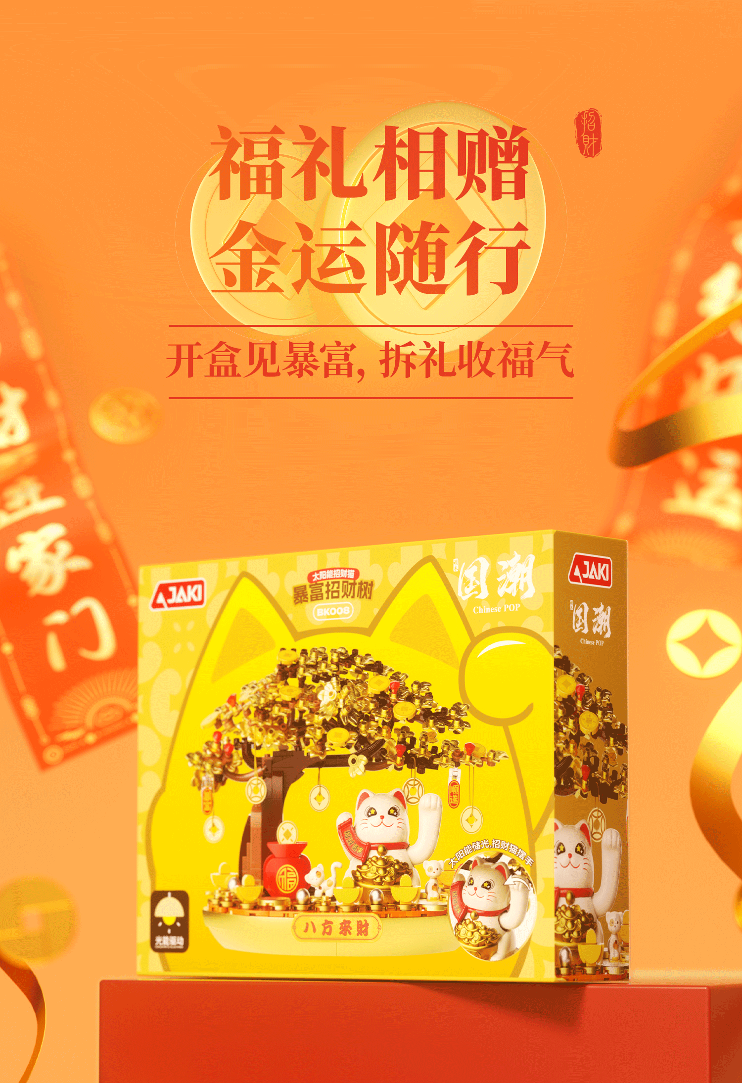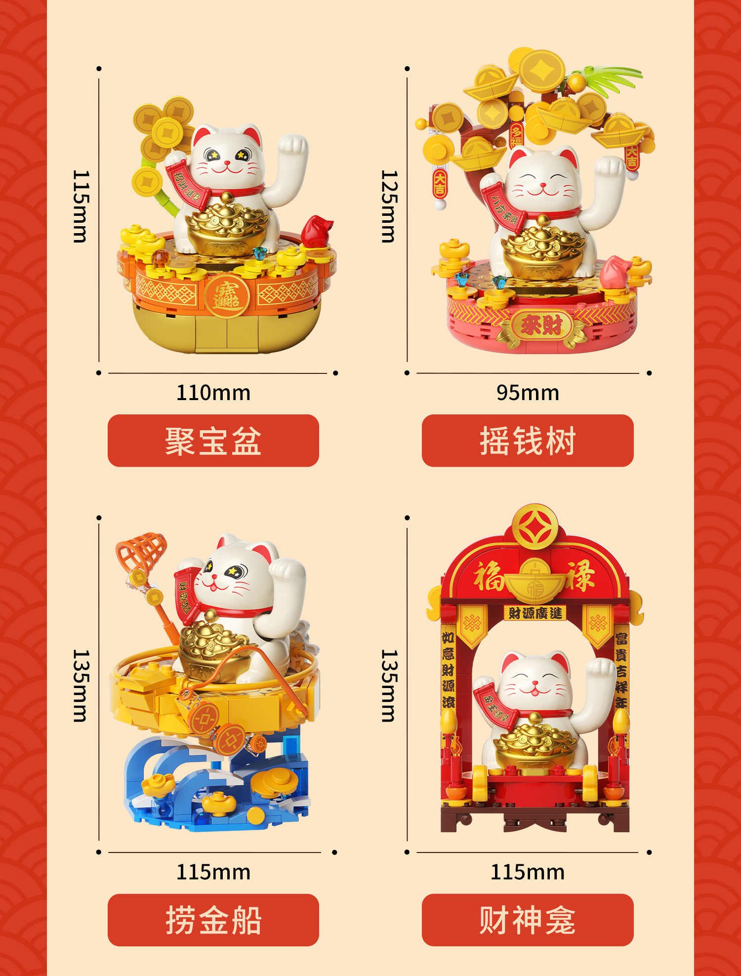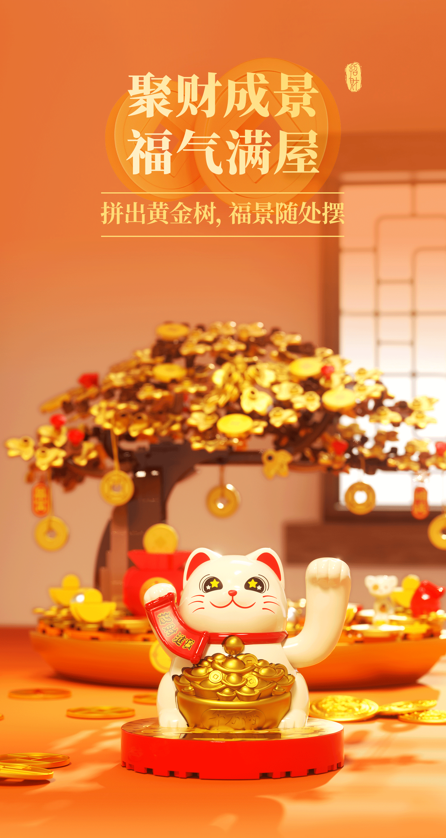 【光能驱动 金树招财】太阳能招财猫 暴富招财树 阳光聚福 八方来财 万事皆如意玩具拼搭积木 新年礼物