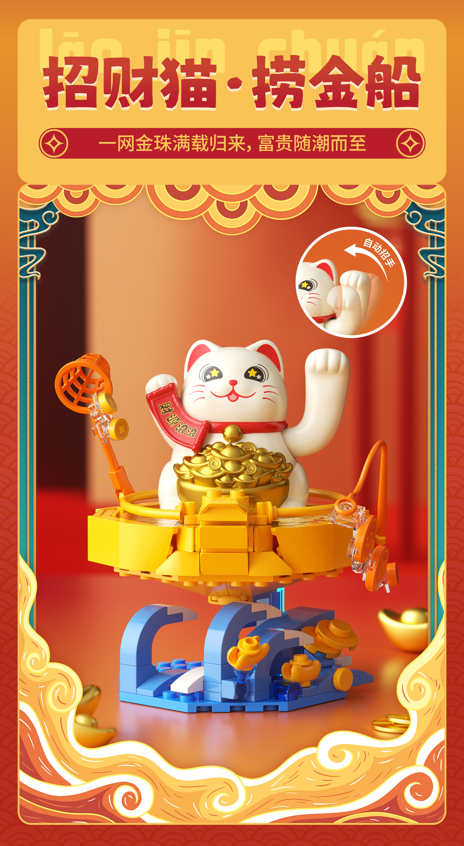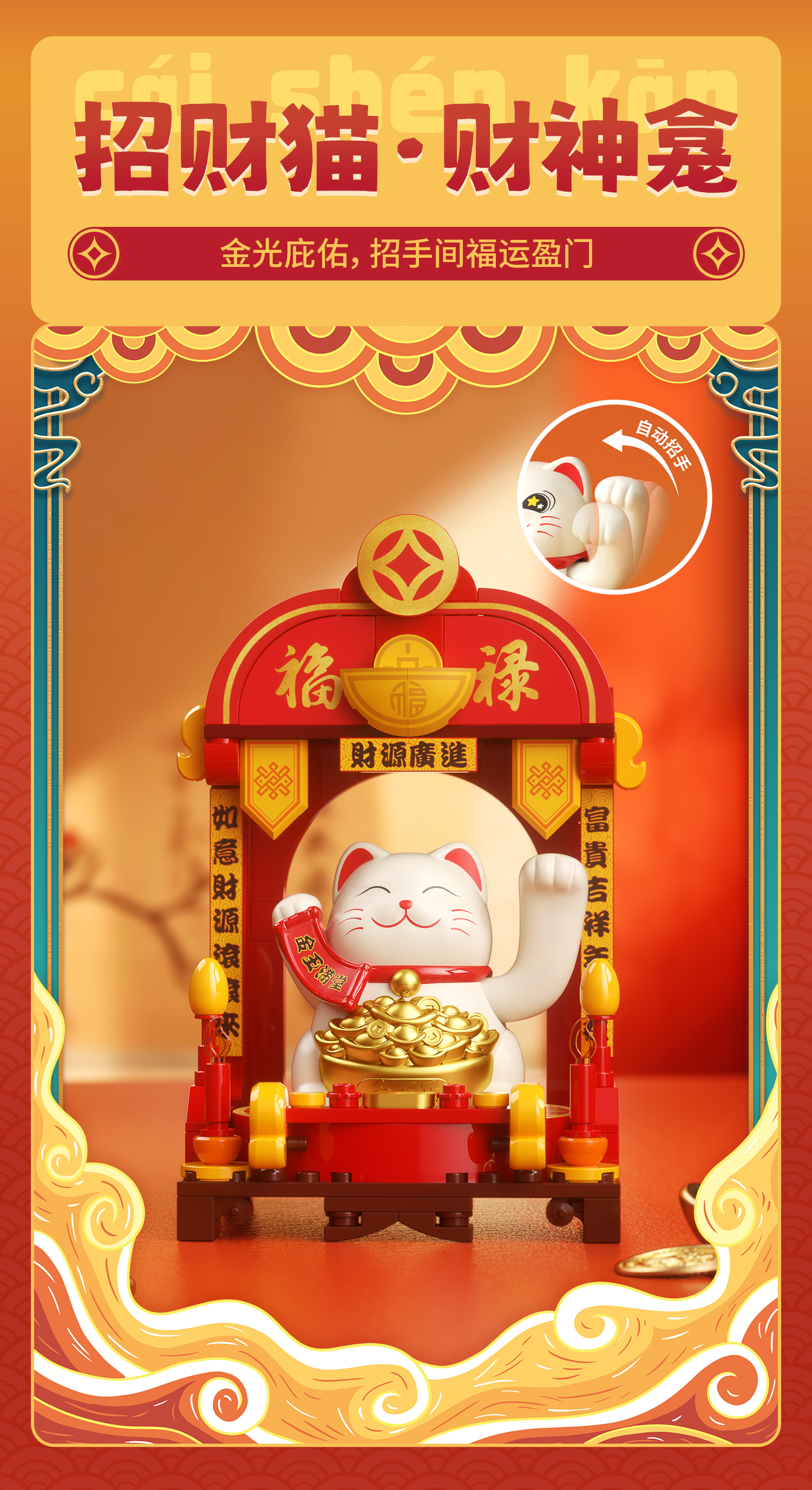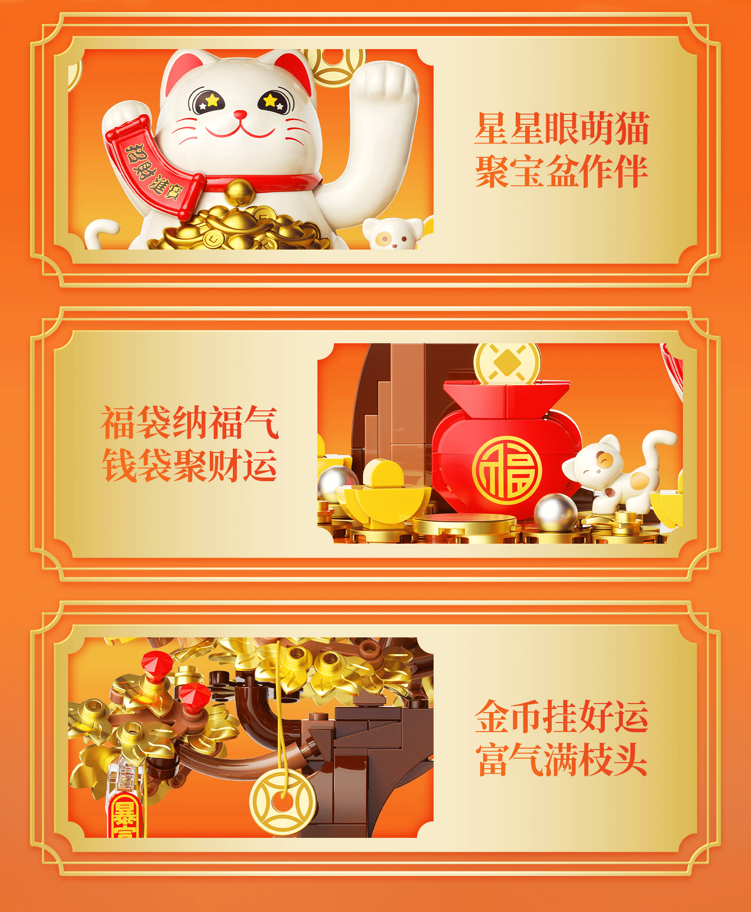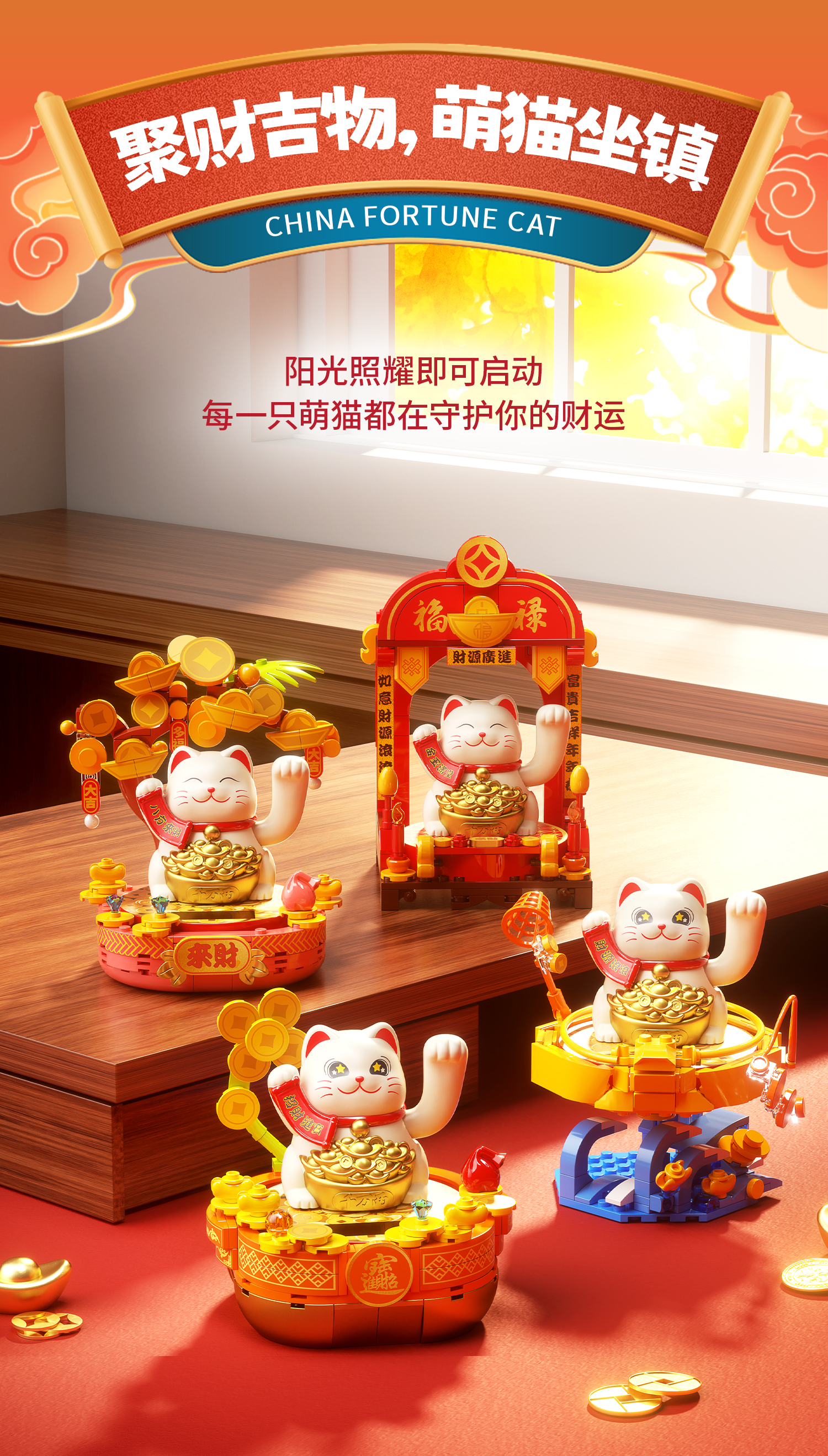 【光能驱动 金树招财】太阳能招财猫 暴富招财树 阳光聚福 八方来财 万事皆如意玩具拼搭积木 新年礼物