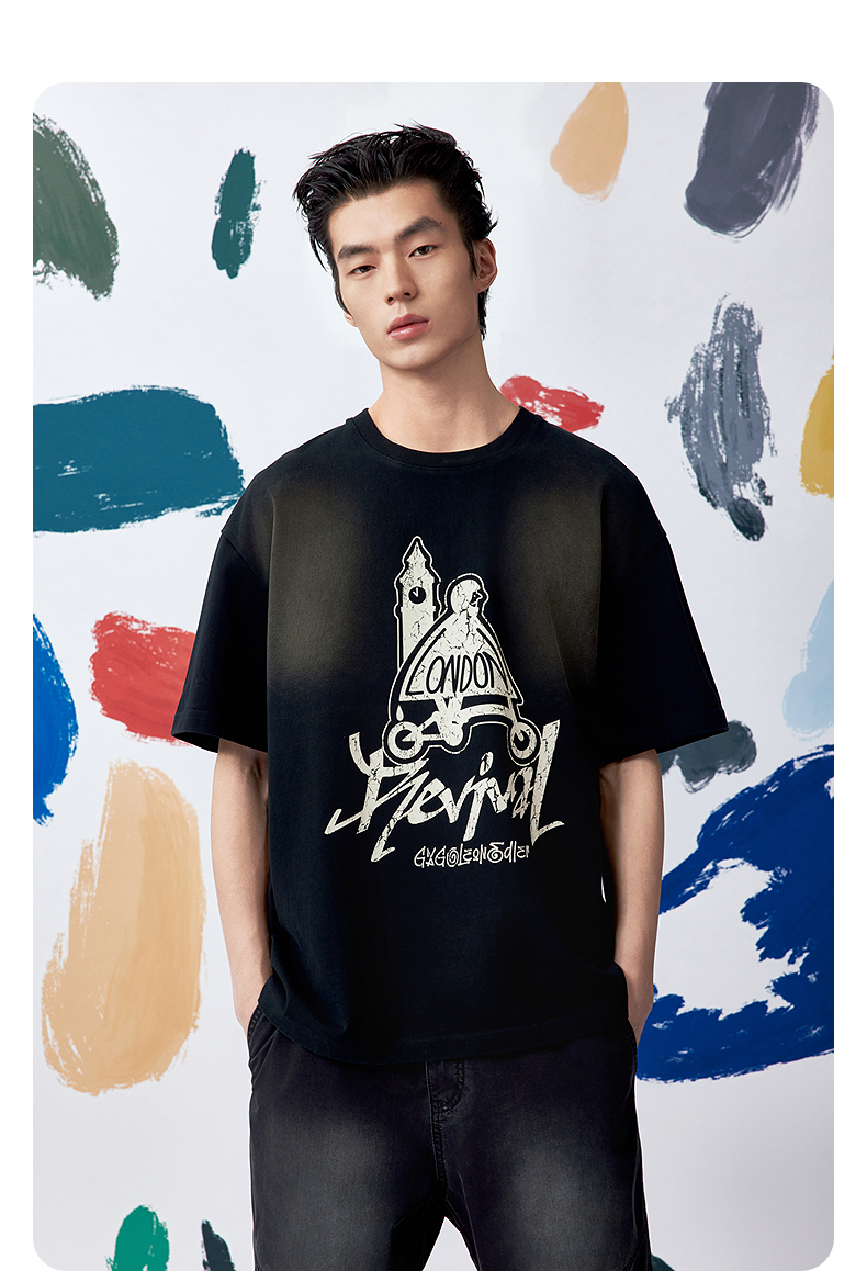 GXG男装圆领T恤大图案印花短袖针织25夏季热卖G25X442046