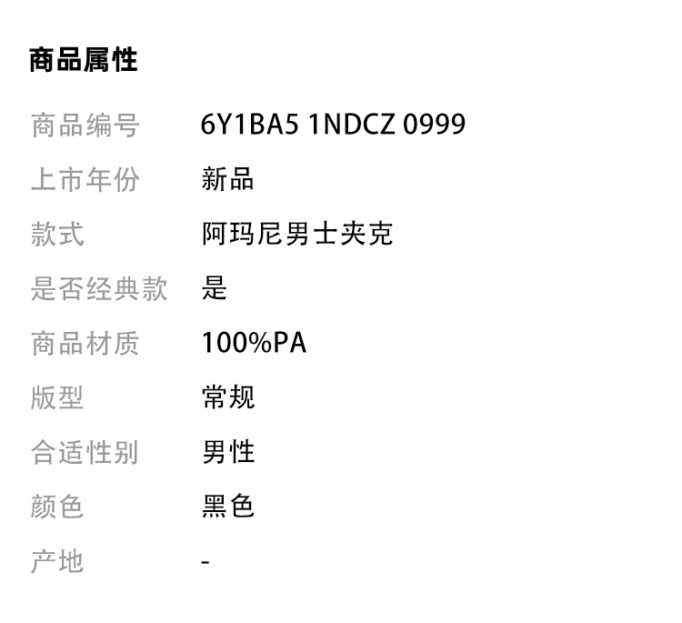 EMPORIO ARMANI 阿玛尼 男士羽绒服 黑色 6Y1BA5 1NDCZ 0999