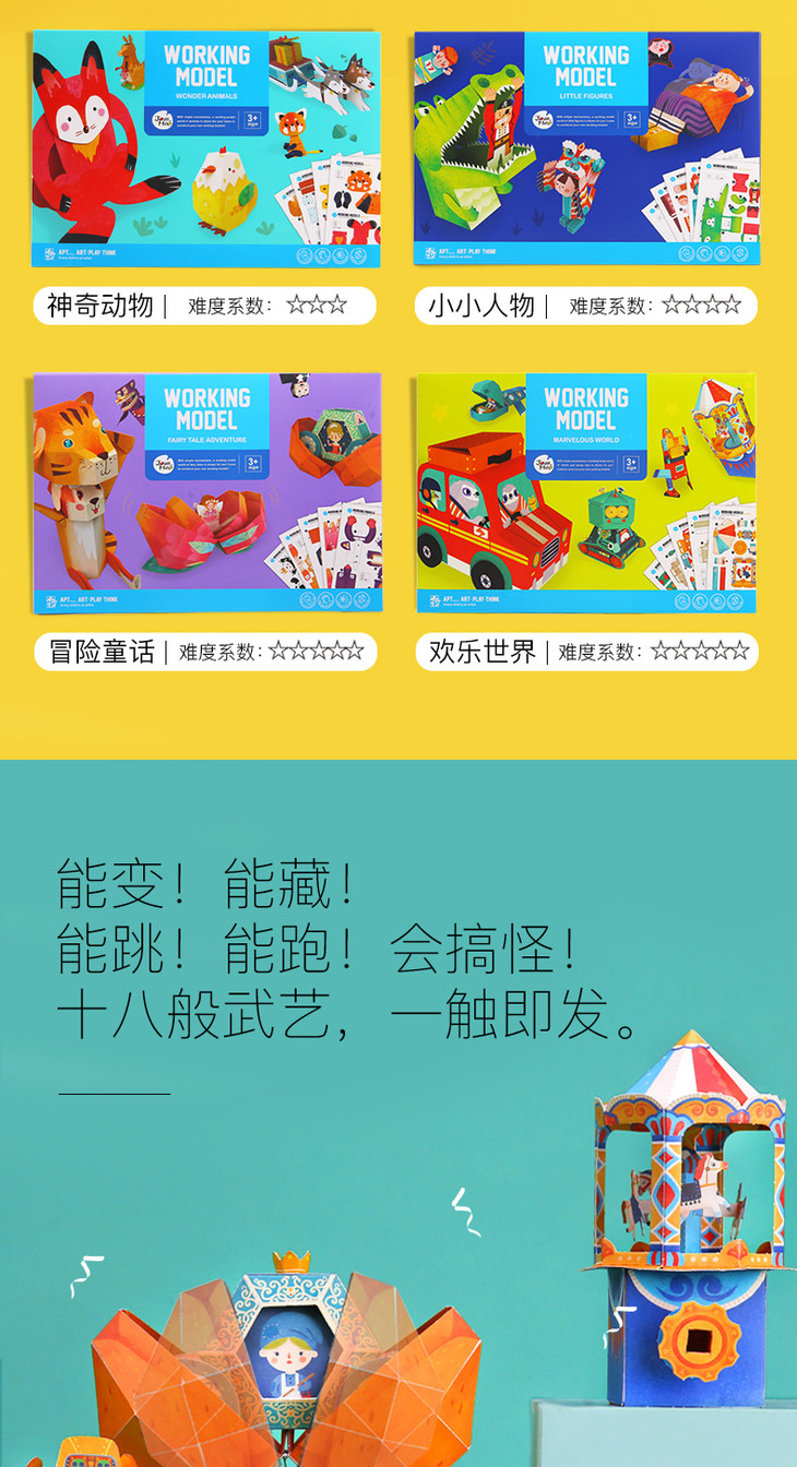 【纸模“动画片”欢乐上演】儿童手工制作折纸书玩具 幼儿园DIY会动的立体机关剪纸材料
