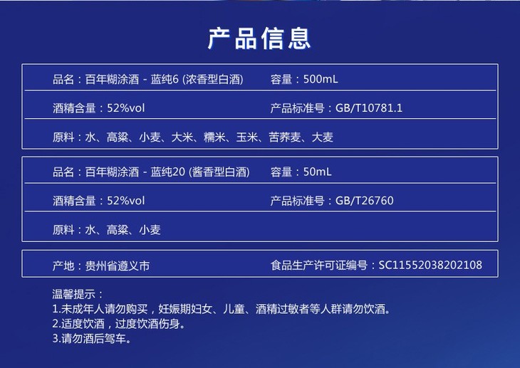 百年糊涂高档礼盒蓝纯620浓香型白酒52度500ml/1瓶/2瓶