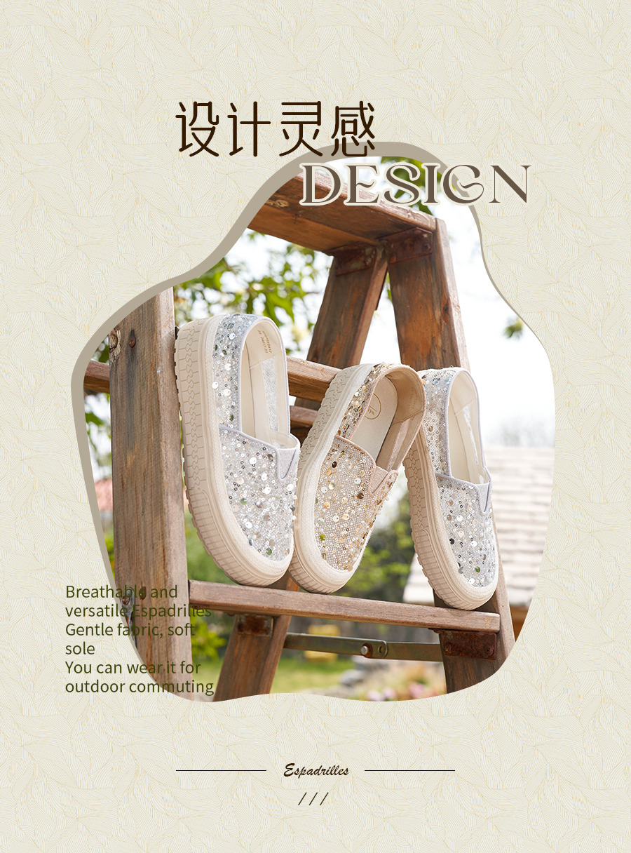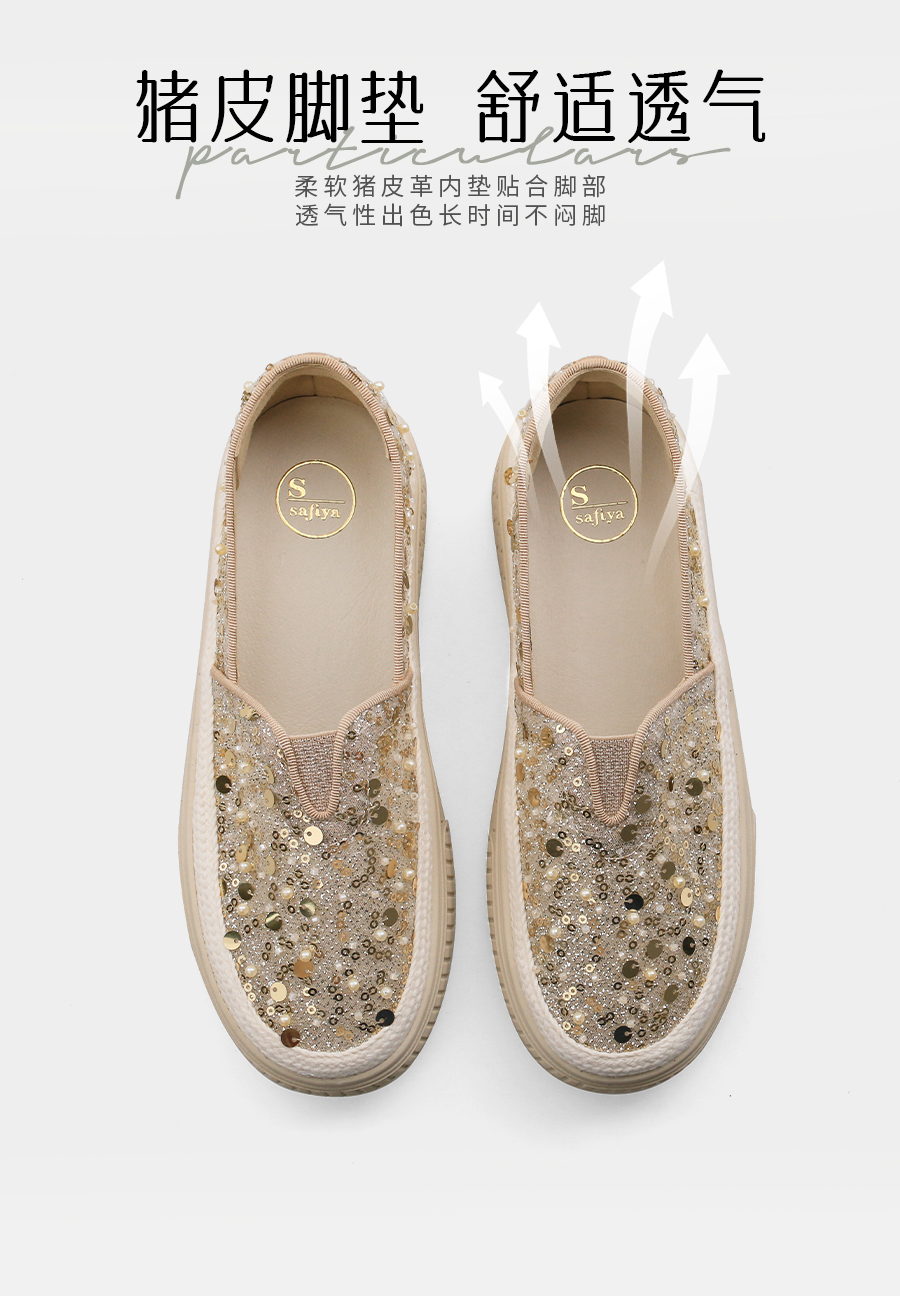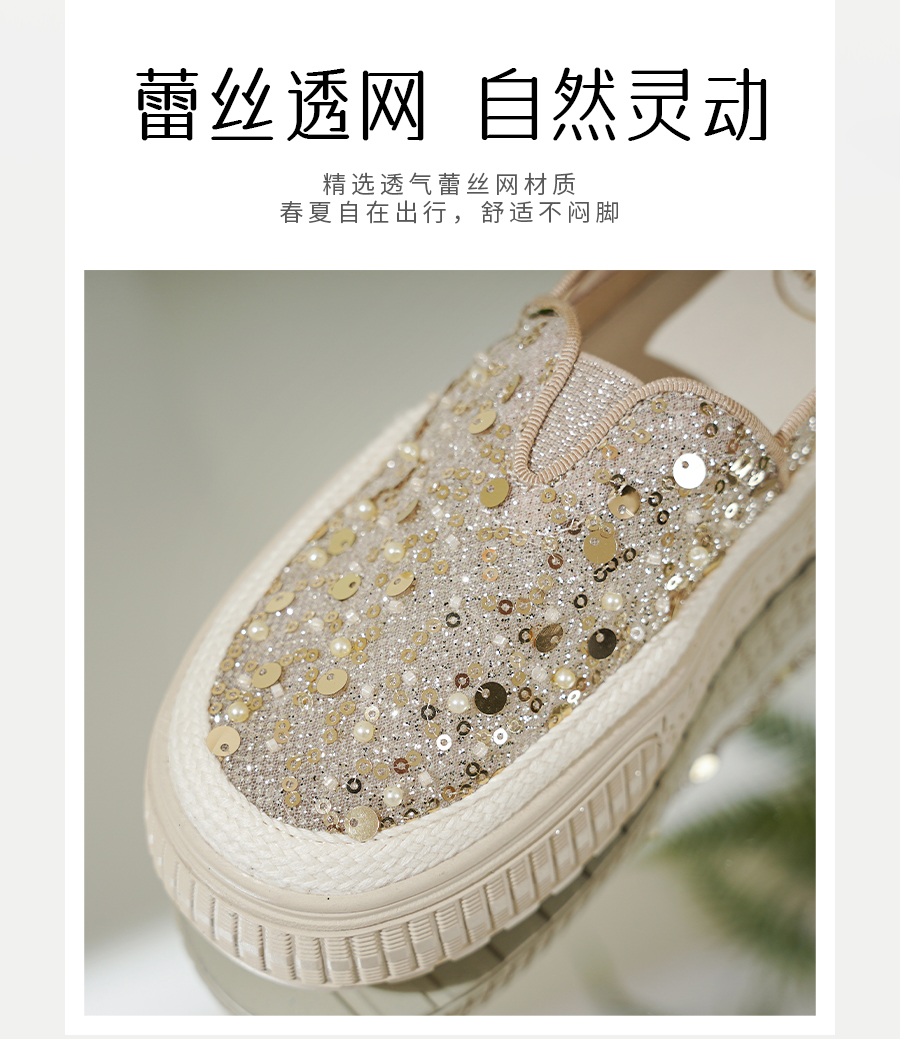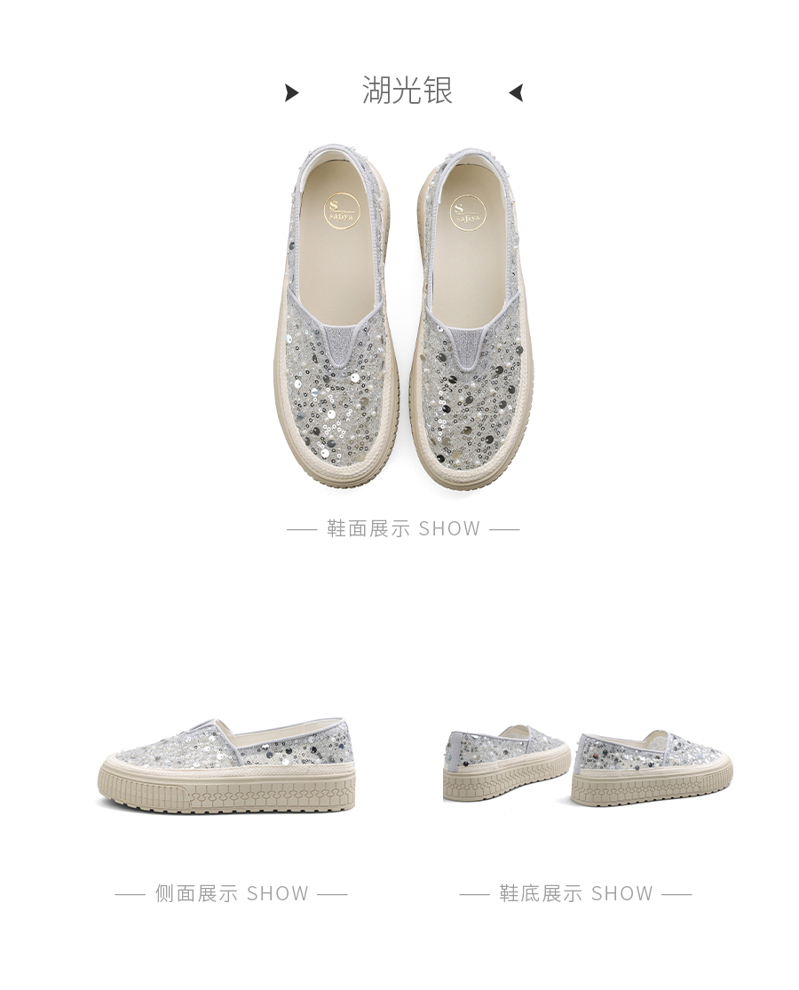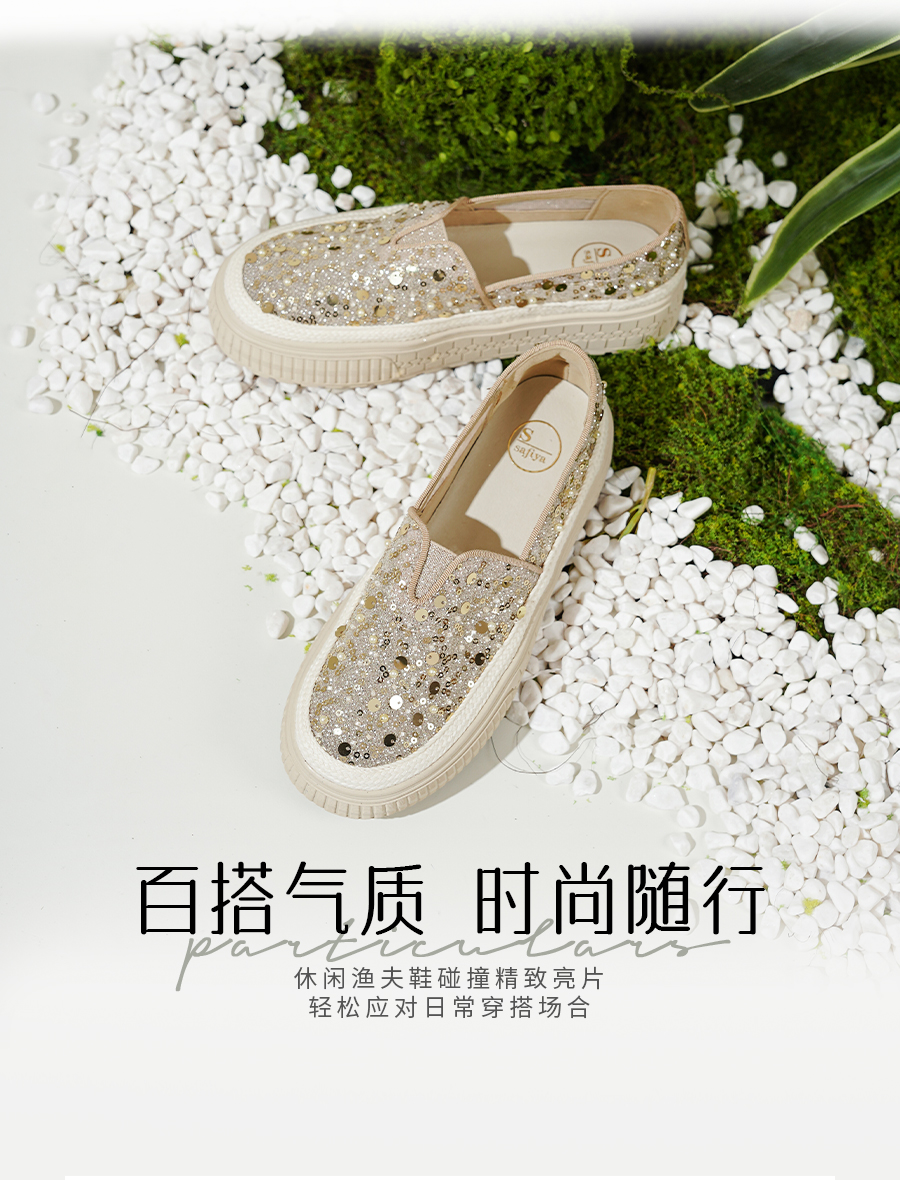 【爆款】Safiya/索菲娅2025春夏百搭懒人编织透气蕾丝亮片渔夫鞋 SFD1112412