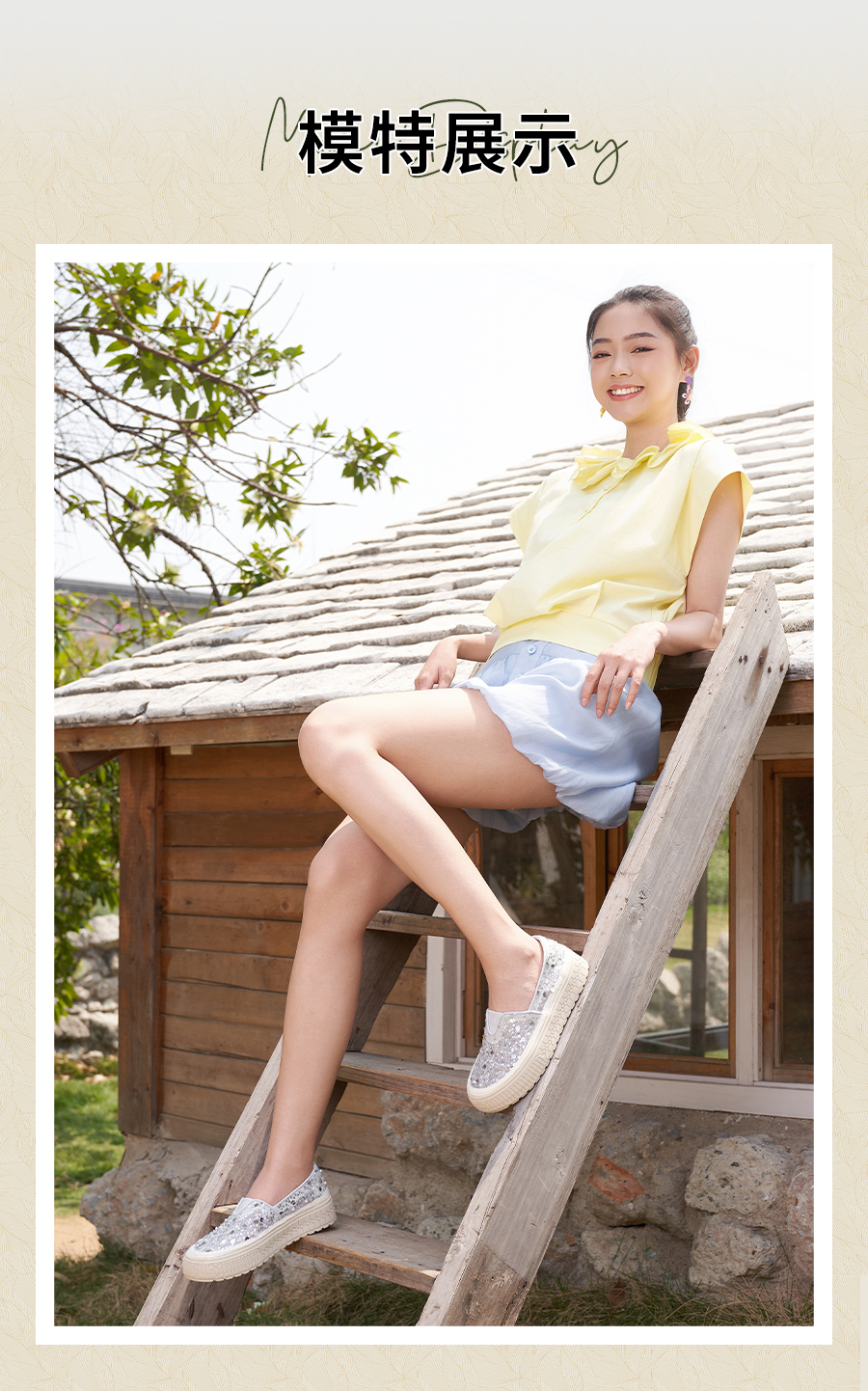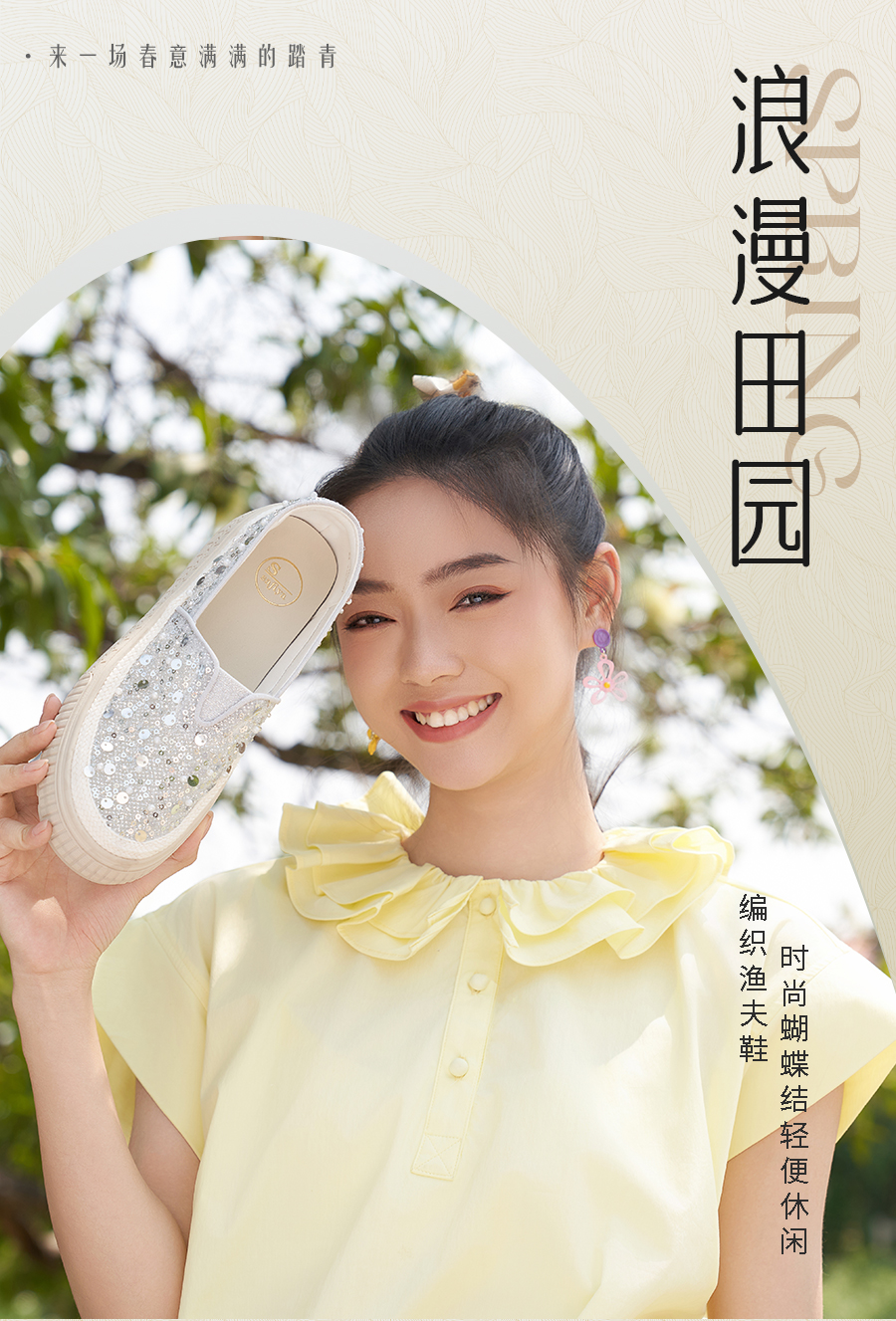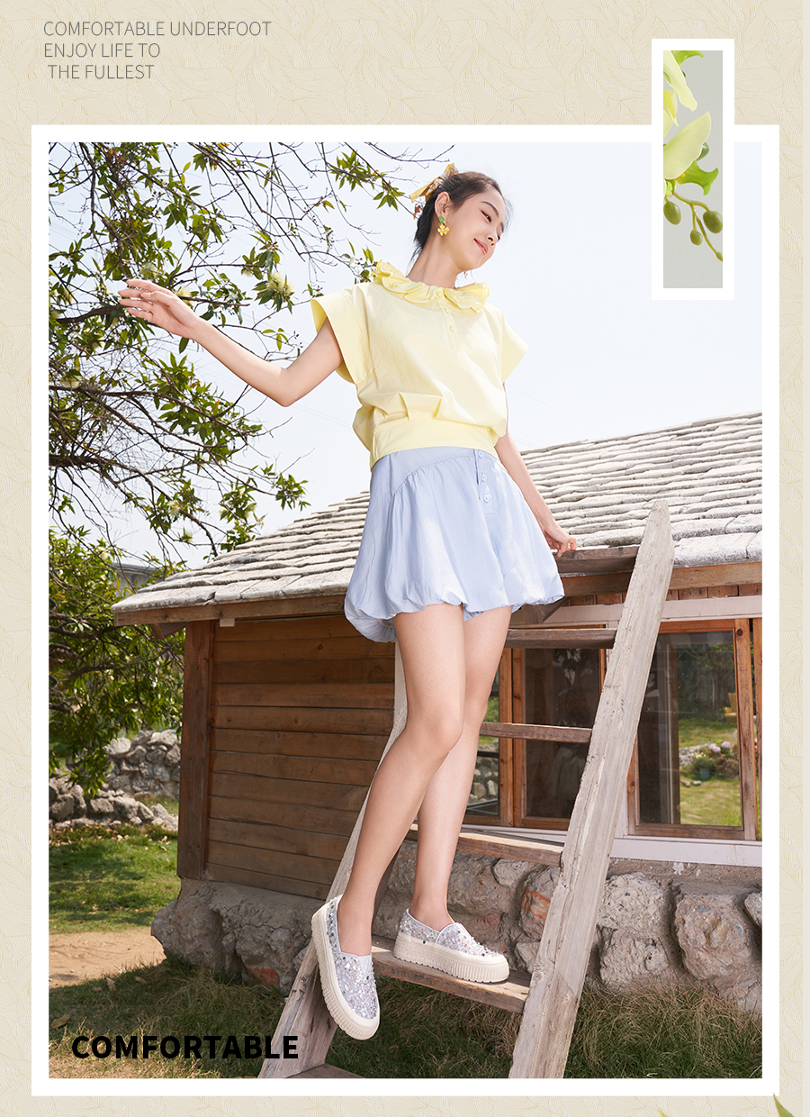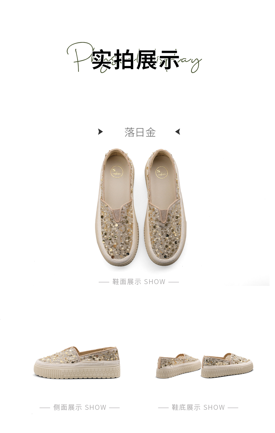 【爆款】Safiya/索菲娅2025春夏百搭懒人编织透气蕾丝亮片渔夫鞋 SFD1112412