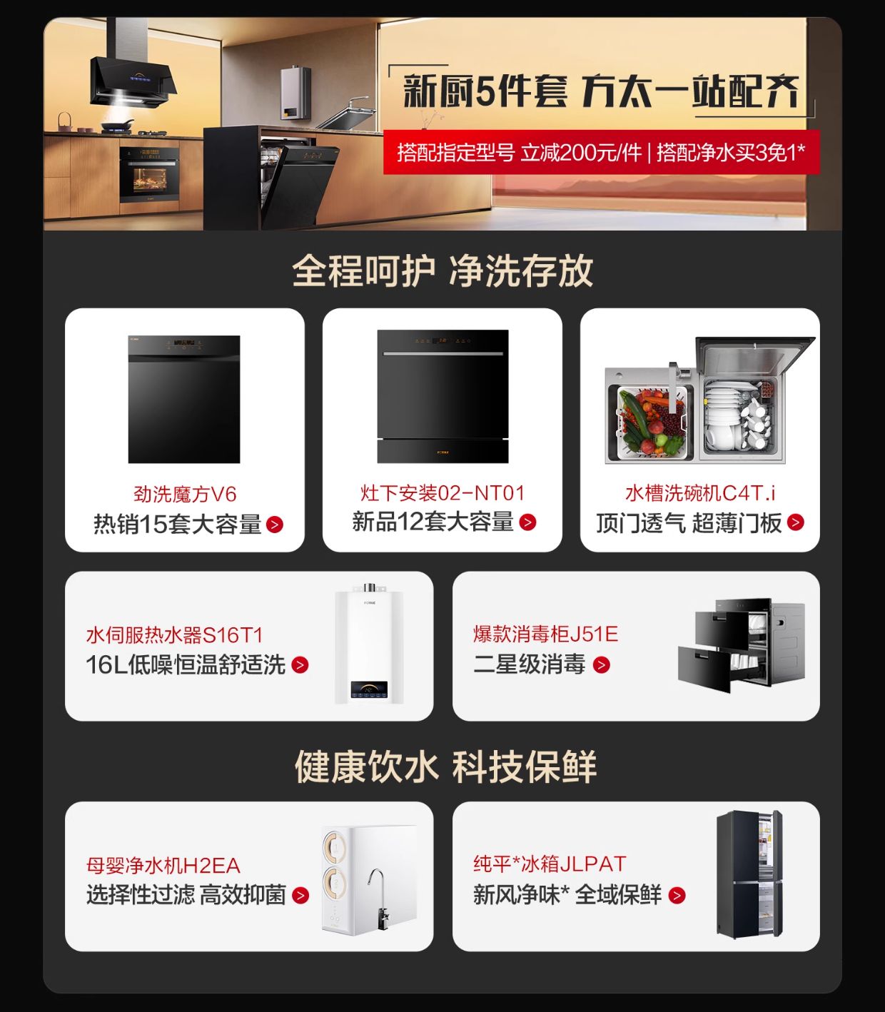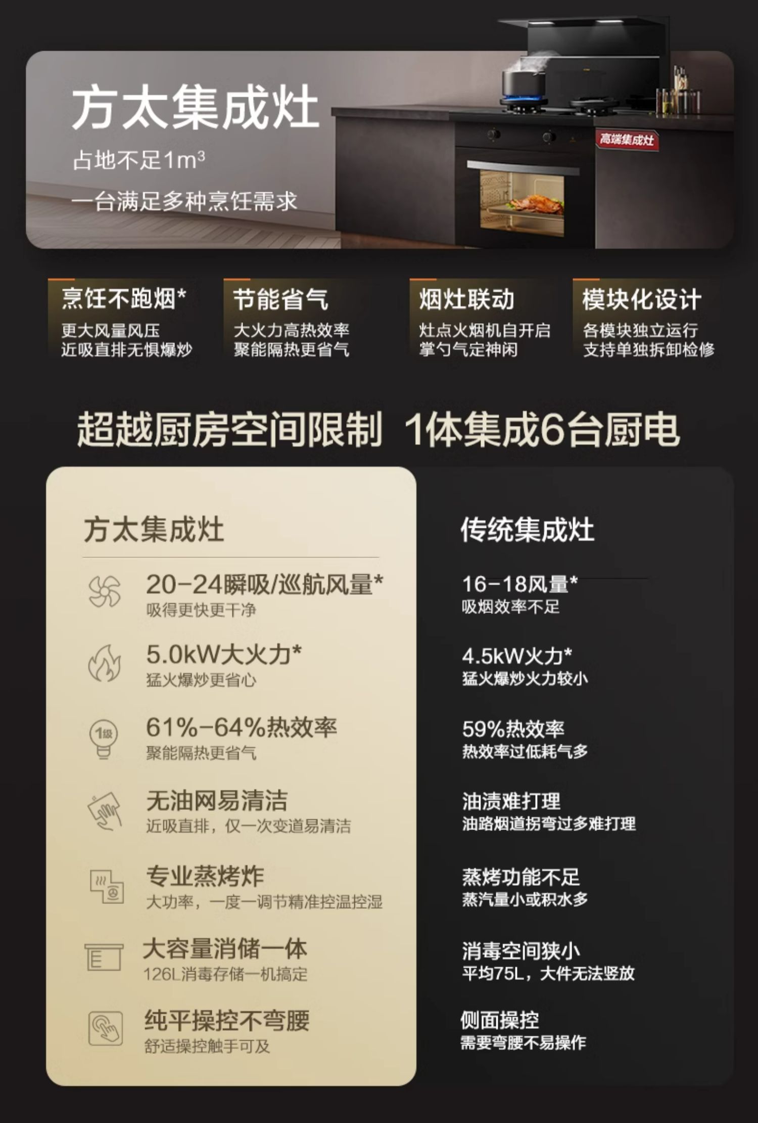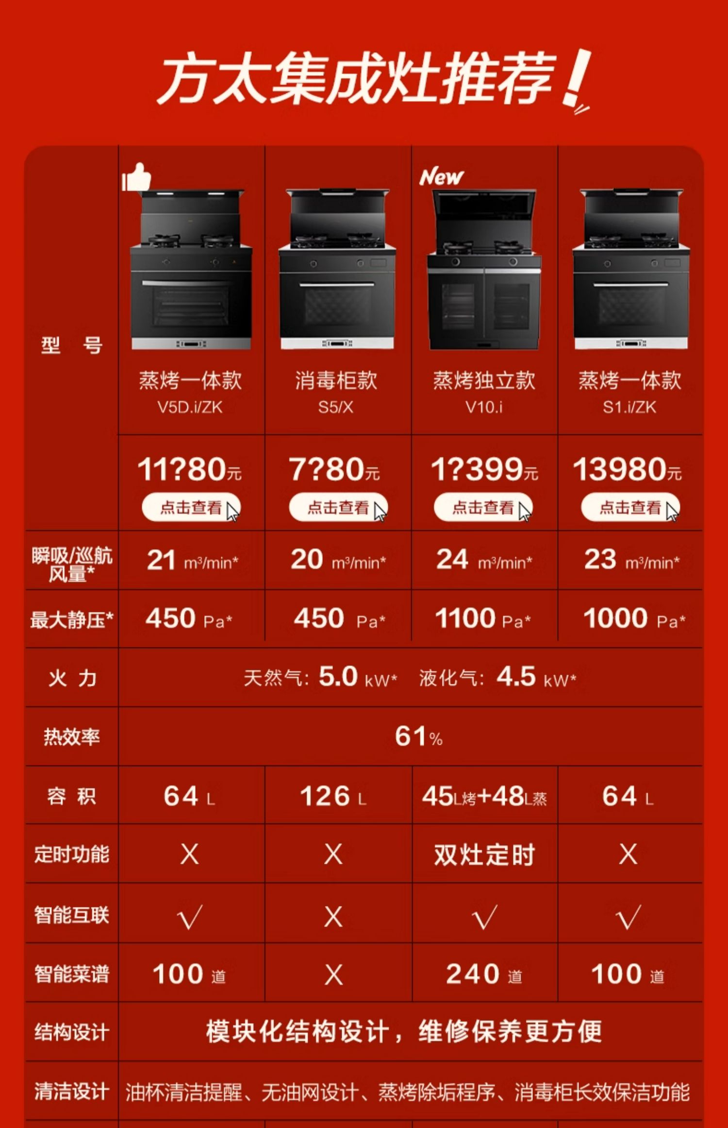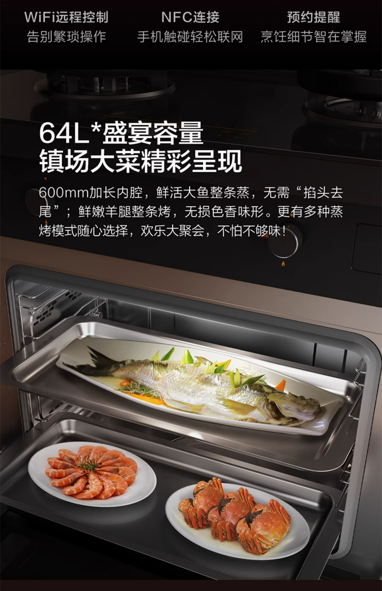 【新品】方太集成灶V5D蒸烤烘炸一体63升大容量 家用下排智能烟灶联动集成官方正品