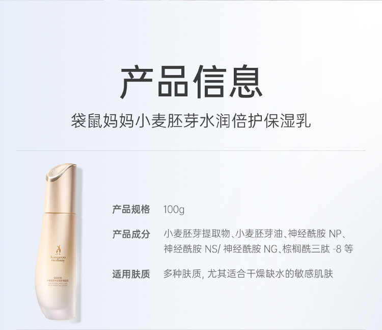 【小麦保湿乳】准孕期 专利补水锁水 干皮/油皮按肤质选购 小麦胚芽水润倍护保湿乳100g(清爽型/滋润型)
