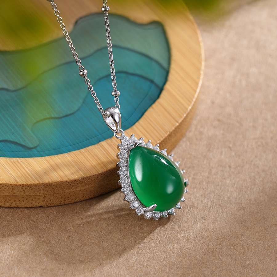子佩集S925银【春华晴雪】套链【DZ016139】纯银绿玉髓项链2408
