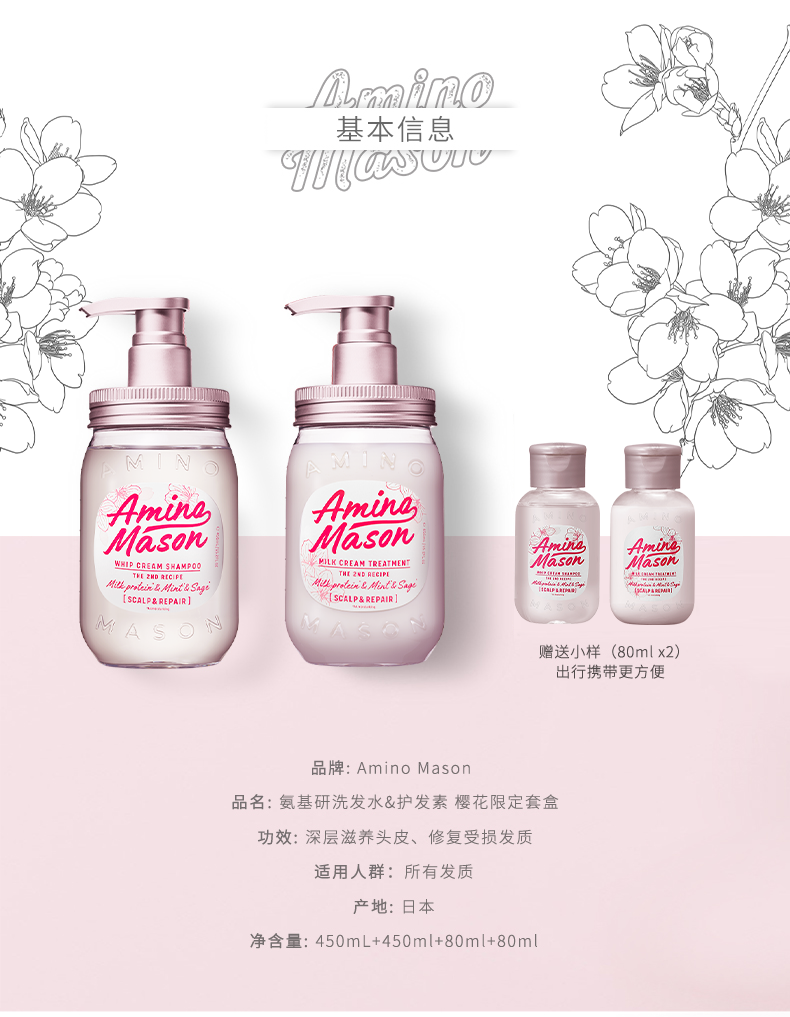 阿蜜浓梅森 清爽控油洗发&护发 樱花特惠套装(4件套)